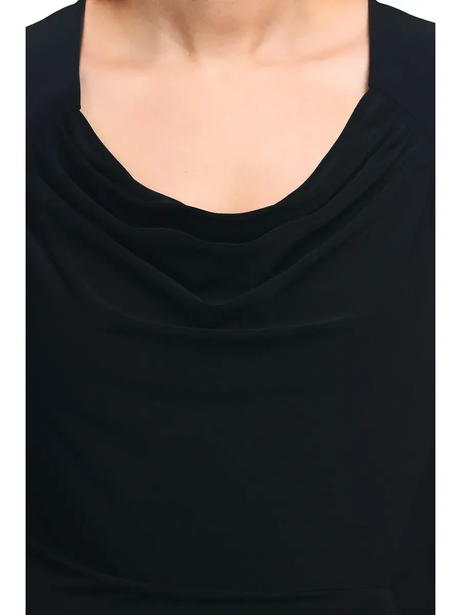 Элегантное праздничное платье больших размеров длиной до середины голени, из струящегося трикотажа масло. Модель сверху полуприлегающая, отрезная по талии с широким завязывающимся поясом; с юбкой - полуклёш; узкими цельнокроеными рукавами 3/4; вырезом горловины каре с воротником качели красиво обрамляет шею и декольте. Идеальный вариант платья-тайны для загадочной женщины.