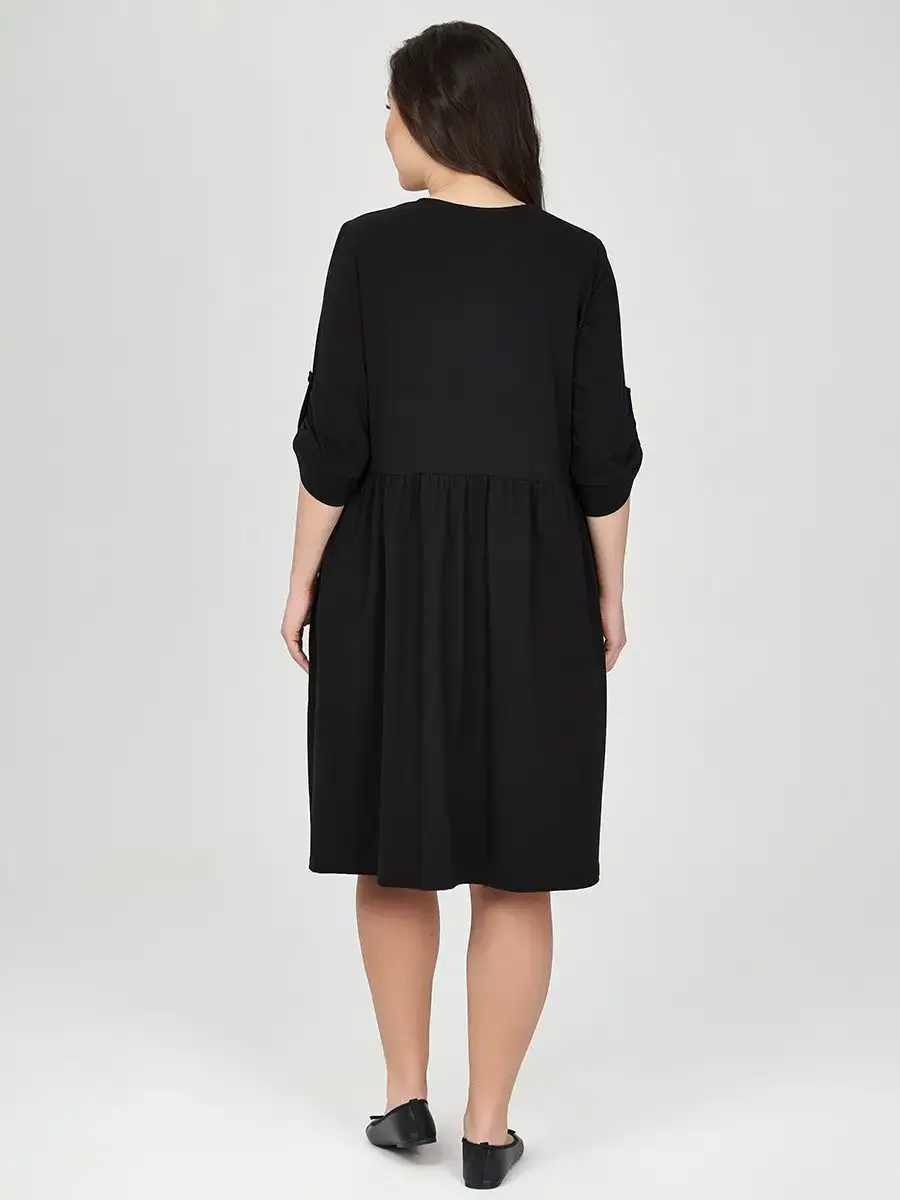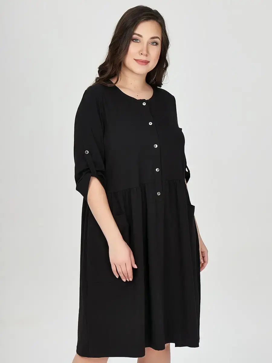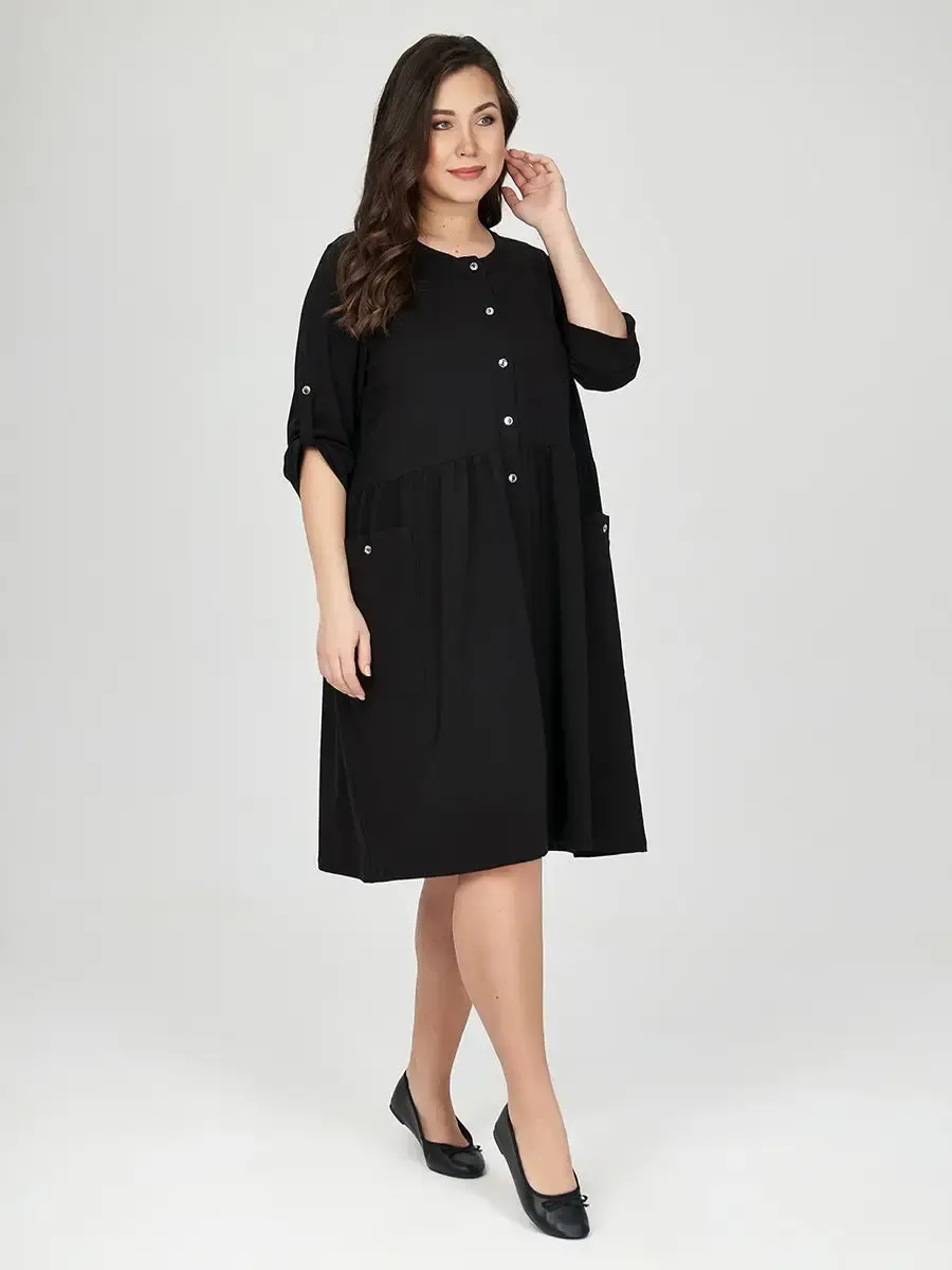 Комфортное трикотажное платье прямого свободного силуэта, с отрезной линией талии и круглым вырезом. Подходит как молодым девушкам, так и женщинам элегантного возраста. Крой придает уравновешенность и легкость фигуре. Изюминка модели это ее детали. Планка на пуговицах, врезные накладные карманы, рукава с возможностью регулировки по длине при помощи паты.