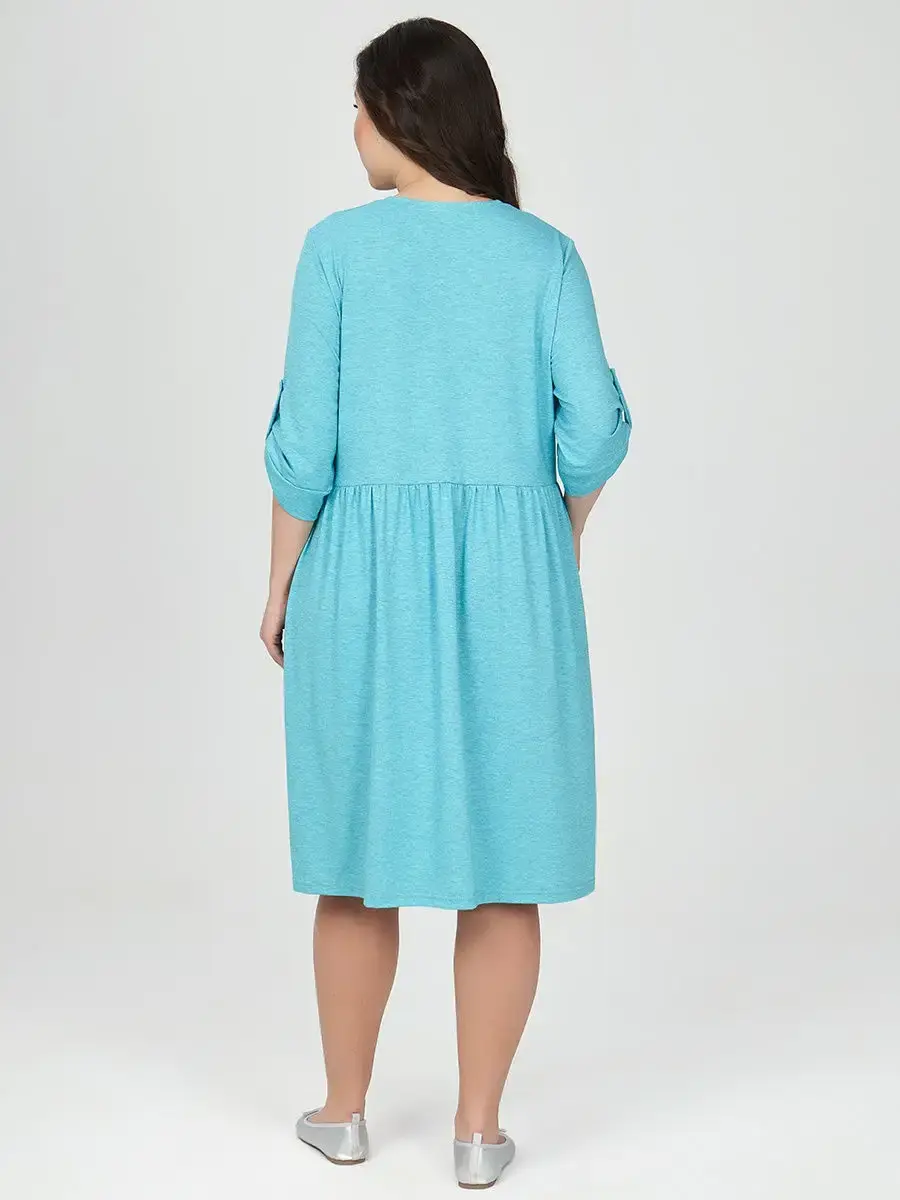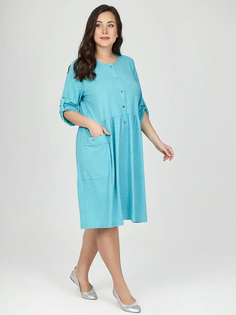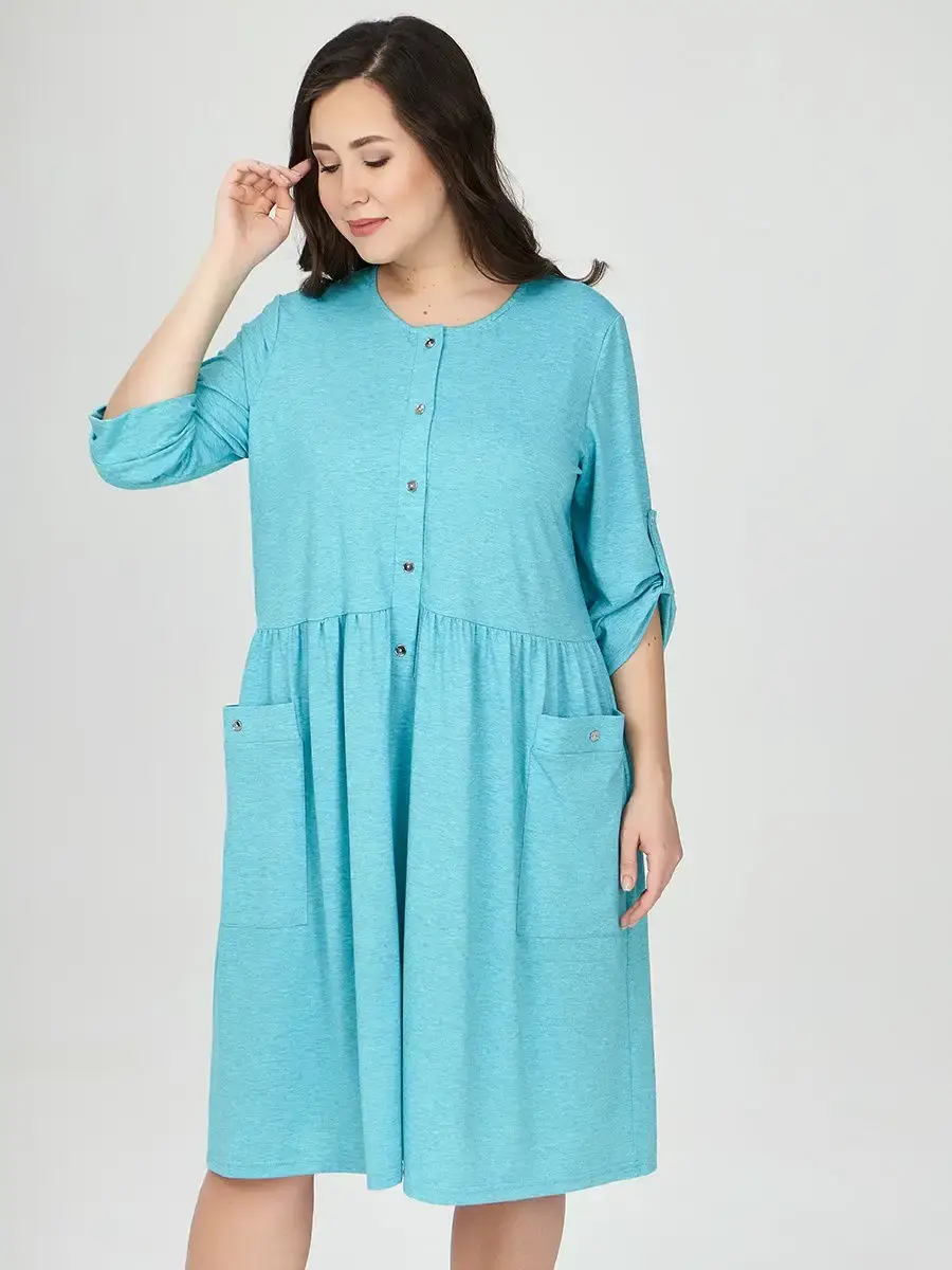 Комфортное трикотажное платье прямого свободного силуэта, с отрезной линией талии и круглым вырезом. Подходит как молодым девушкам, так и женщинам элегантного возраста. Крой придает уравновешенность и легкость фигуре. Изюминка модели это ее детали. Планка на пуговицах, врезные накладные карманы, рукава с возможностью регулировки по длине при помощи паты.