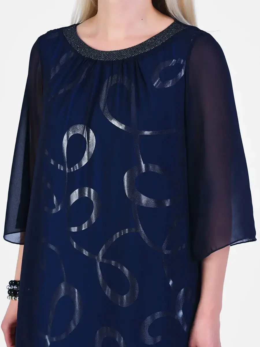 Стильное двухслойное платье, длиной чуть ниже колена, выполненное в комбинации полупрозрачного шифона, нежного трикотажа "масло" с матово-мерцающим фойлом, и трикотажа с люрексовой нитью в качестве отделки горловины с круглым вырезом. Идеально подойдет для торжественных мероприятий и праздников. Вечерние платья больших размеров, Платье женское праздничное, Платье прямое вечернее, Платье с люрексом, Платье женское вечернее больших размеров. Платье вечернее женское. Платье женское большие размеры. Новогоднее платье женское блестящее. Платье нарядное. Платье на Новый Год, платье на свадьбу, юбилей, Вечерние платье на день рождение. Платье с глиттером женское. Платье женское вечернее больших размеров.