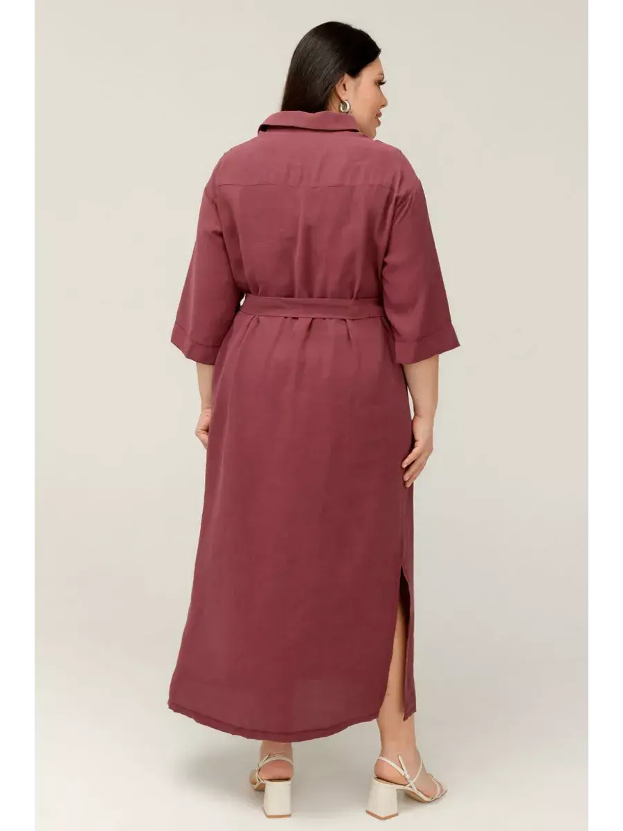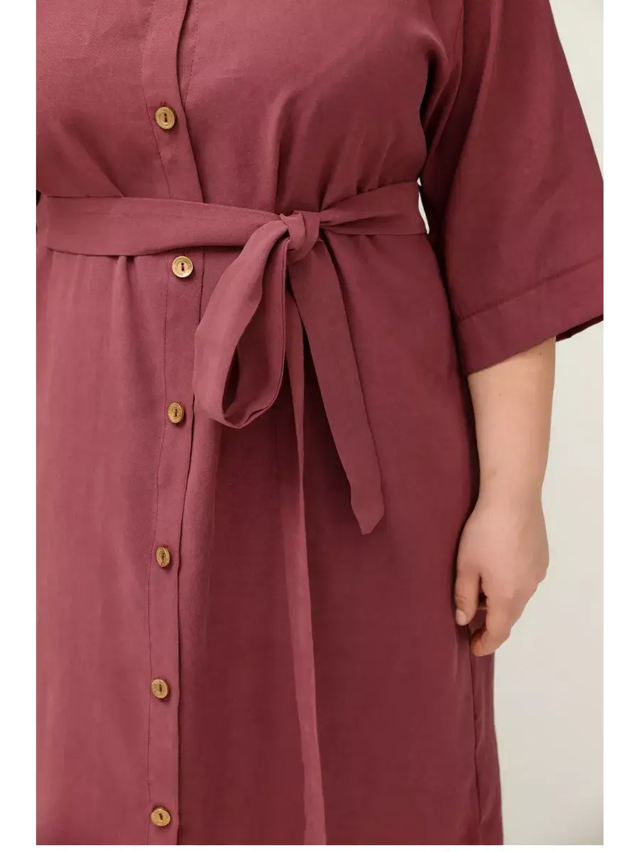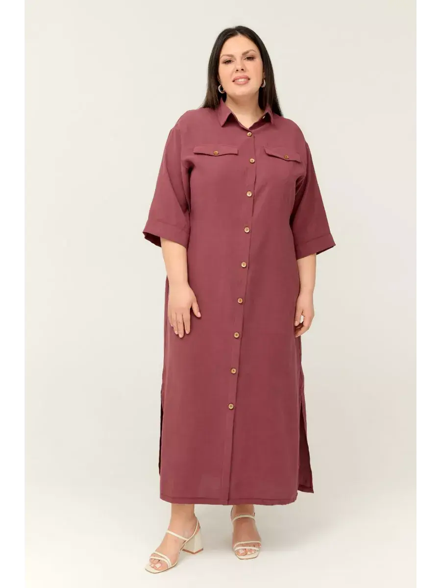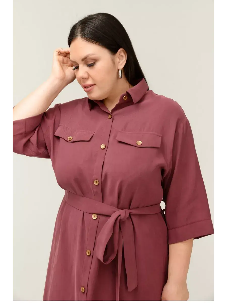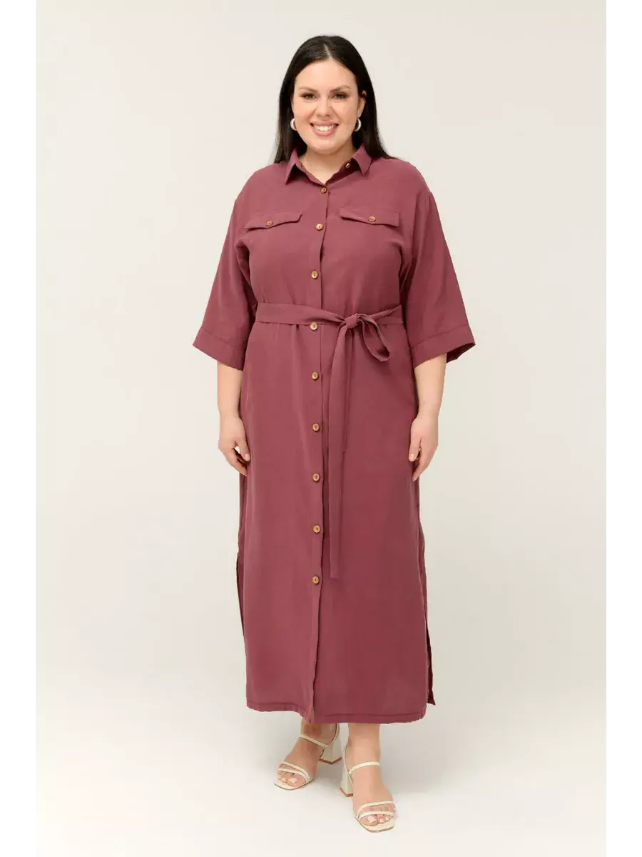 Повседневное женское платье больших размеров от бренда OLSI. Платье женское рубашечного фасона выполнено из мягкого приятного на ощупь текстильного полотна. Отложной воротник, рукав 3/4, по низу боковые разрезы для удобства. Пояс в комплекте с платьем. Длина рукава 45см.