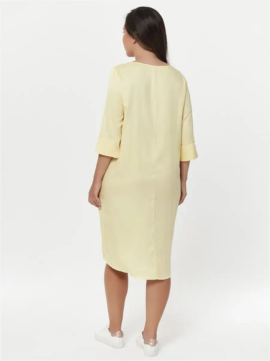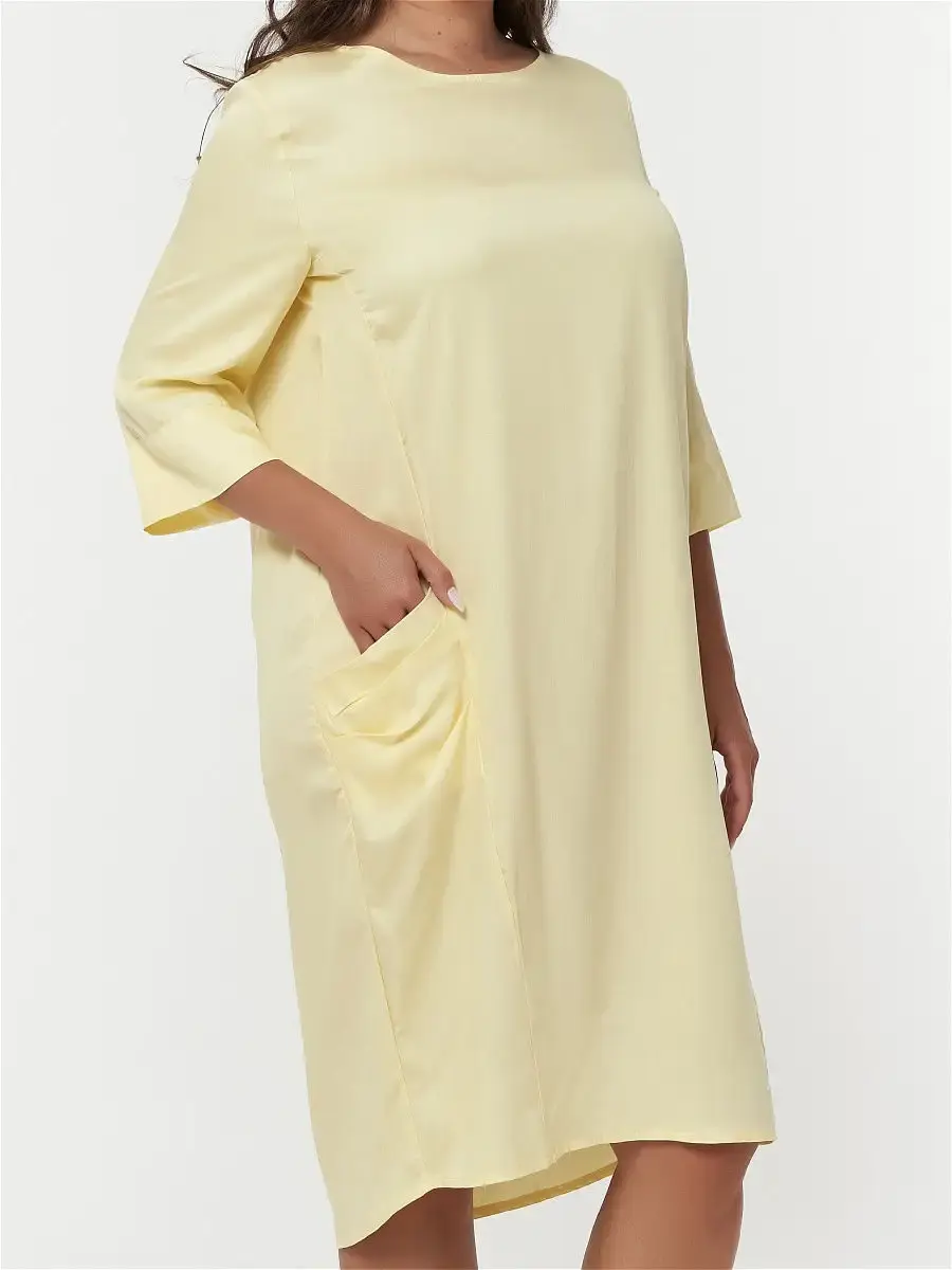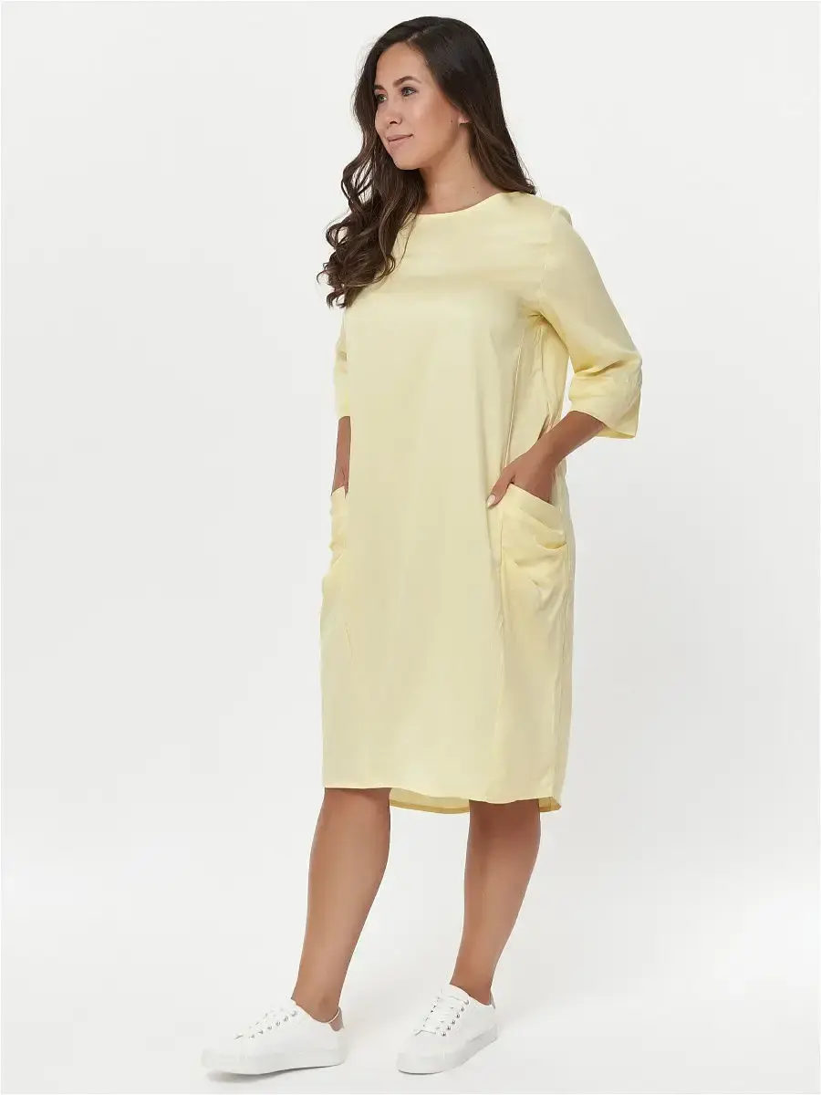 Платье прямого силуэта, объёмной формы из тонкого хлопчатобумажного текстильного полотна, с карманами, рукав 3/4.