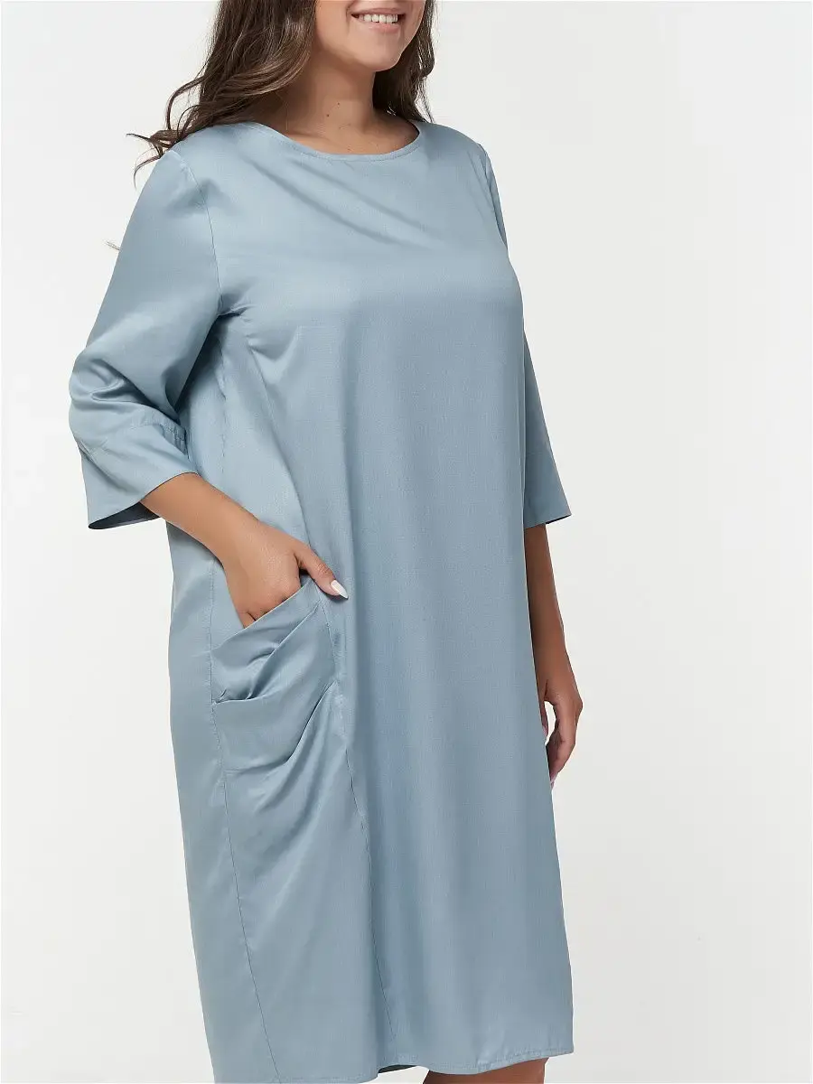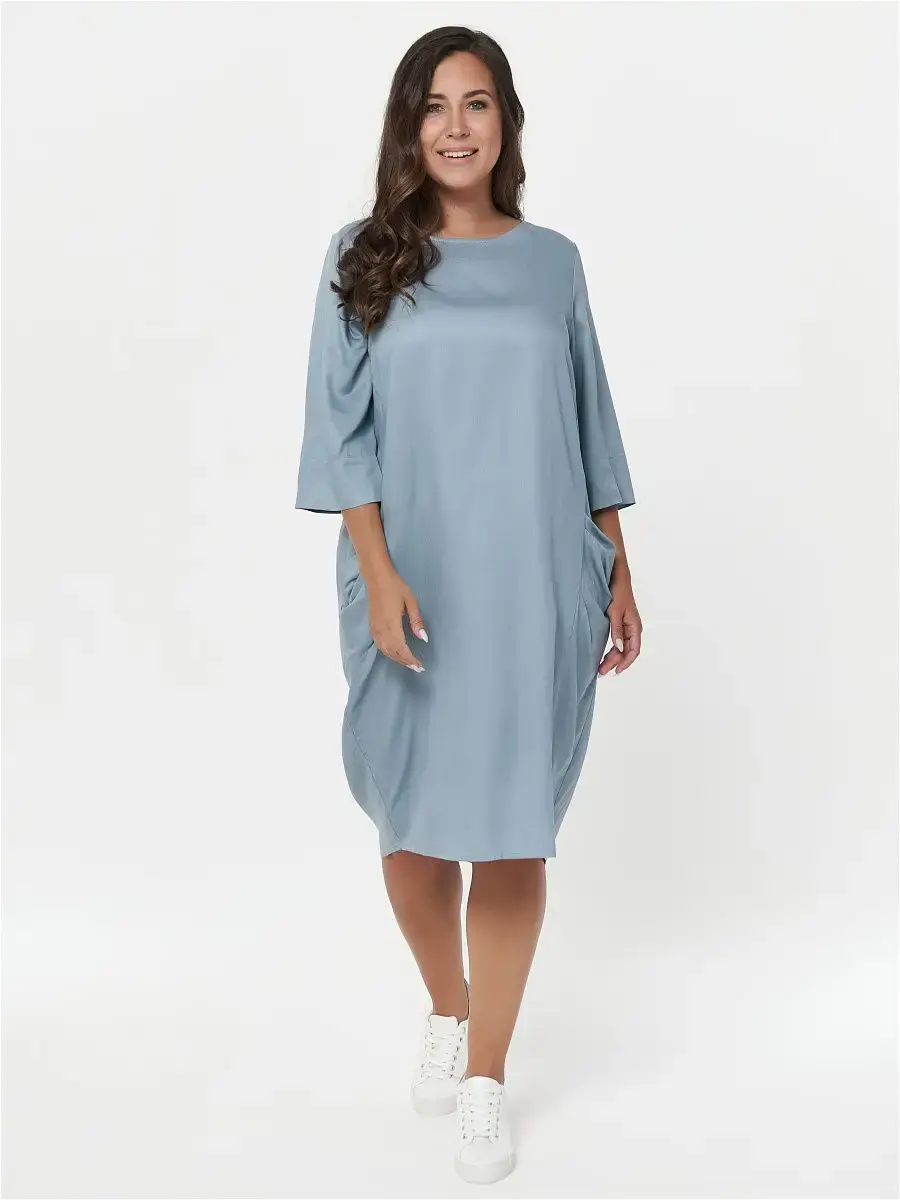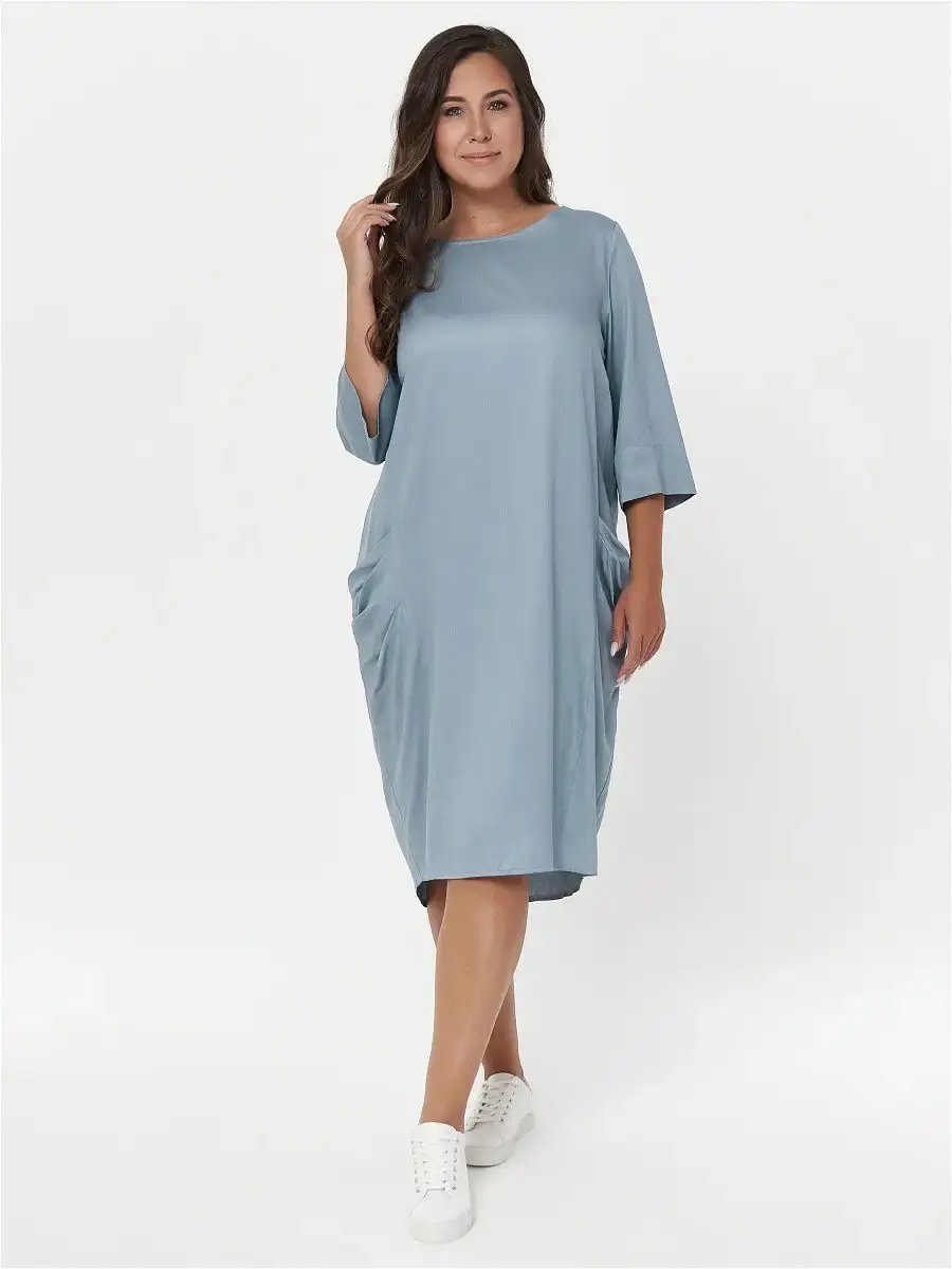 Платье прямого силуэта, объёмной формы из тонкого хлопчатобумажного текстильного полотна, с карманами, рукав 3/4.