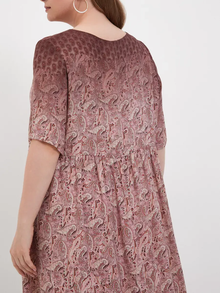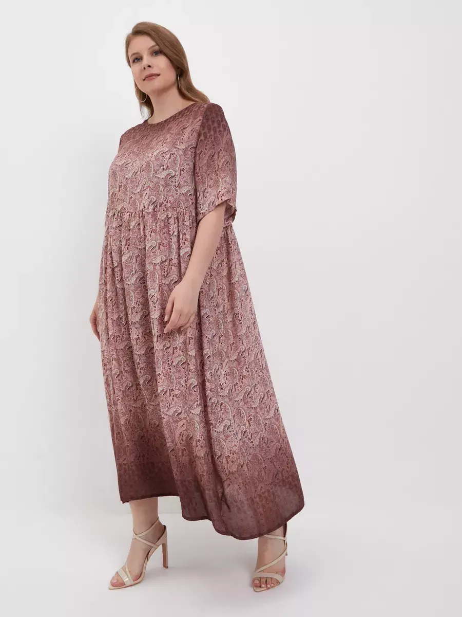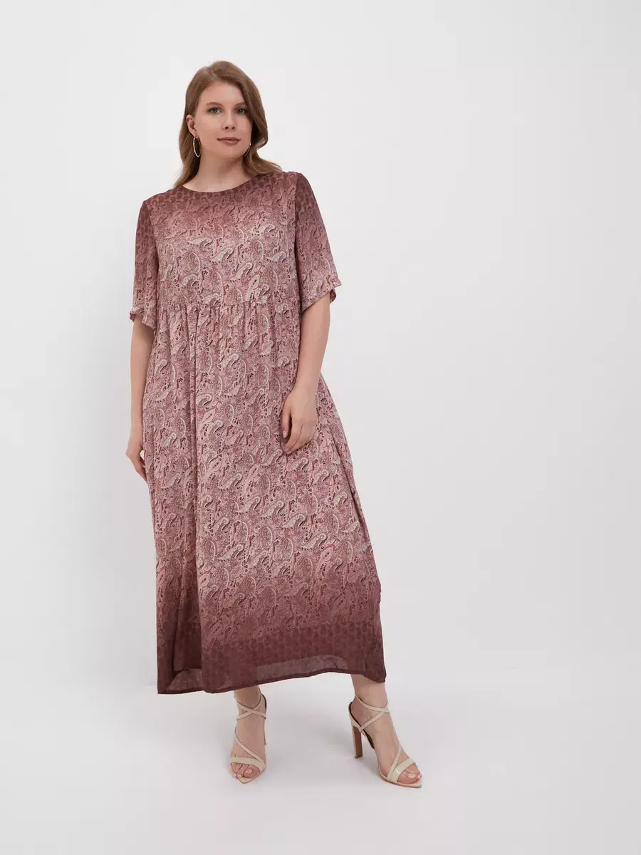Женское нарядное платье больших размеров, выполнено из струящегося искусственного шифона свободного кроя, с подкладом. Рукав короткий, длиной до локтя. Особенностью модели платья является его комбинированный рисунок - пейсли (турецкий огурец) в сочетании с деграде. Платья имеет свободный силуэт, с завышенной линией талии, что отлично нивелирует недостатки фигуры, придавая женственности. Хорошо сидит на любой фигуре. Прекрасное воздушное платье идеальный вариант для свидания, дня рождения, праздника, а также в повседневной носке сделает Вас неотразимой.