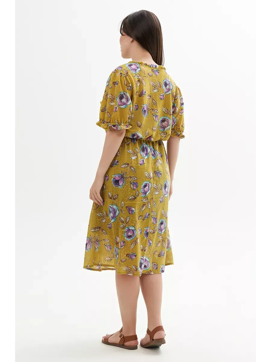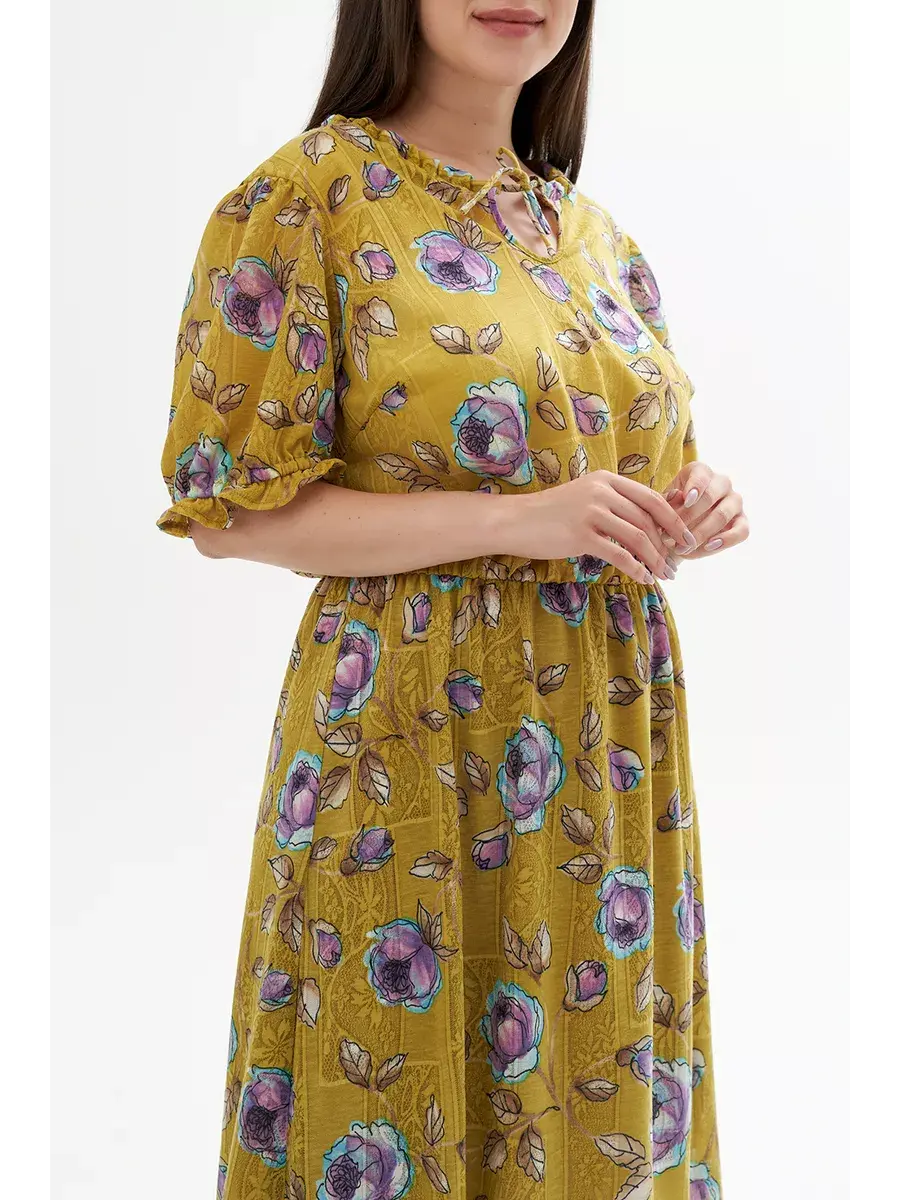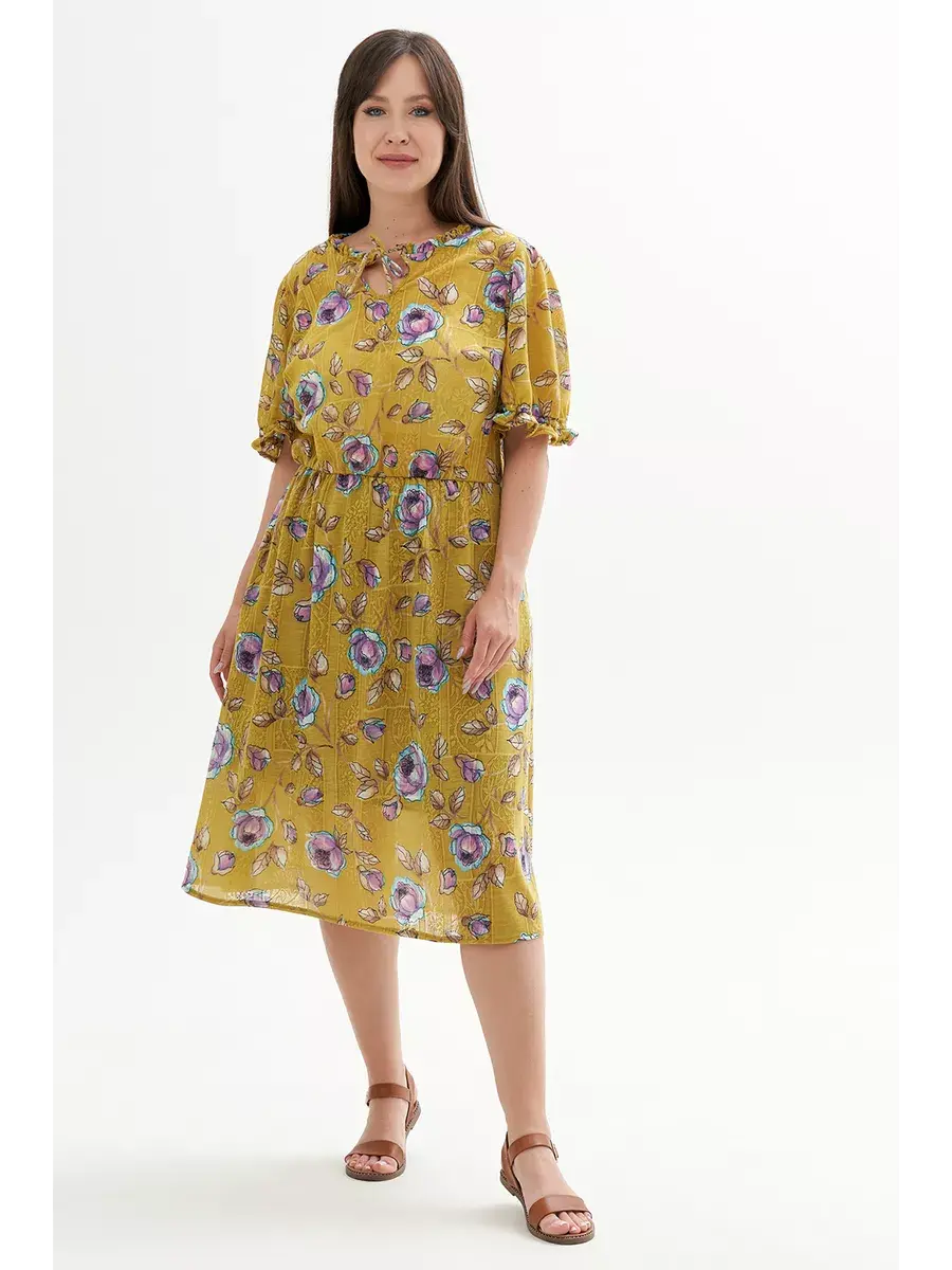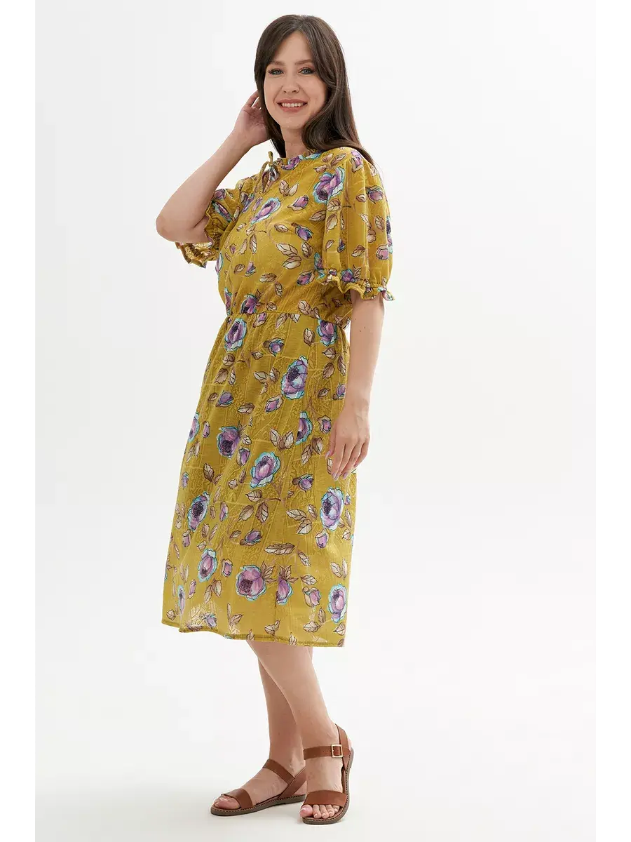 Цвет горчичный с желтым оттенком придает платью особую изысканность и позволяет легко сочетать его с различными аксессуарами и обувью. Отсутствие карманов делает платье более стройным и элегантным, а также упрощает уход за ним.