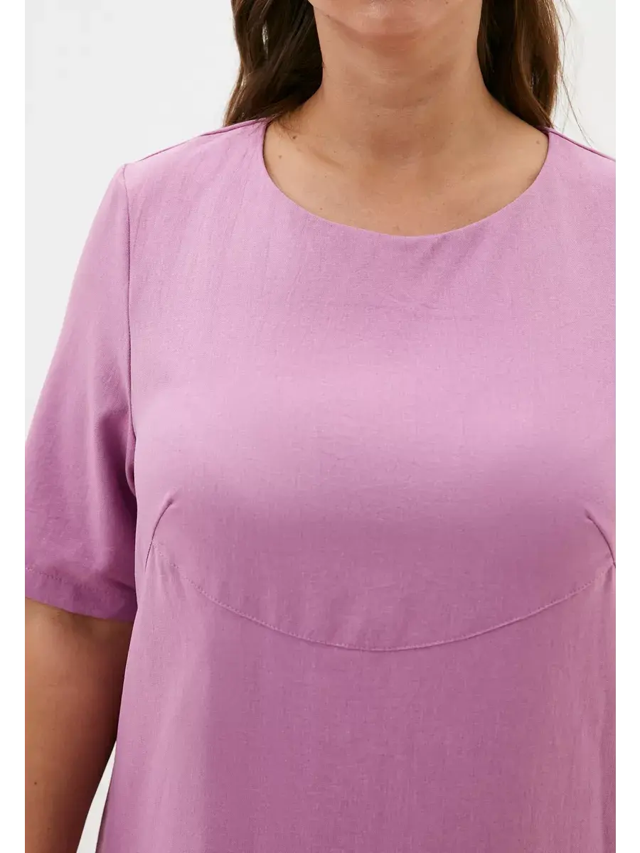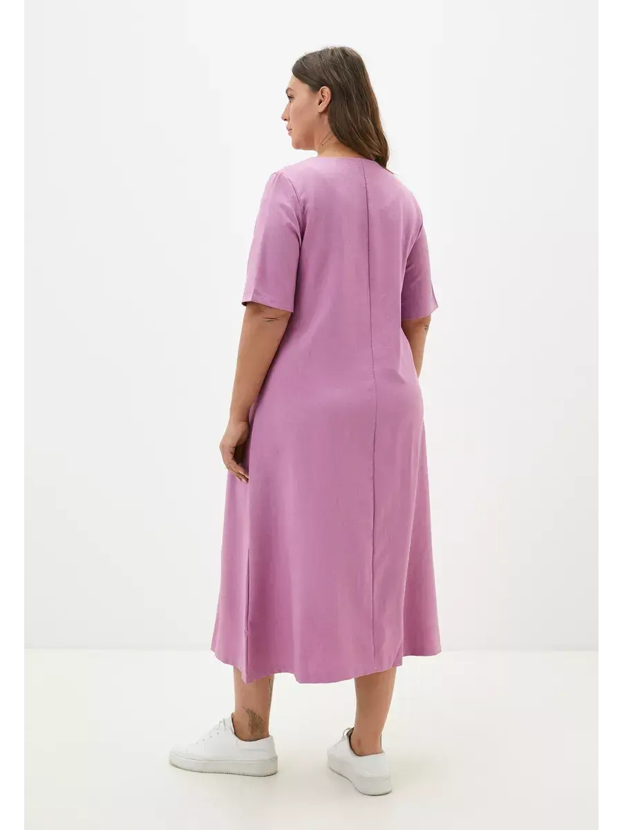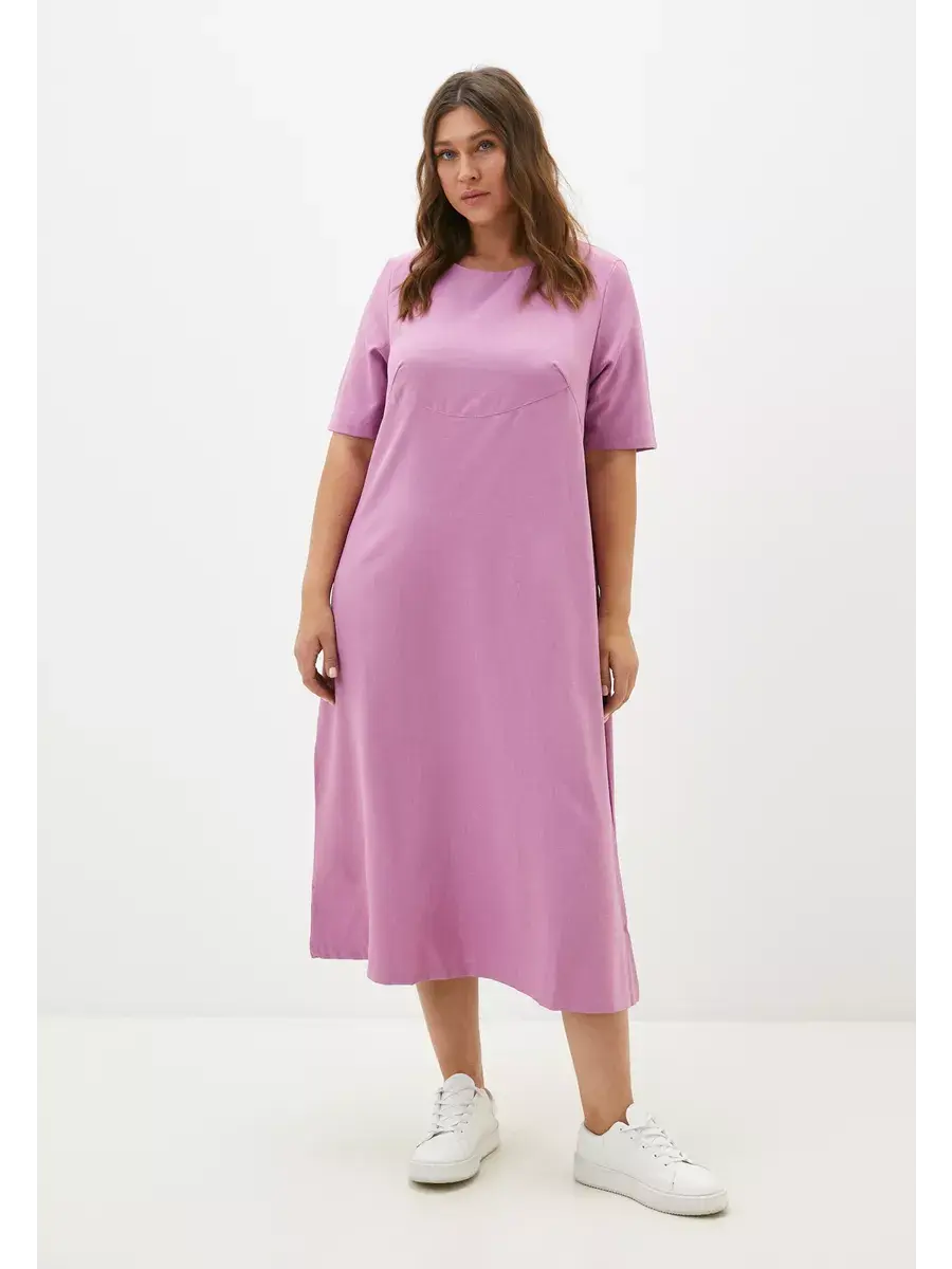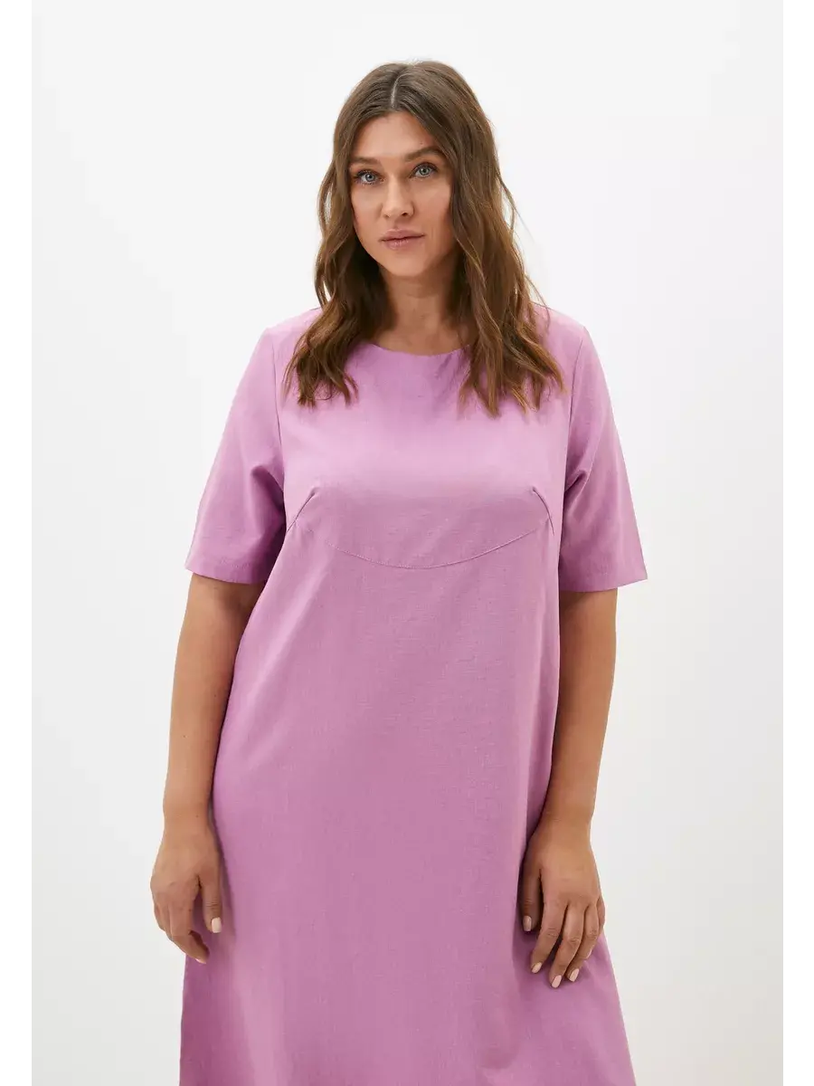 Женское платье больших размеров от бренда OLSI выполнено из плотного текстильного полотна по типу искусственный лён. Летнее платье прямого, слегка расклешенного книзу кроя, имеет фигурную кокетку середи. Рукав платья широкий длиной до локтя. Платье женское длинное, без застежки.