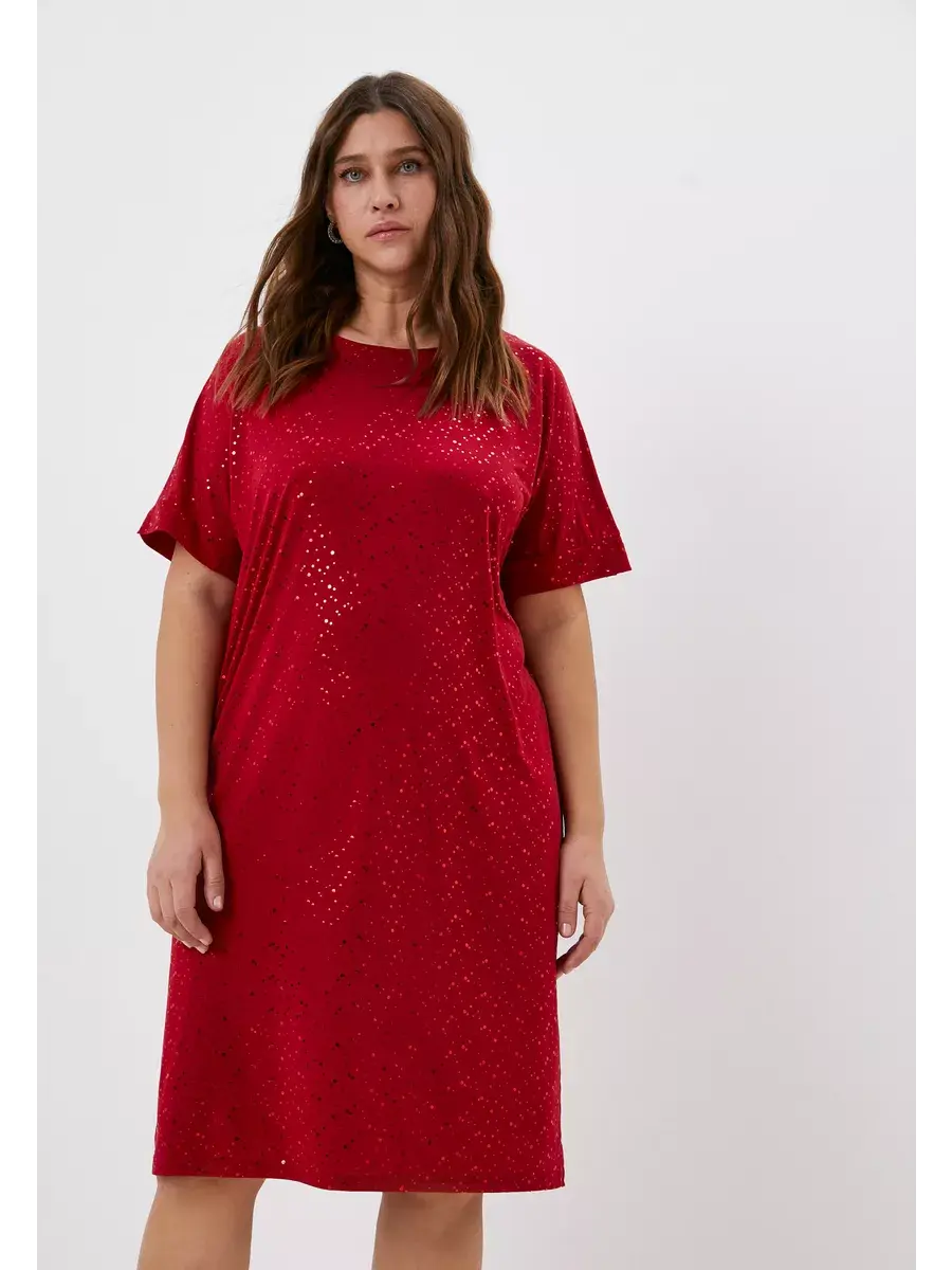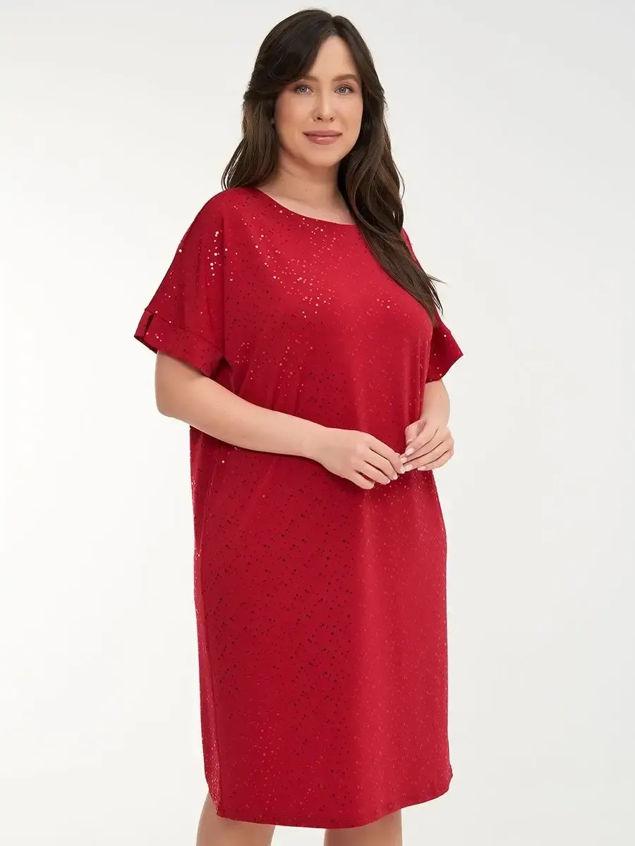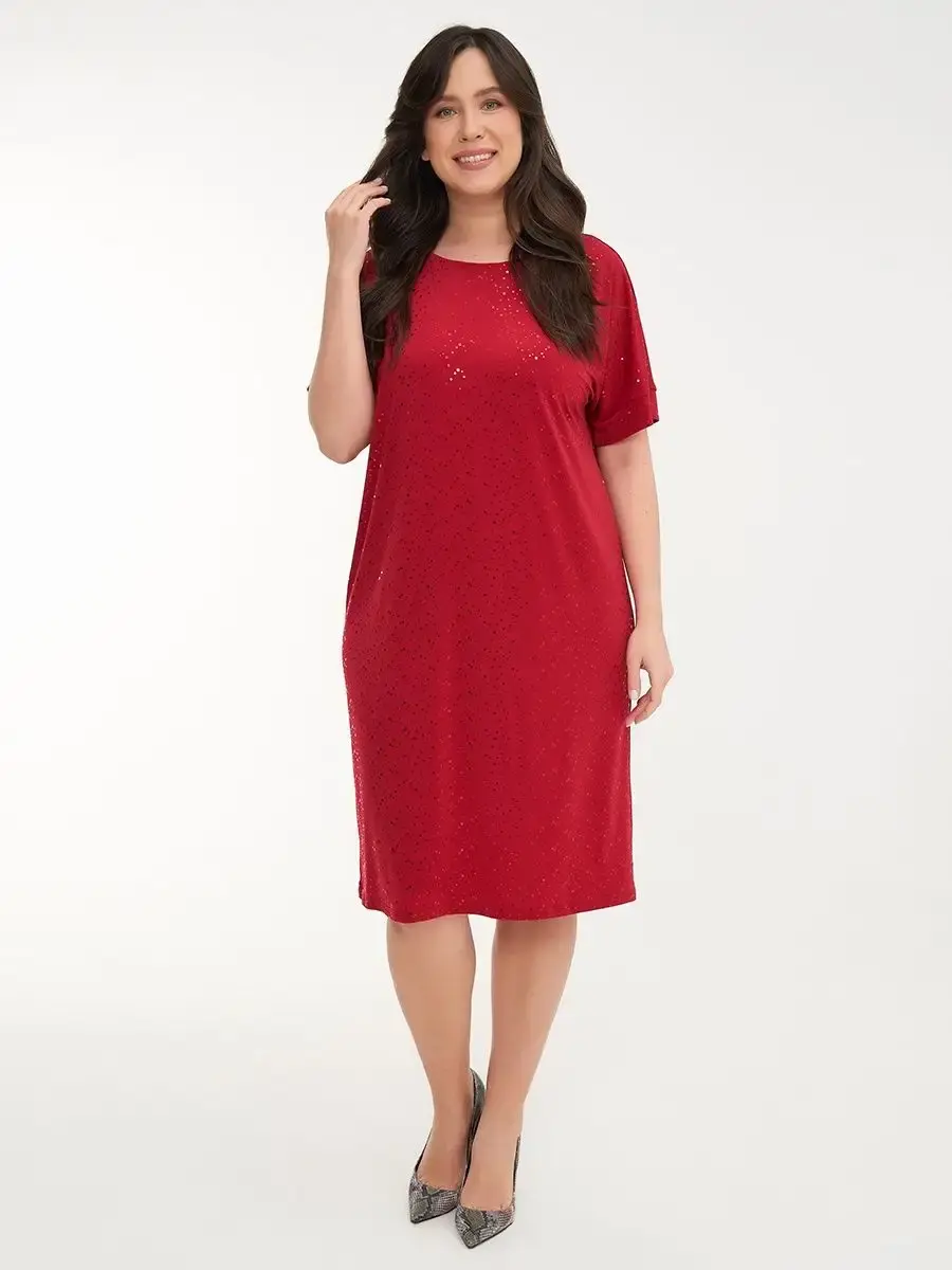 Платье прямого кроя выполнено из ткани масло с пайетками, что обеспечивает приятное прикосновение и эластичность материала. Качественная ткань не мнётся и не растягивается, сохраняя форму и цвет.