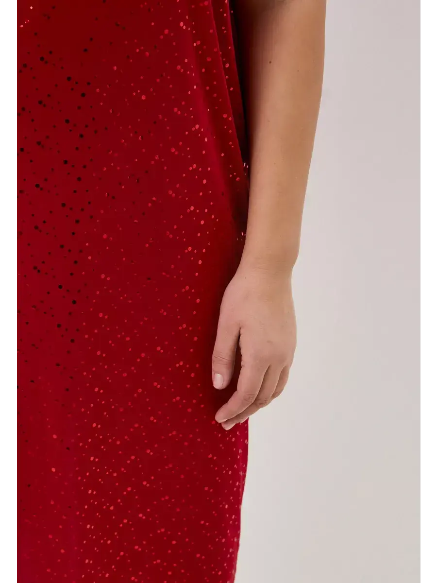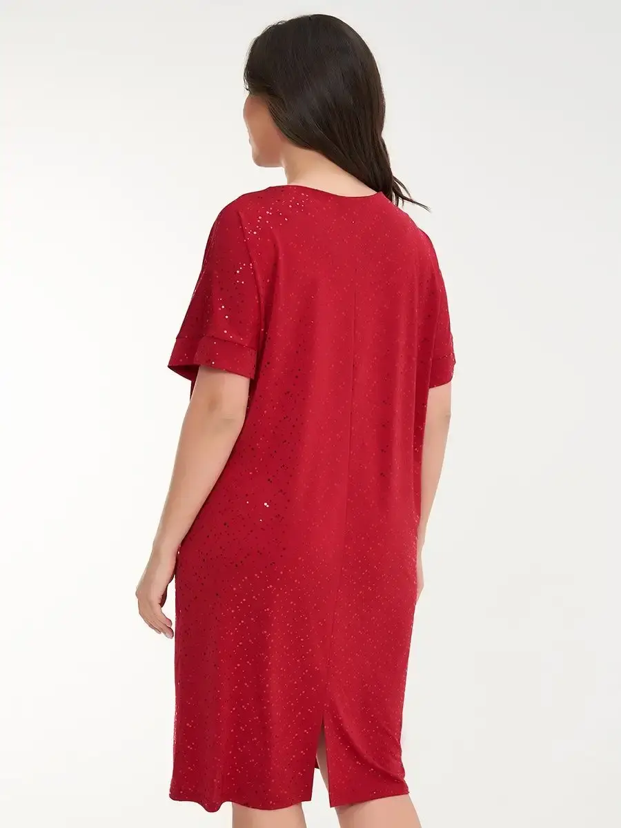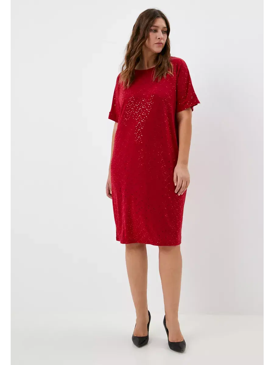 Платье прямого кроя выполнено из ткани масло с пайетками, что обеспечивает приятное прикосновение и эластичность материала. Качественная ткань не мнётся и не растягивается, сохраняя форму и цвет.