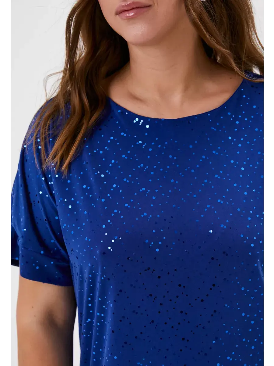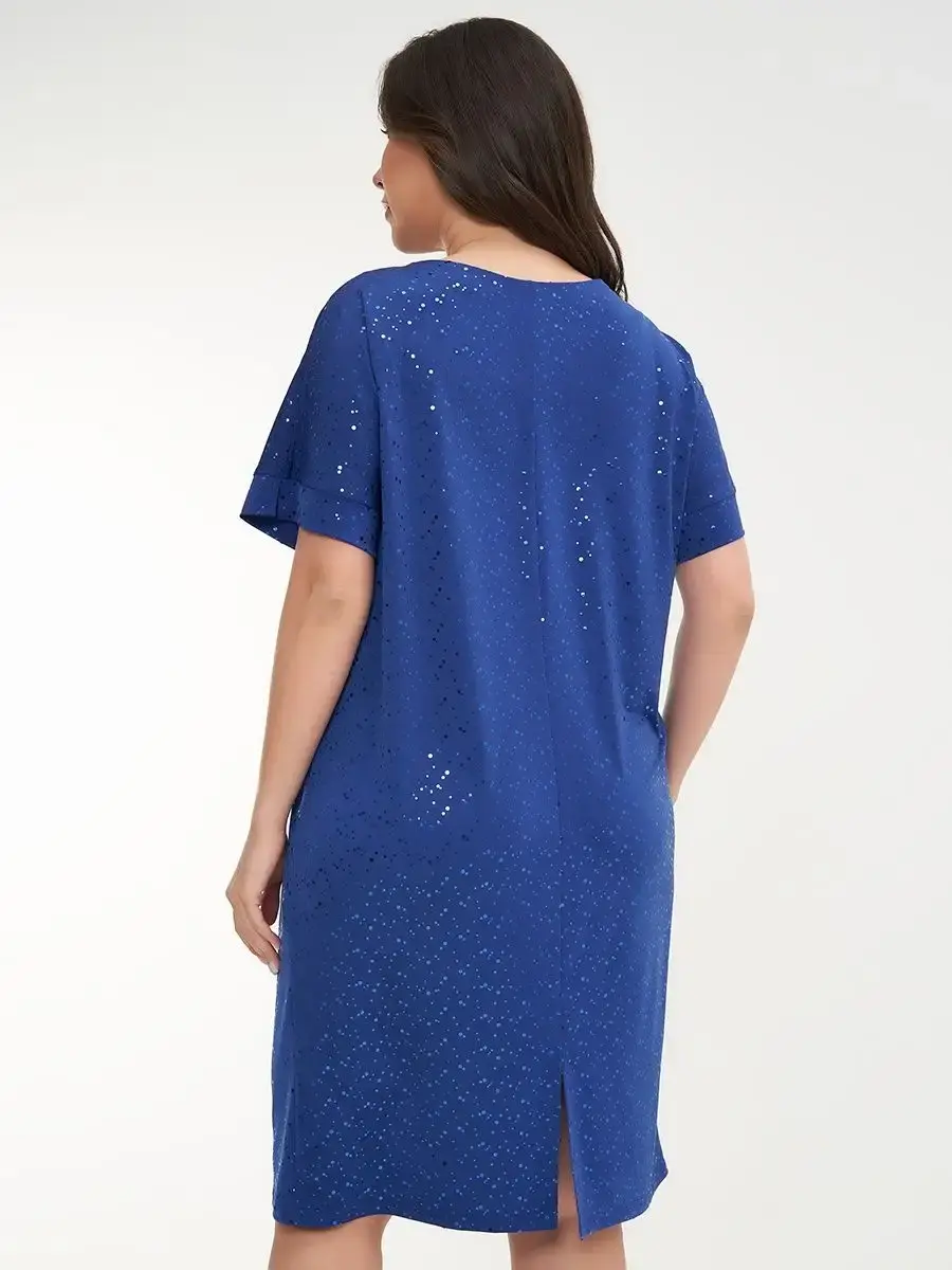 Платье прямого кроя выполнено из ткани масло с пайетками, что обеспечивает приятное прикосновение и эластичность материала. Качественная ткань не мнётся и не растягивается, сохраняя форму и цвет.