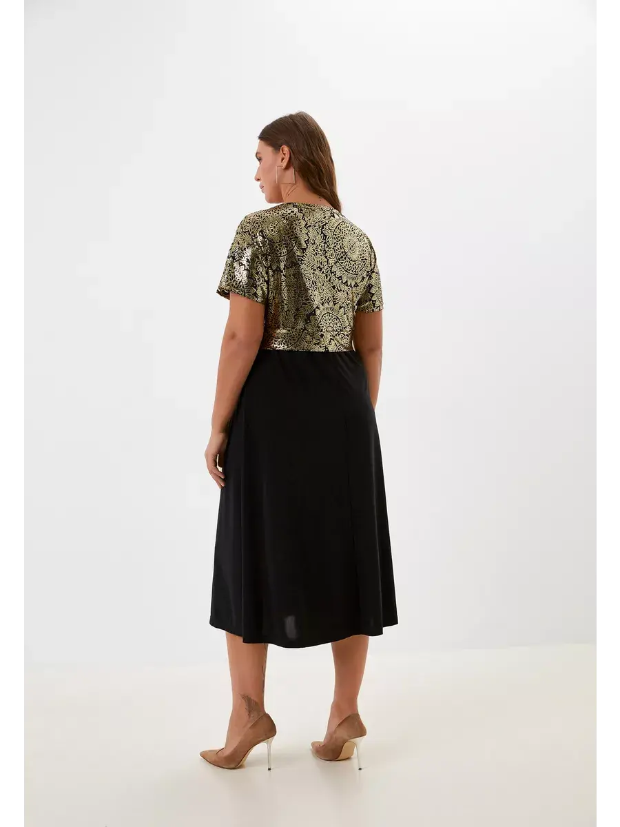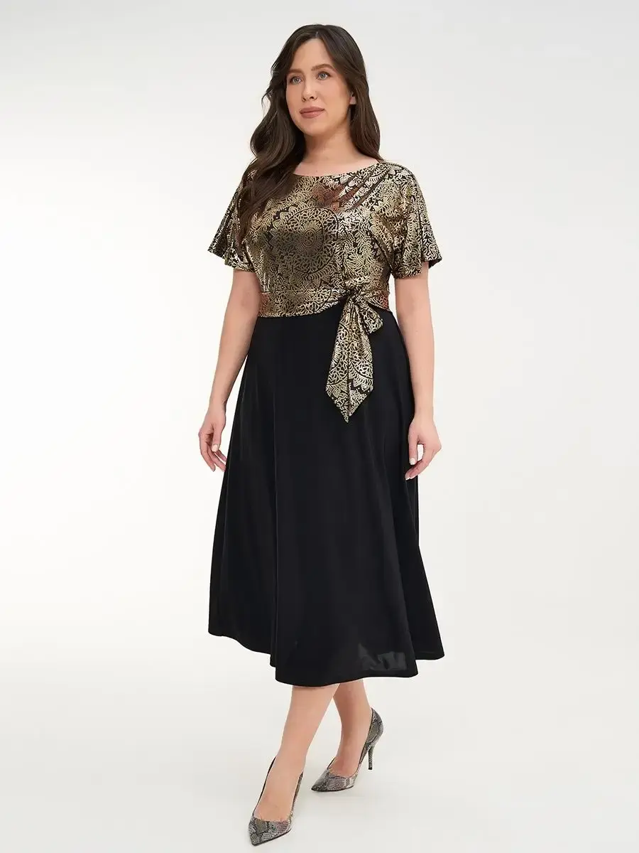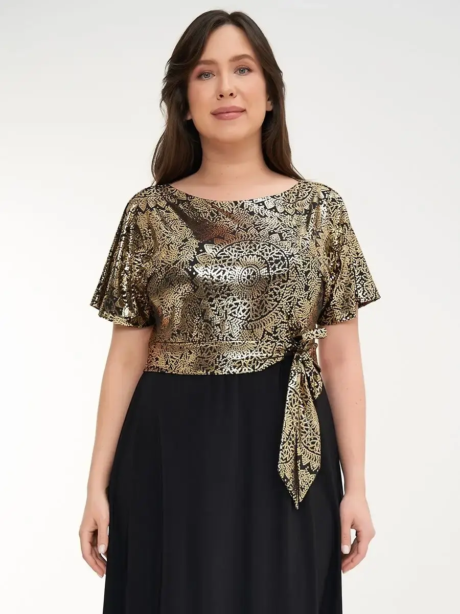 Нарядное платье больших размеров выполнено из трикотажного полотна по типу масло. Модель придает образу чувственность и элегантность. Идеально подойдет для торжественных мероприятий и праздников. Платье на Новый Год, платье на свадьбу, юбилей, Вечерние платье на день рождение. Платье с глиттером женское. Платье женское вечернее больших размеров. Платье женское вечернее Платье вечернее праздничное, Платье с блестками женское, Платье с пайетками женское, Новогоднее платье женское блестящее, Платье с блестками. Платье золотое вечернее