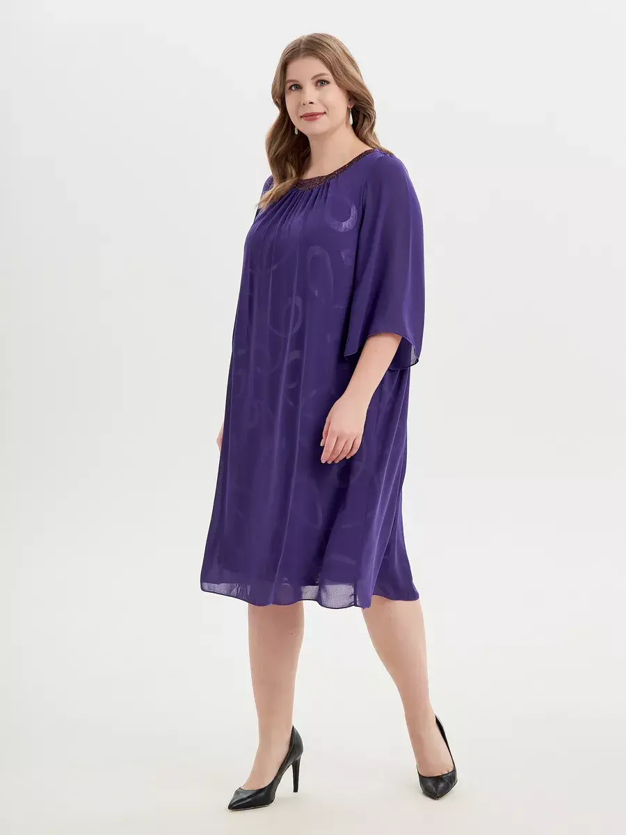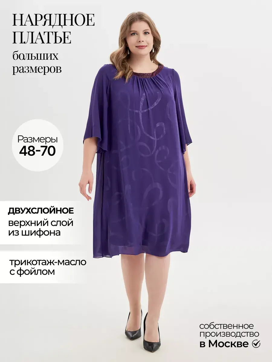 Стильное вечернее двухслойное платье больших размеров, длиной чуть ниже колена, выполненное в комбинации полупрозрачного шифона, нежного трикотажа "масло" с матово-мерцающим фойлом, и трикотажа с люрексовой нитью в качестве отделки горловины с круглым вырезом. Платье больших размеров идеально подходит для разных случаев, будь то офисное мероприятие, корпоратив, свадьба, новогодняя вечеринка или даже клубная тусовка. Ведь вам не нужно беспокоиться о размерах, так как платье оверсайз доступно и для полных дам, потому что платье свободное. Это нарядное платье до колен придется по вкусу как молодым девушкам, так и зрелым женщинам, так как женская одежда необычная и со своей изюминкой. Платье вечернее больших размеров. А-силуэт платья в офис нашей модели делает его особенно удобным. Оно позволяет чувствовать себя уверенно и привлекательно, подчеркивая красоту и женственность. Благодаря продуманному крою и качественным материалам, такие платья обеспечивают комфорт в течение всего дня, позволяя наслаждаться каждым моментом. Платье вечернее больших размеров подчеркивает красоту и женственность. В Платье на новый год 2025 вы будете шикарны. Это именно та одежда для женщин, которая подчеркнет вашу женственность и придаст вашему образу утонченности.