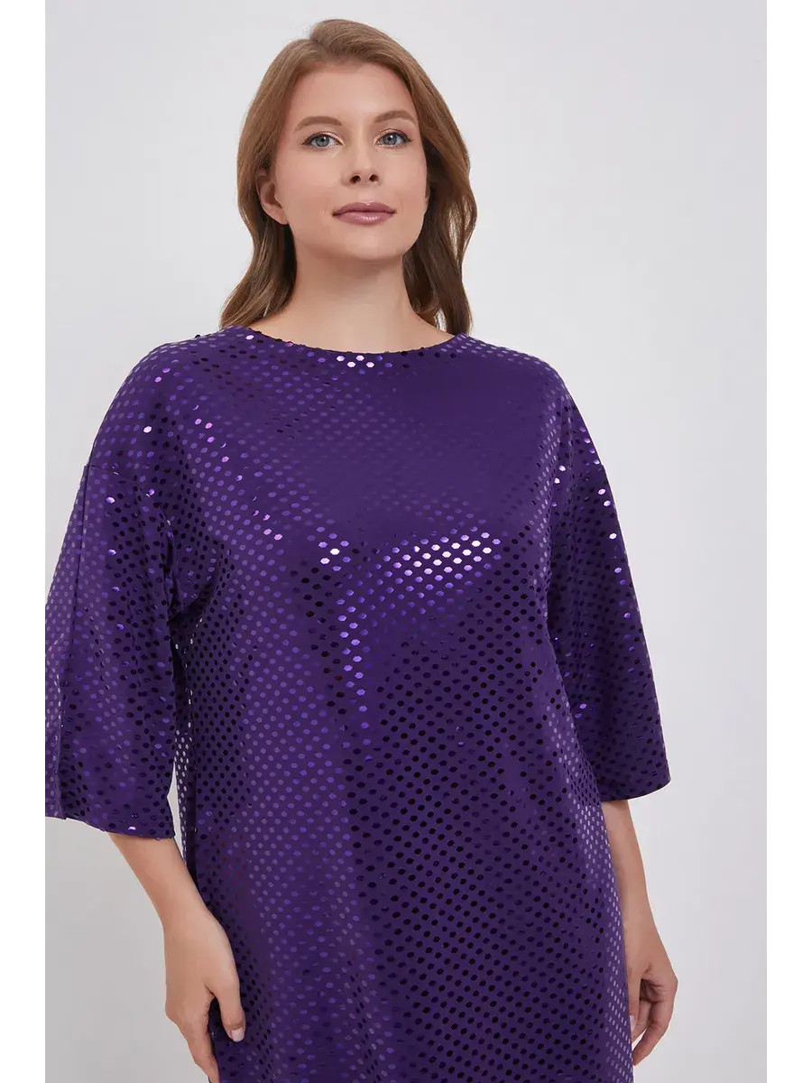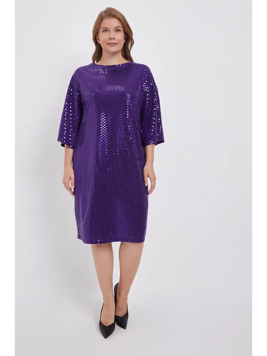 Изысканное нарядное платье больших размеров от бренда OLSI из ткани с эффектным принтом-глиттером, создающим эффект пайеток. Модель лаконичного кроя футляр, плавно обрисовывающее фигуру; длиной чуть ниже колен; зауженное книзу; с отрезными рукавами колокол 3/4, с разрезом по низу рукава, со спущенной линией плеча; вырезом горловины лодочка. Праздничное платье больших размеров будет хорошо сидеть на фигуре яблоко, перевернутый треугольник, прямойгольник. Платье с блеском, платье с пайетками прекрасный вариант для праздничного мероприятия, выступлений, коктейльных вечеринок, день рождения, на свадьбах, эффектно смотрится под блеском сафитов.
