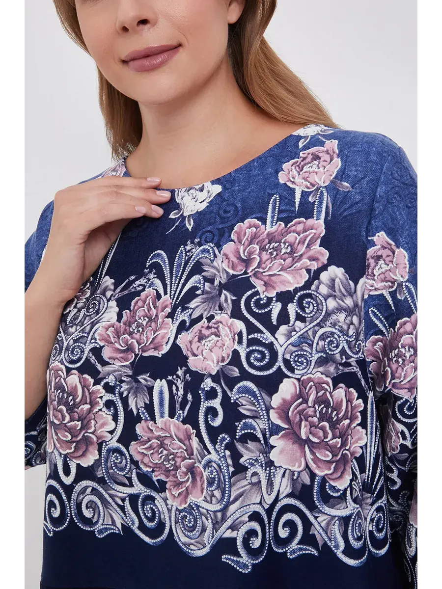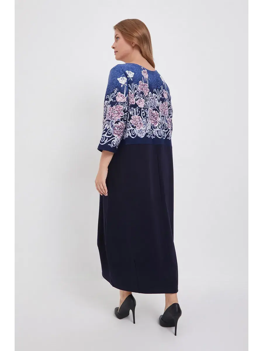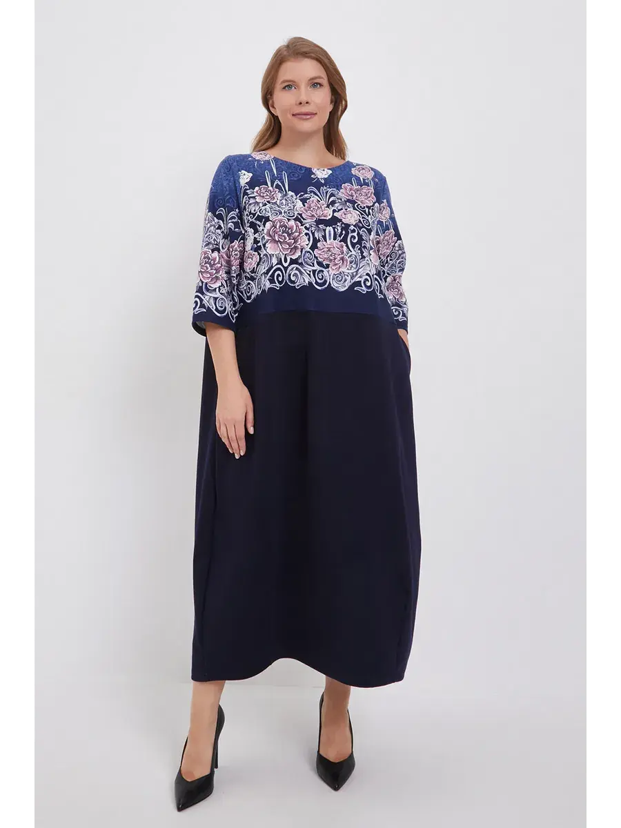 Элегантное трикотажное платье больших размеров с цветочным принтом и однотонным низом — это одежда, которая подойдёт каждой женщине и подчеркнёт её женственность и утончённый вкус.
