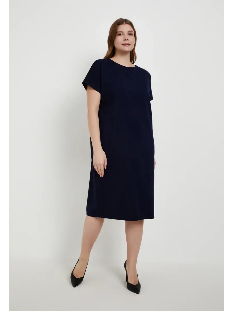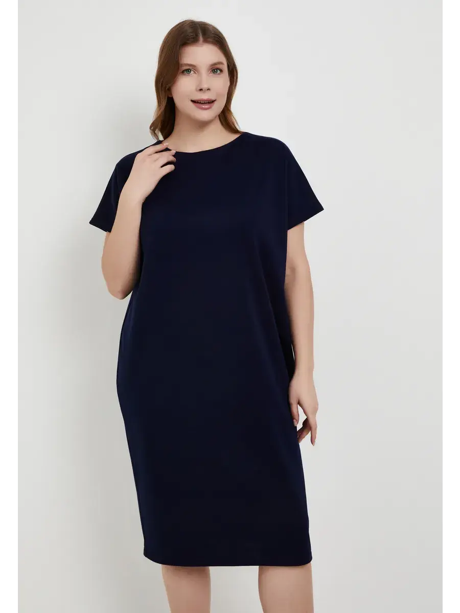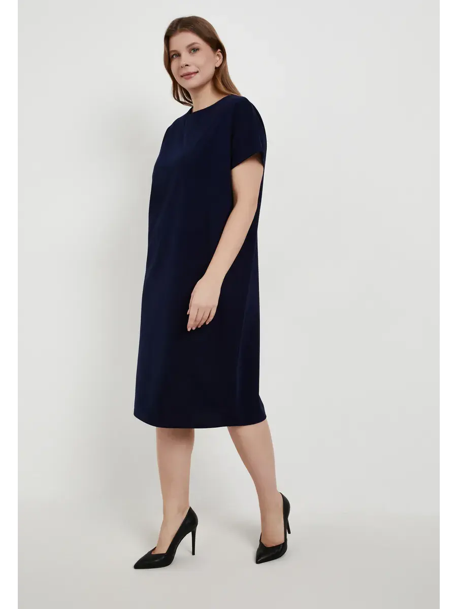 Элегантное платье-футляр из однотонной ткани, обещающее стать жемчужиной базового гардероба. Модель с цельнокроеными короткими рукавами, округлым вырезом горловины, длиной чуть ниже колен, зауженное книзу, с разрезом-шлицей сзади.