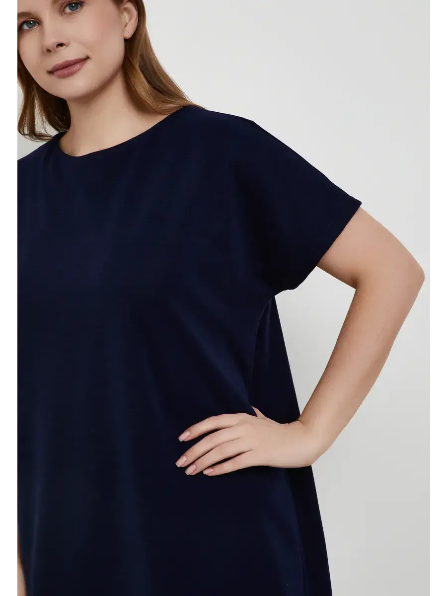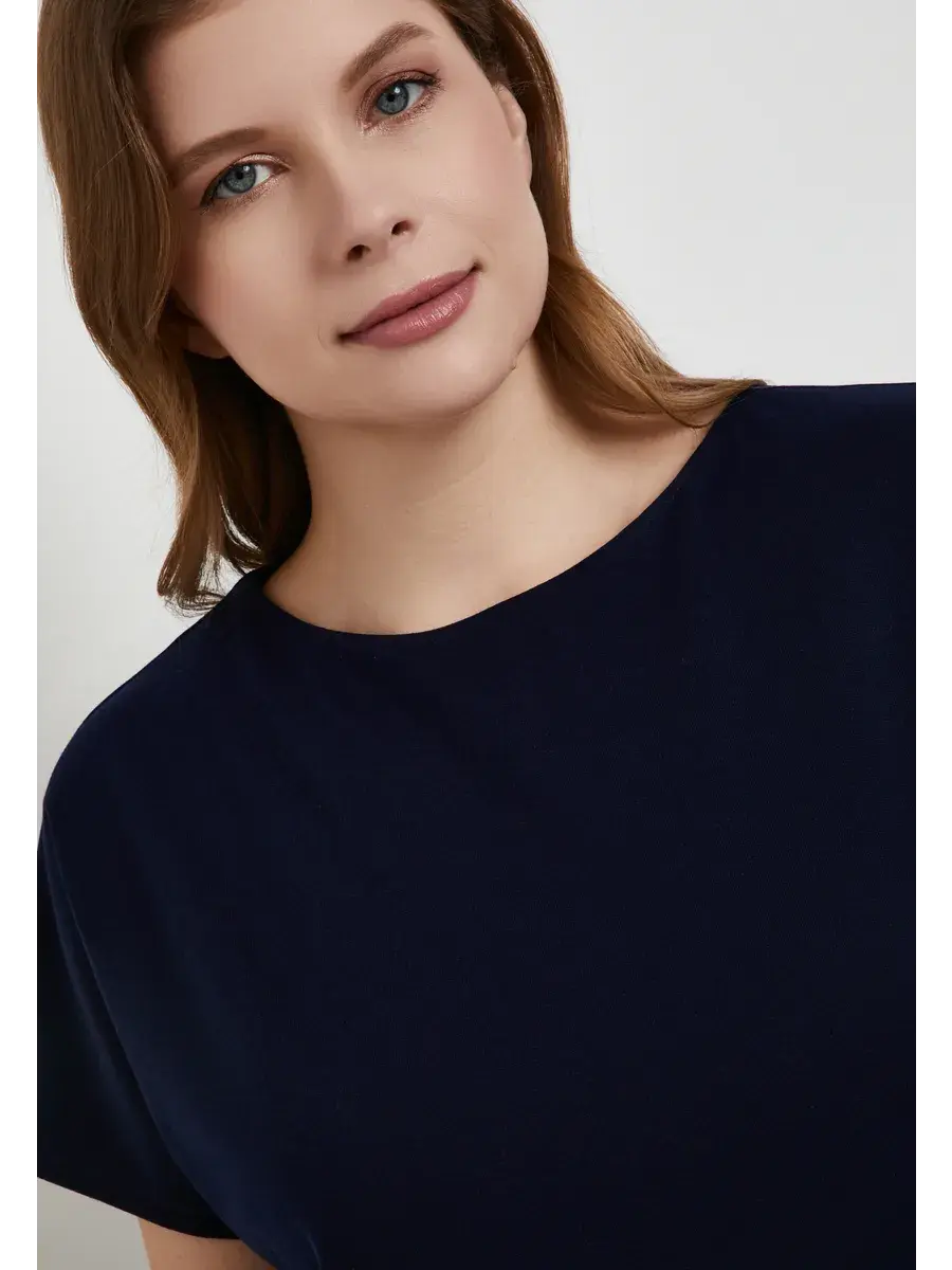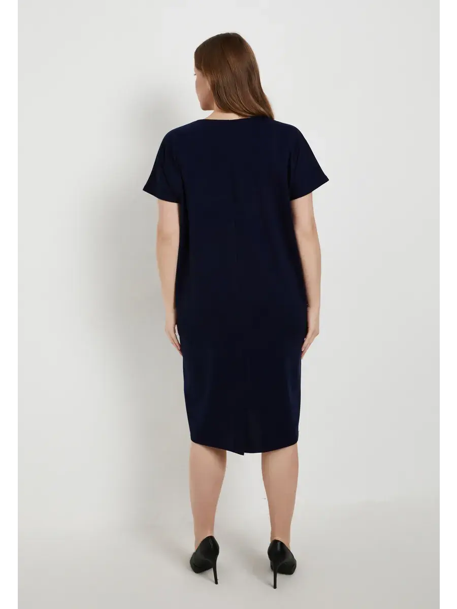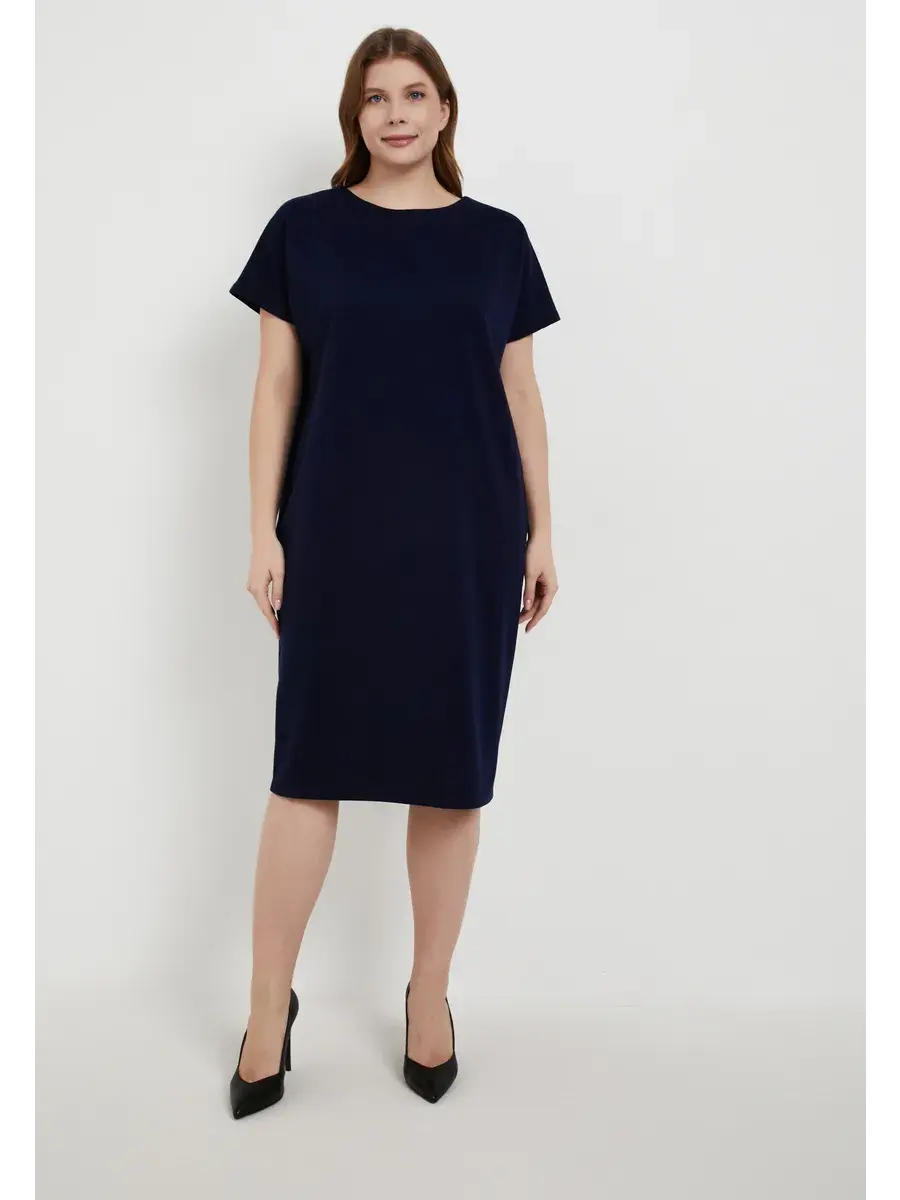 Элегантное платье-футляр из однотонной ткани, обещающее стать жемчужиной базового гардероба. Модель с цельнокроеными короткими рукавами, округлым вырезом горловины, длиной чуть ниже колен, зауженное книзу, с разрезом-шлицей сзади.