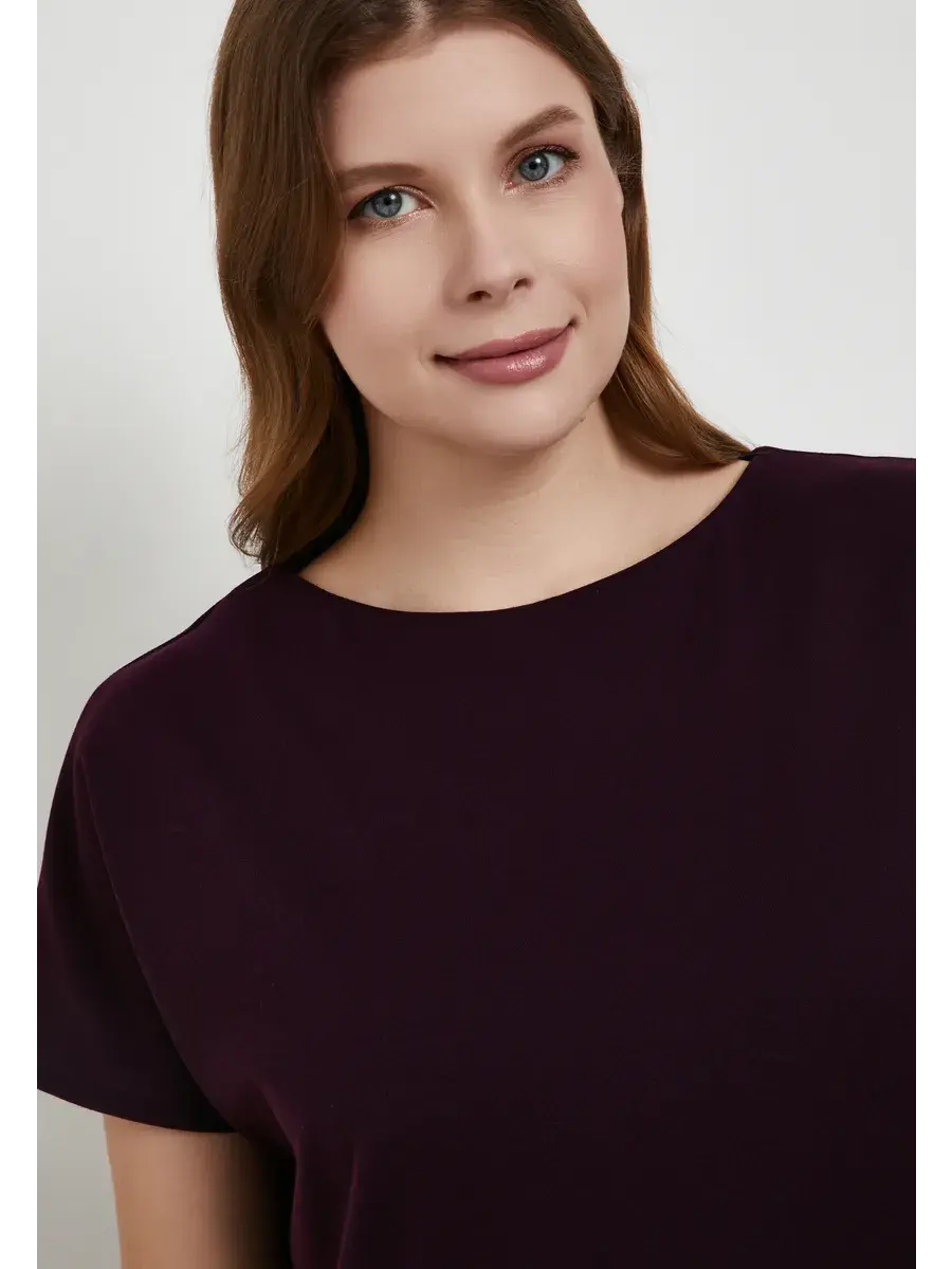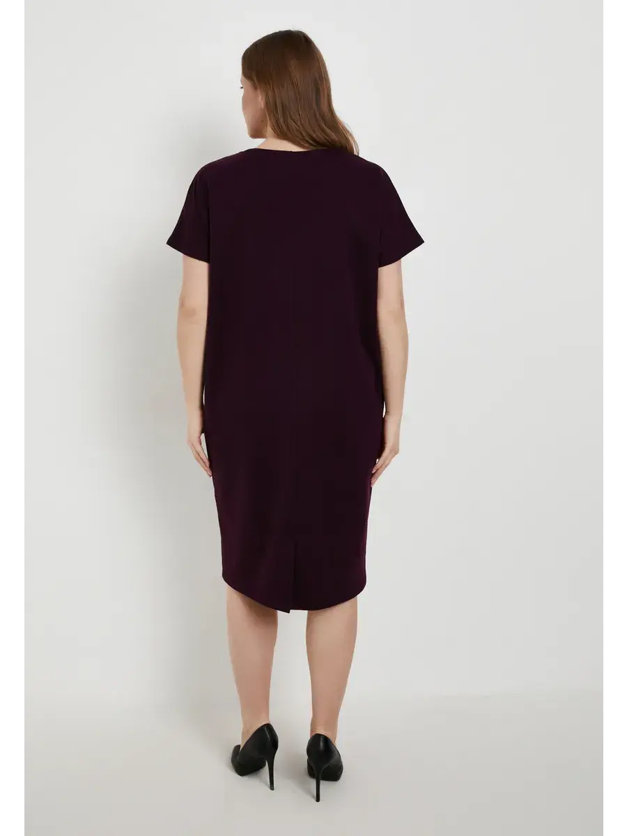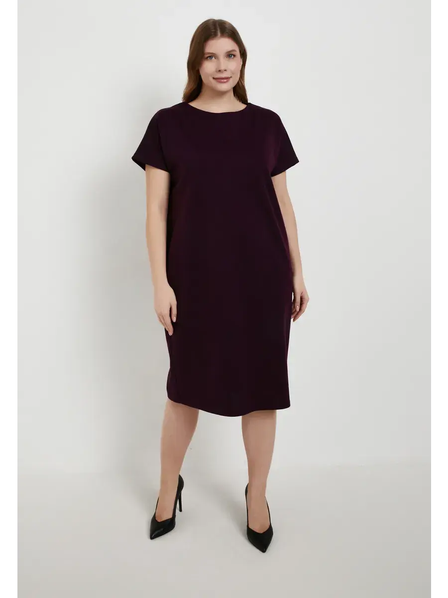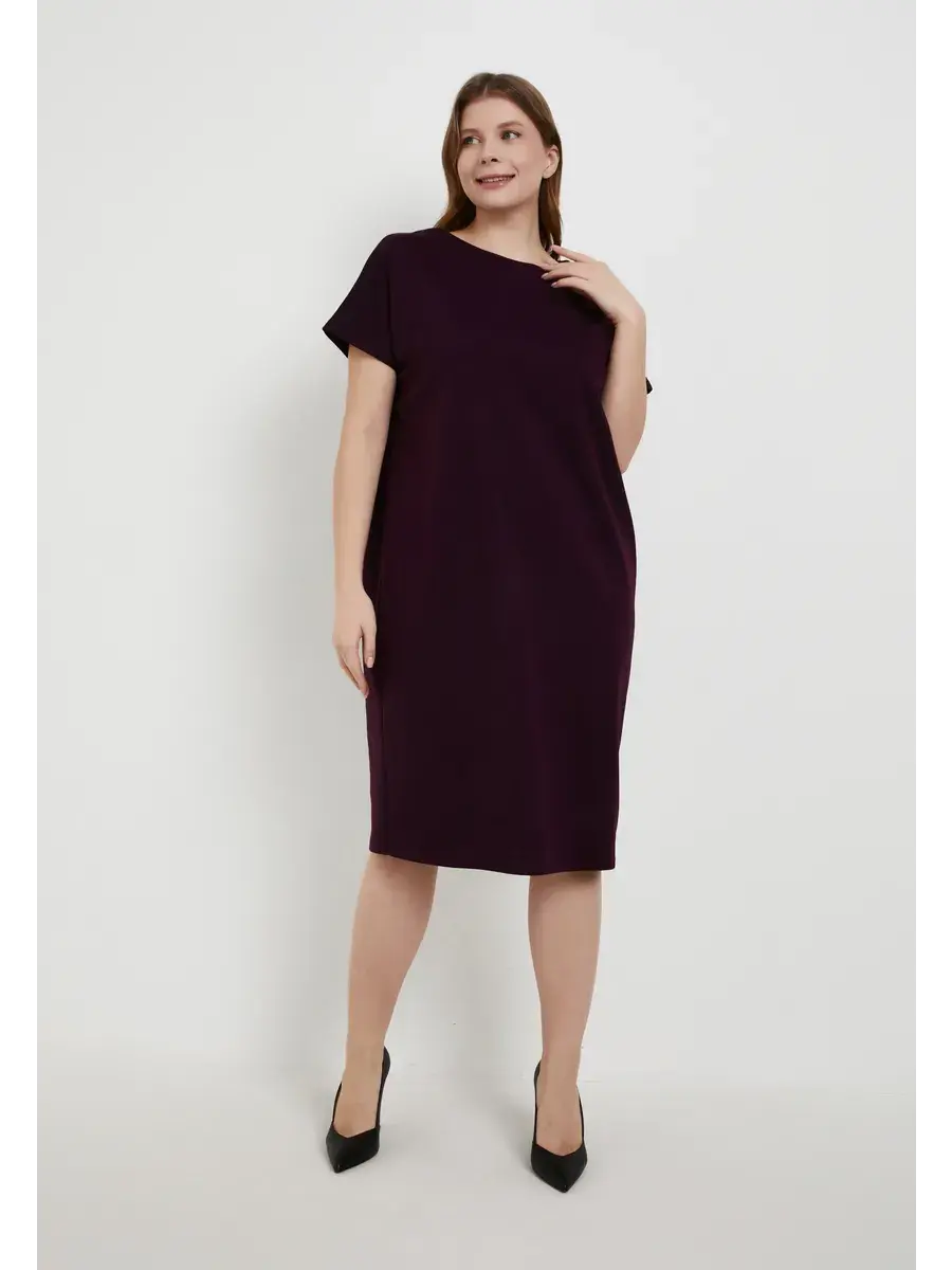 Элегантное платье-футляр из однотонной ткани, обещающее стать жемчужиной базового гардероба. Модель с цельнокроеными короткими рукавами, округлым вырезом горловины, длиной чуть ниже колен, зауженное книзу, с разрезом-шлицей сзади.