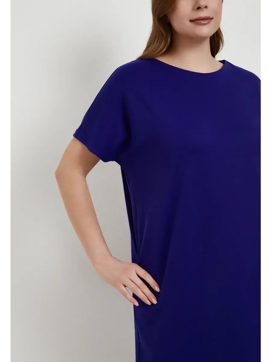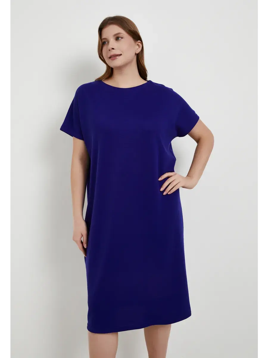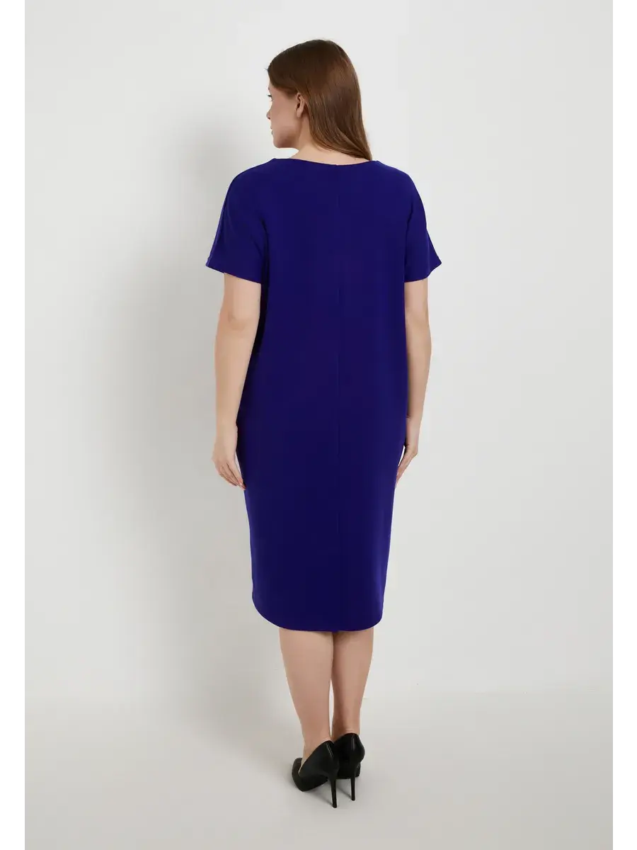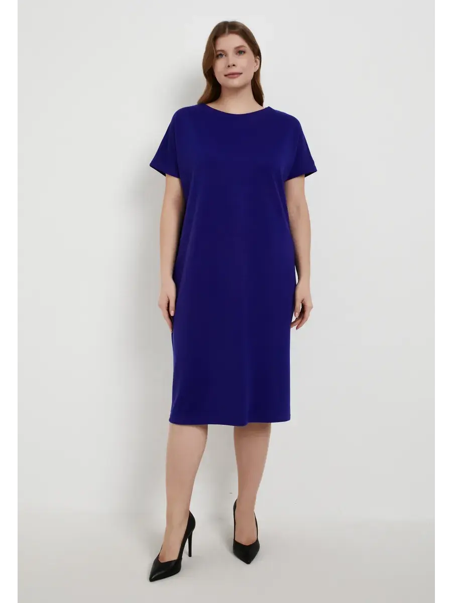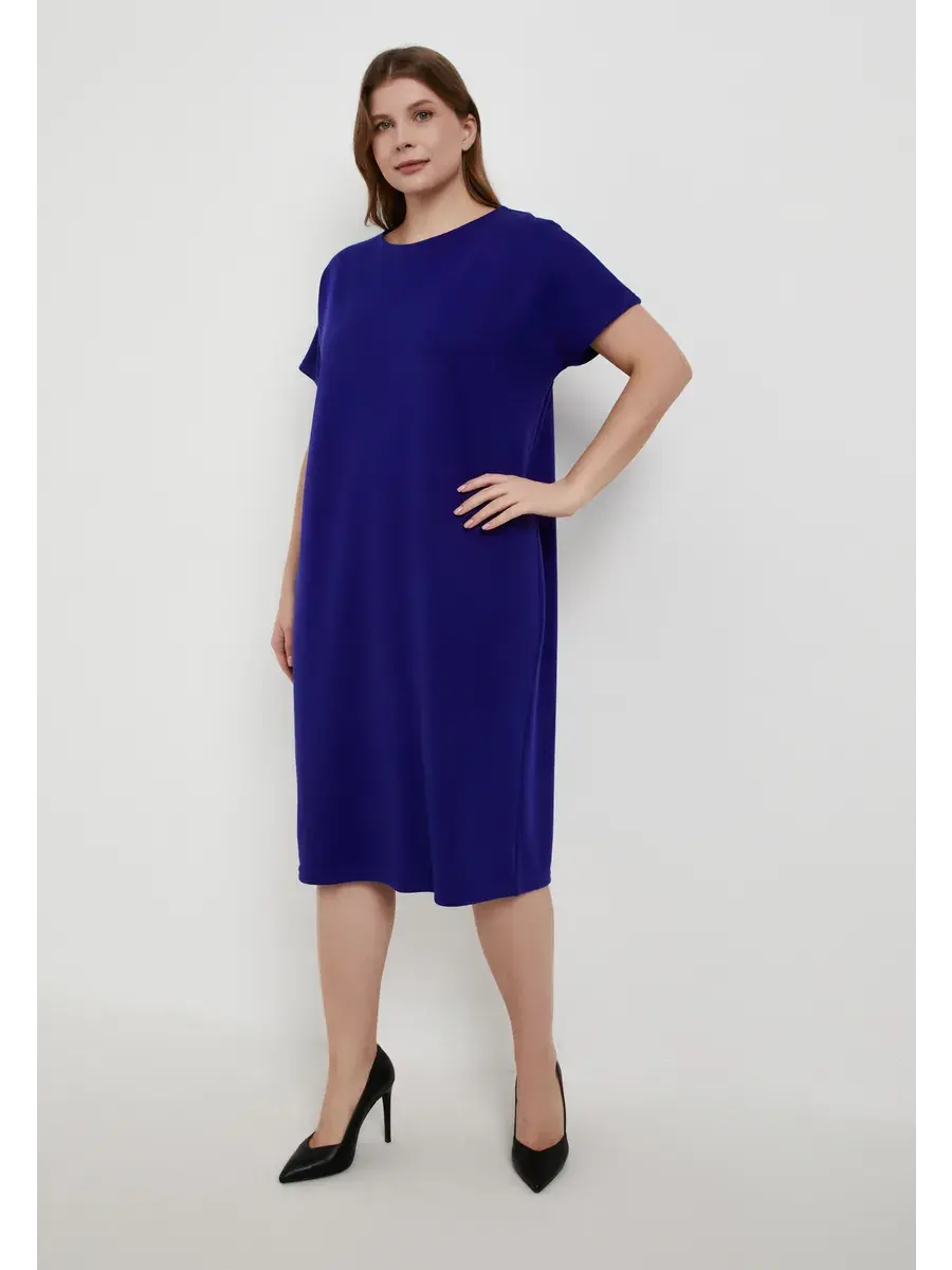 Элегантное короткое платье-футляр из однотонной ткани, обещающее стать жемчужиной базового гардероба. Модель с цельнокроеными короткими рукавами, округлым вырезом горловины, длиной чуть ниже колен, зауженное книзу, с разрезом-шлицей сзади