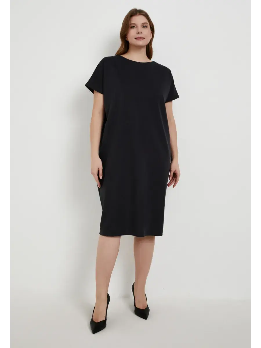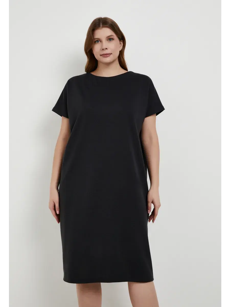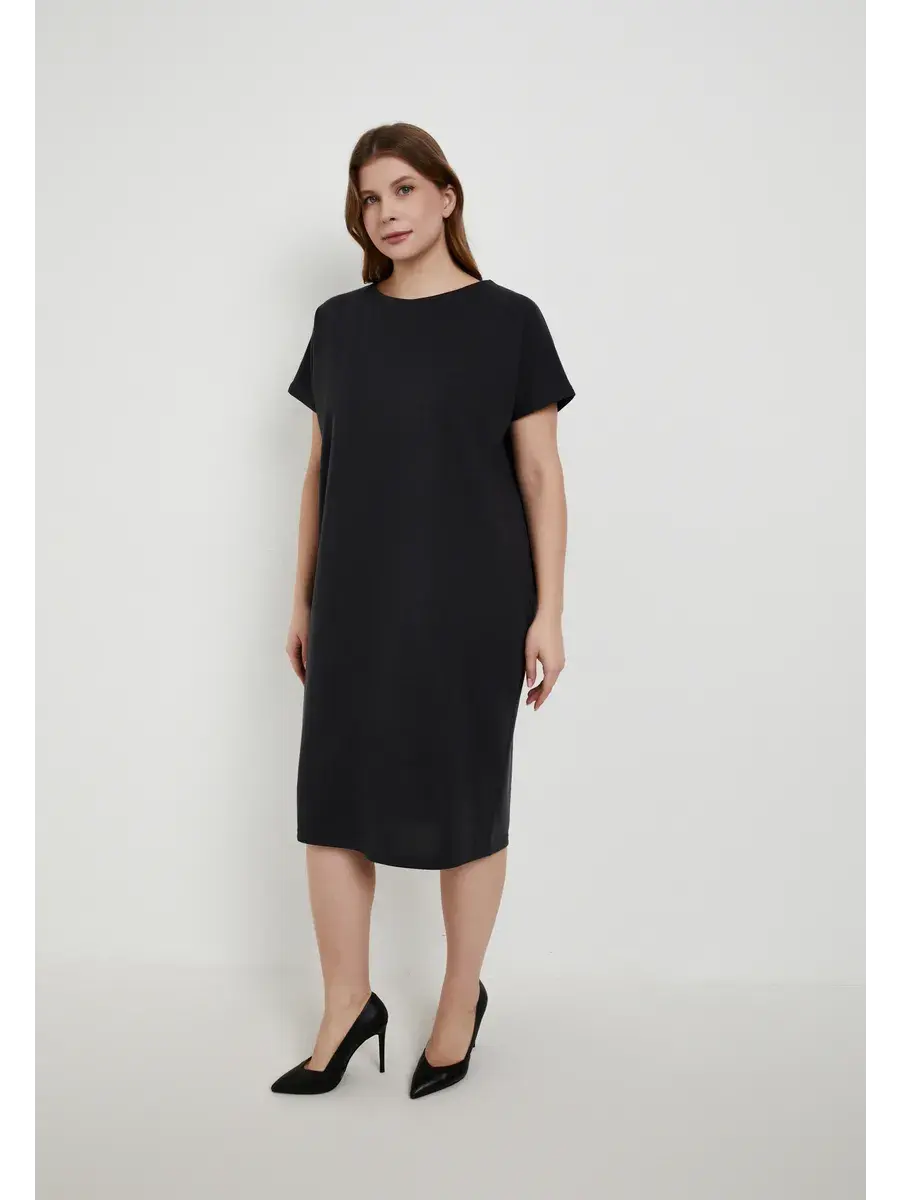 Элегантное платье-футляр из однотонной ткани, обещающее стать жемчужиной базового гардероба. Модель с цельнокроеными короткими рукавами, округлым вырезом горловины, длиной чуть ниже колен, зауженное книзу, с разрезом-шлицей сзади.