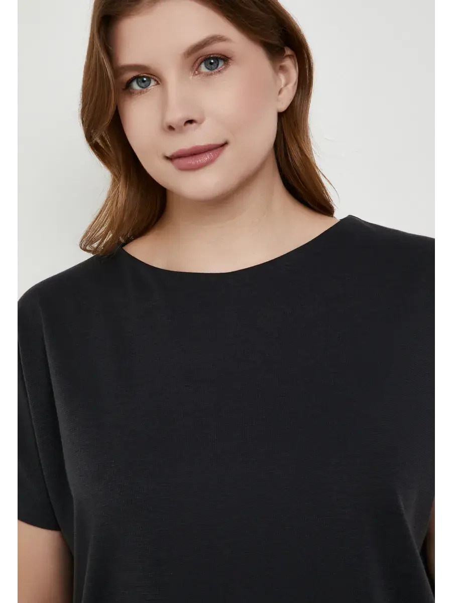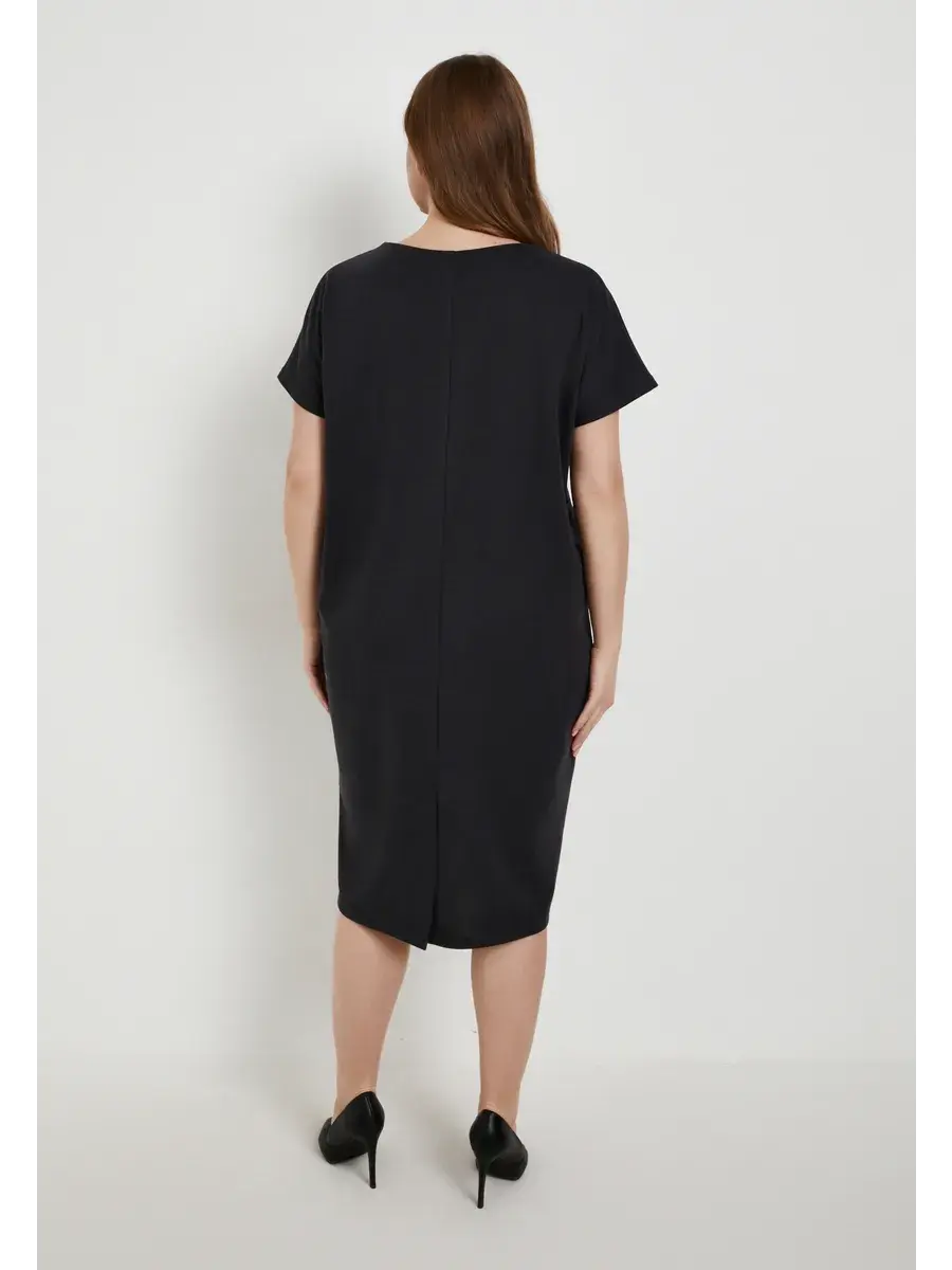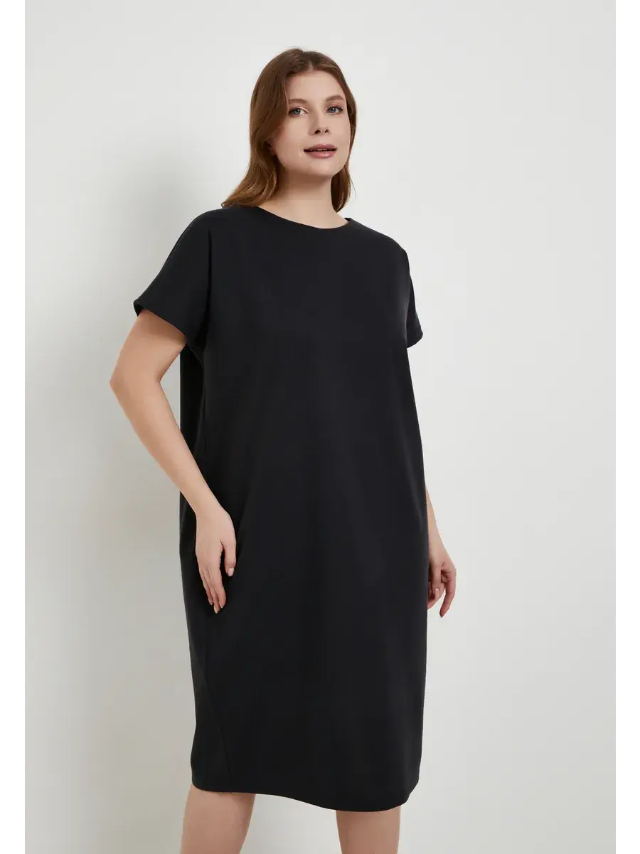 Элегантное платье-футляр из однотонной ткани, обещающее стать жемчужиной базового гардероба. Модель с цельнокроеными короткими рукавами, округлым вырезом горловины, длиной чуть ниже колен, зауженное книзу, с разрезом-шлицей сзади.
