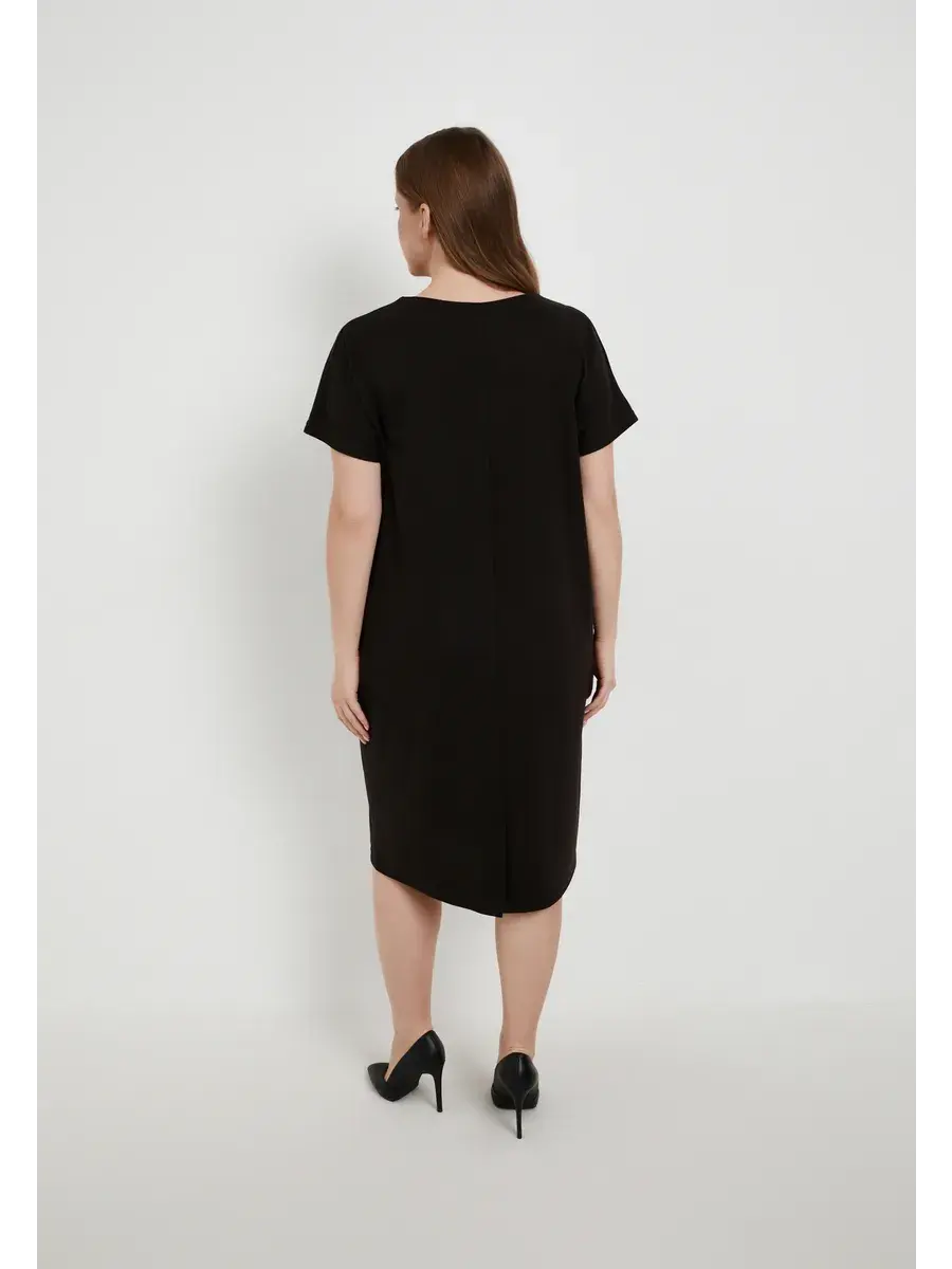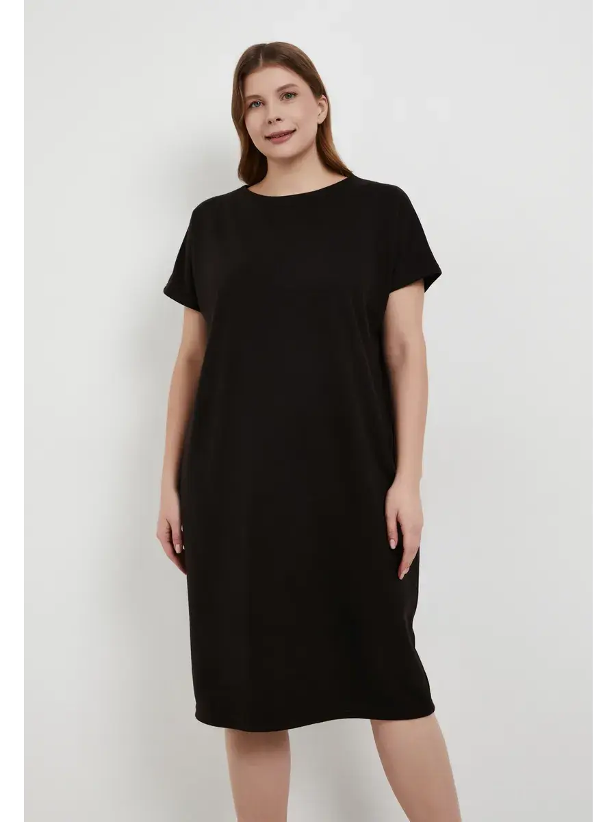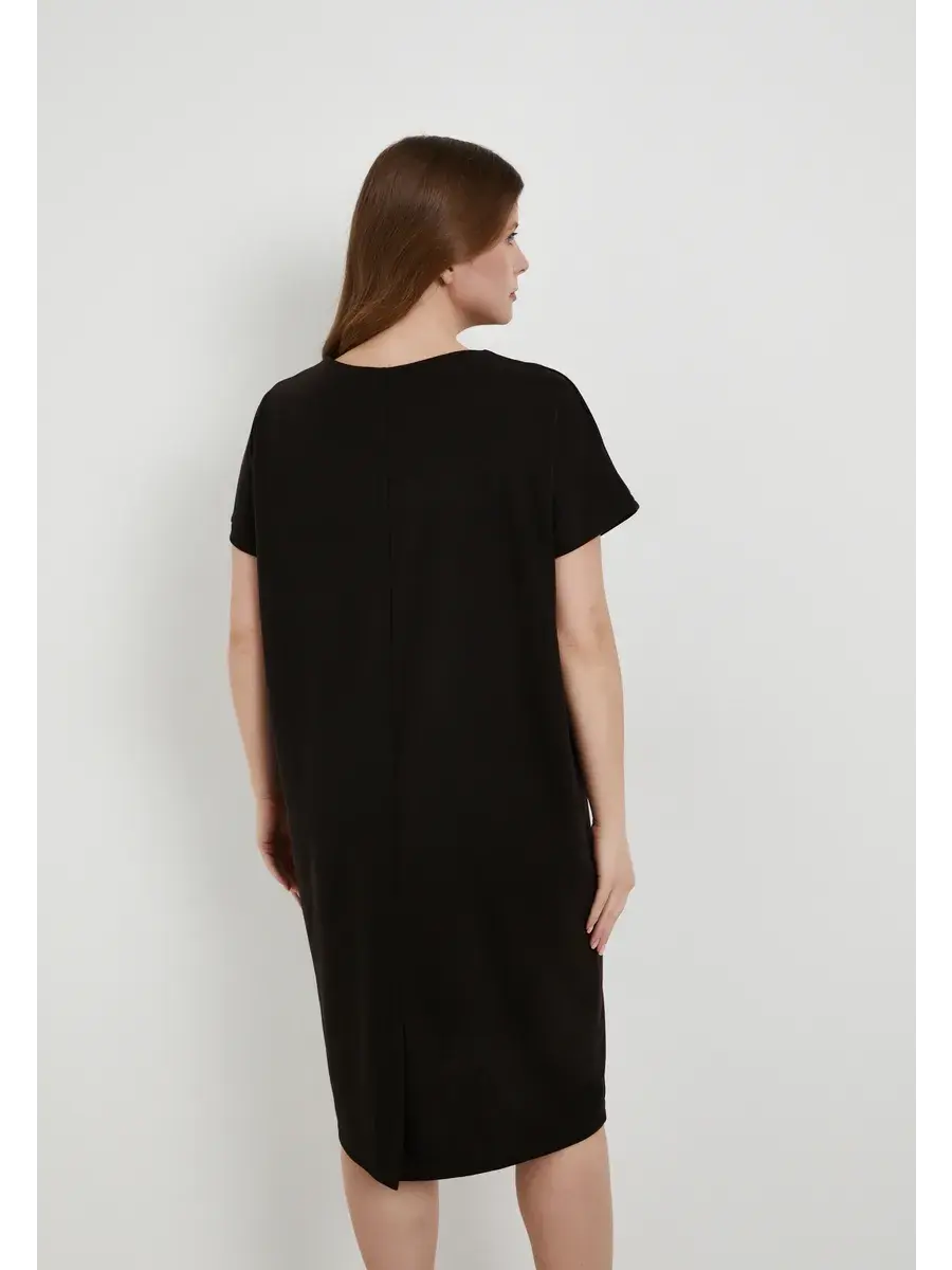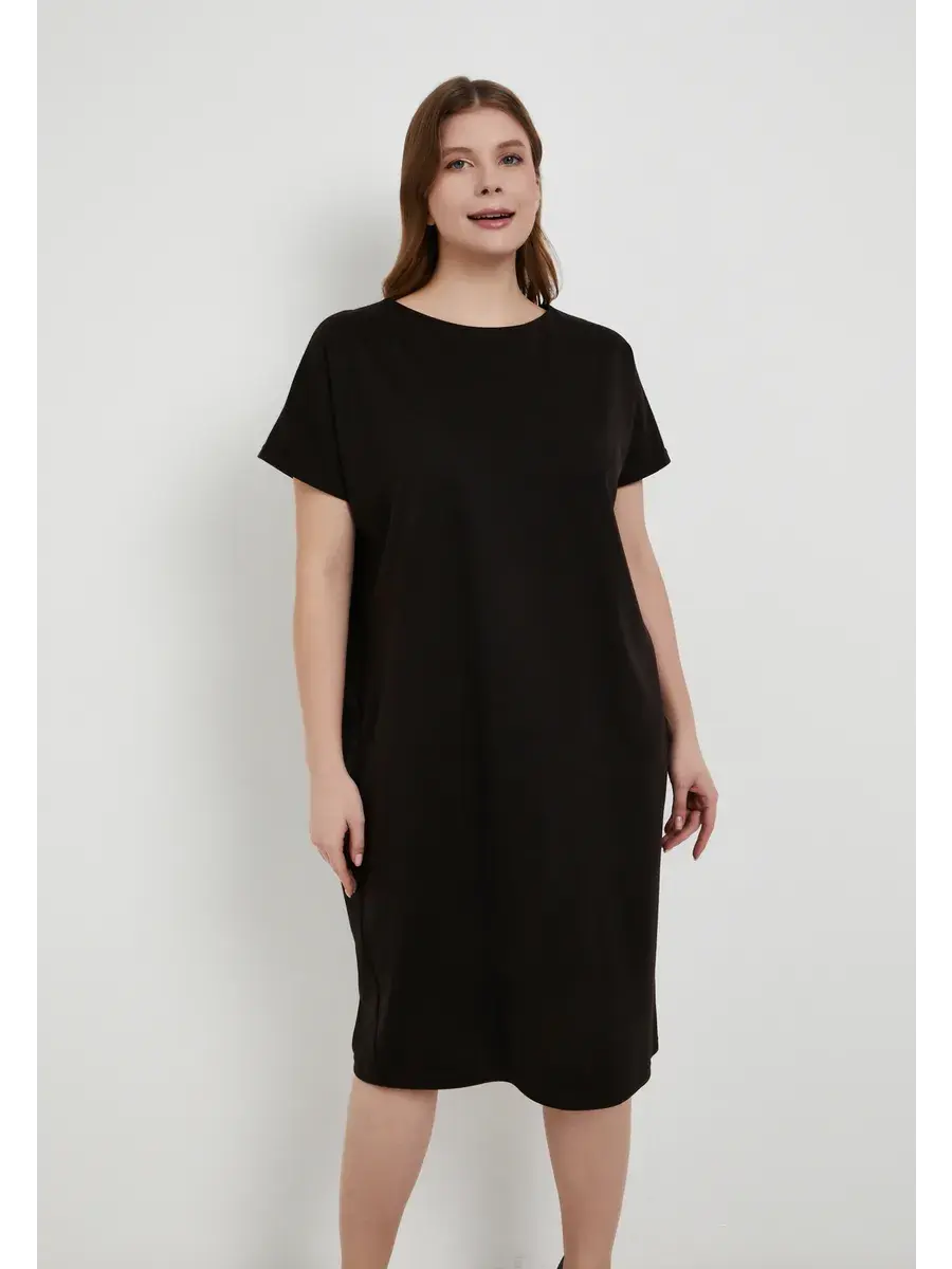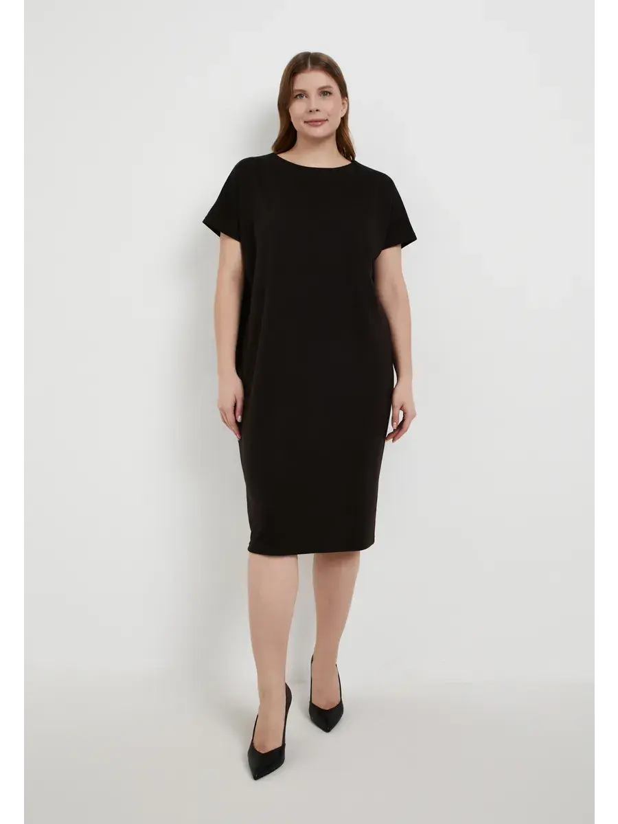 Элегантное платье-футляр из однотонной ткани, обещающее стать жемчужиной базового гардероба. Модель с цельнокроеными короткими рукавами, округлым вырезом горловины, длиной чуть ниже колен, зауженное книзу, с разрезом-шлицей сзади.