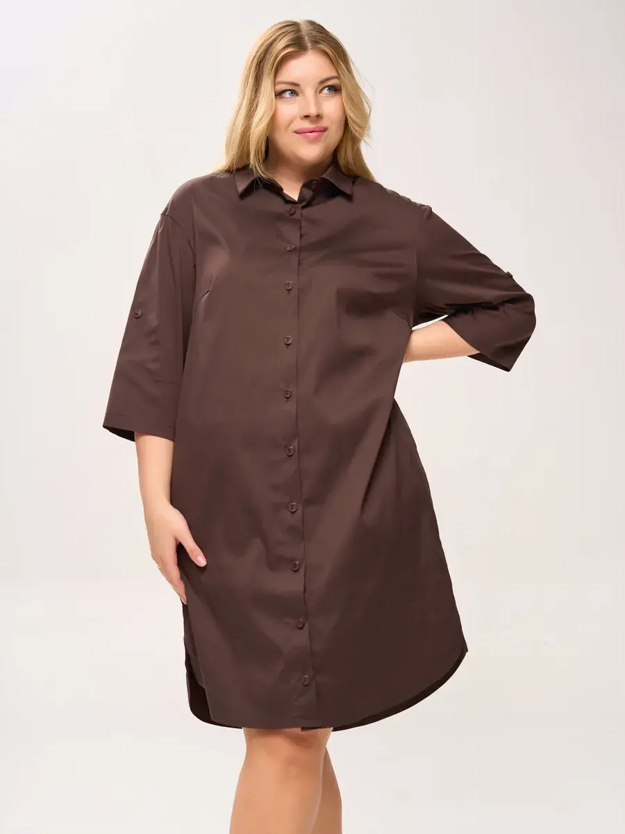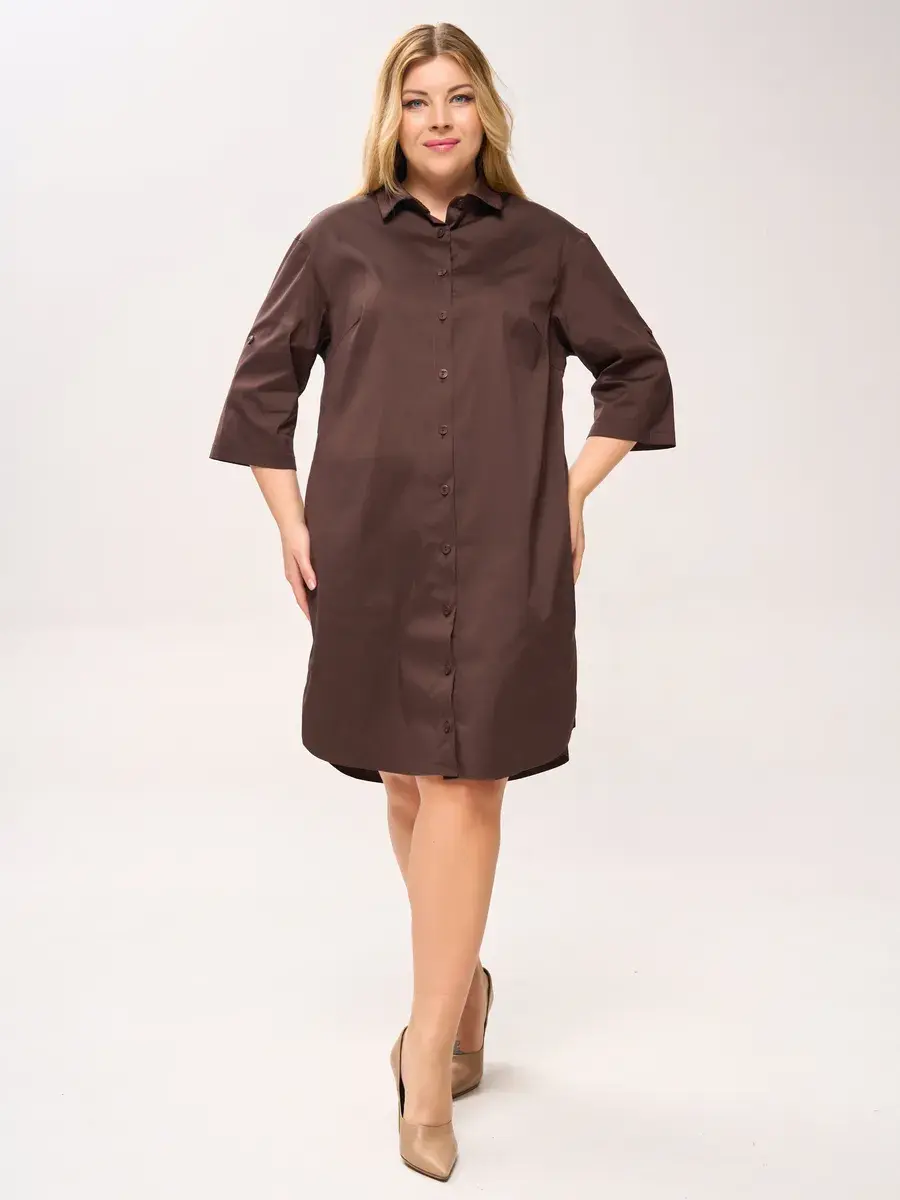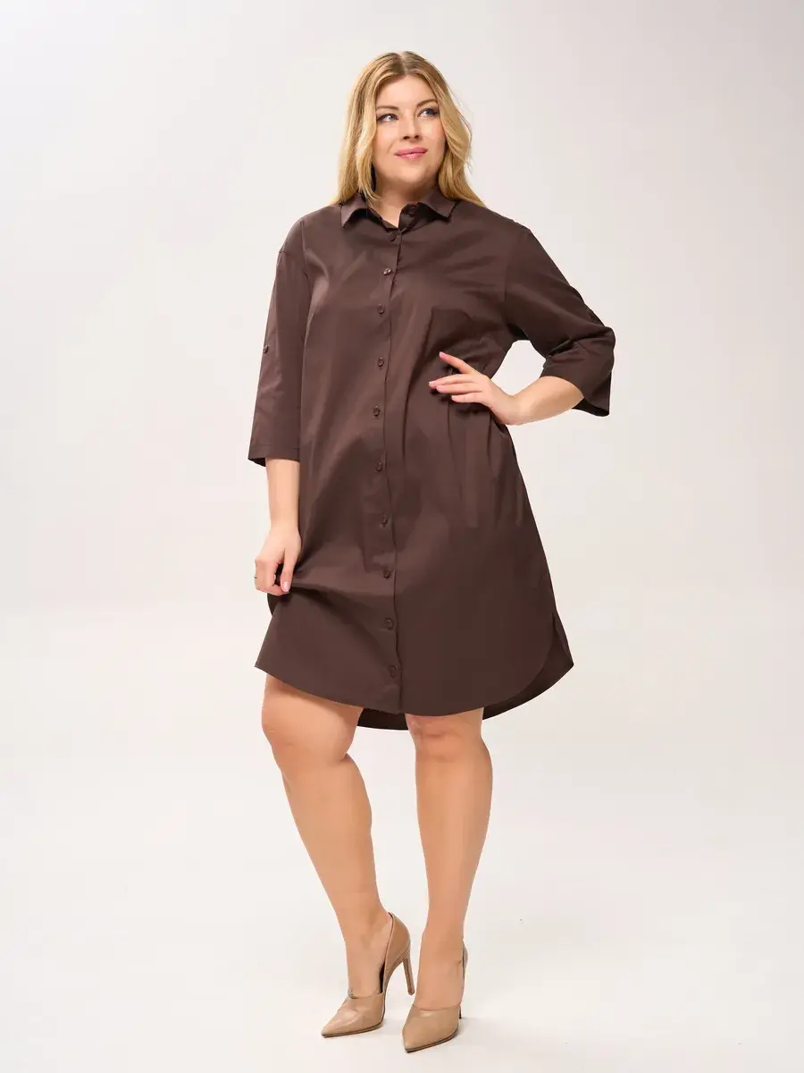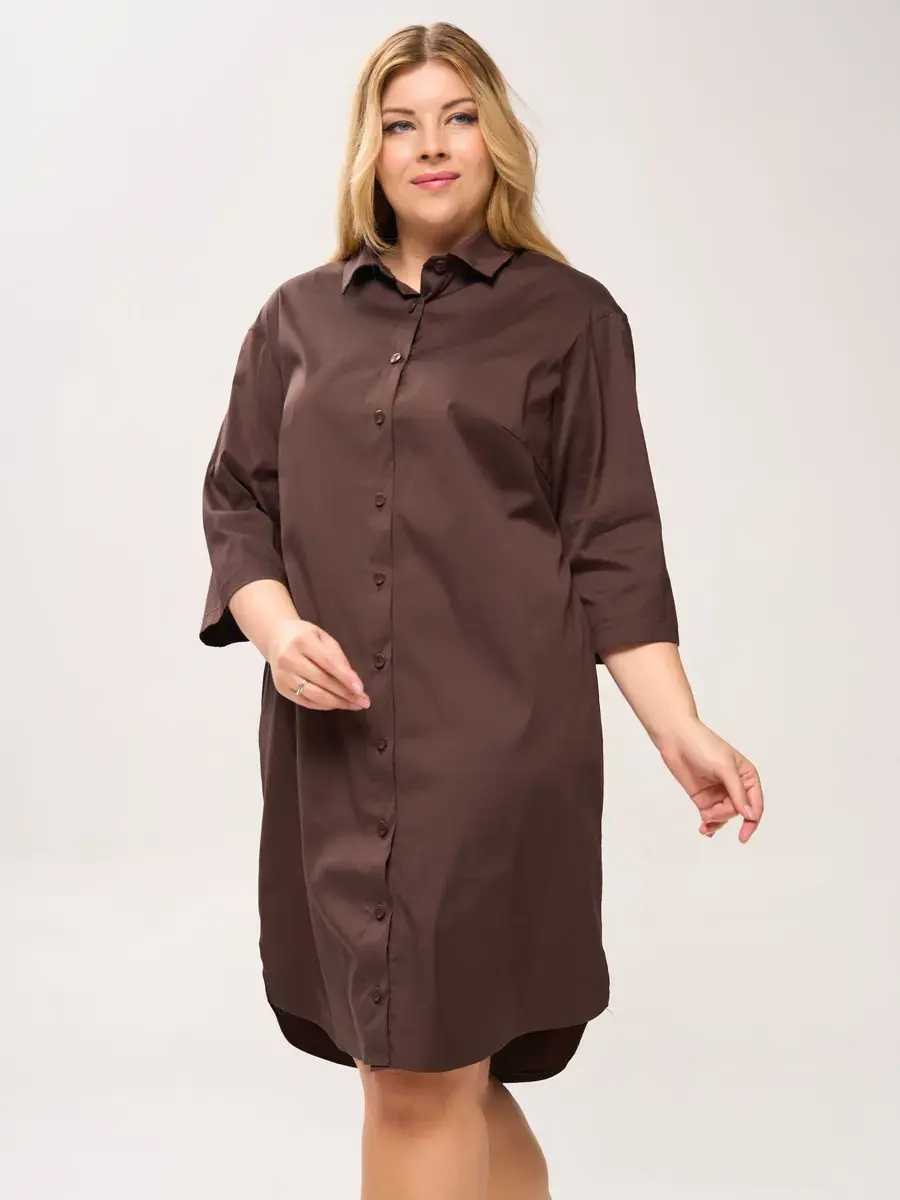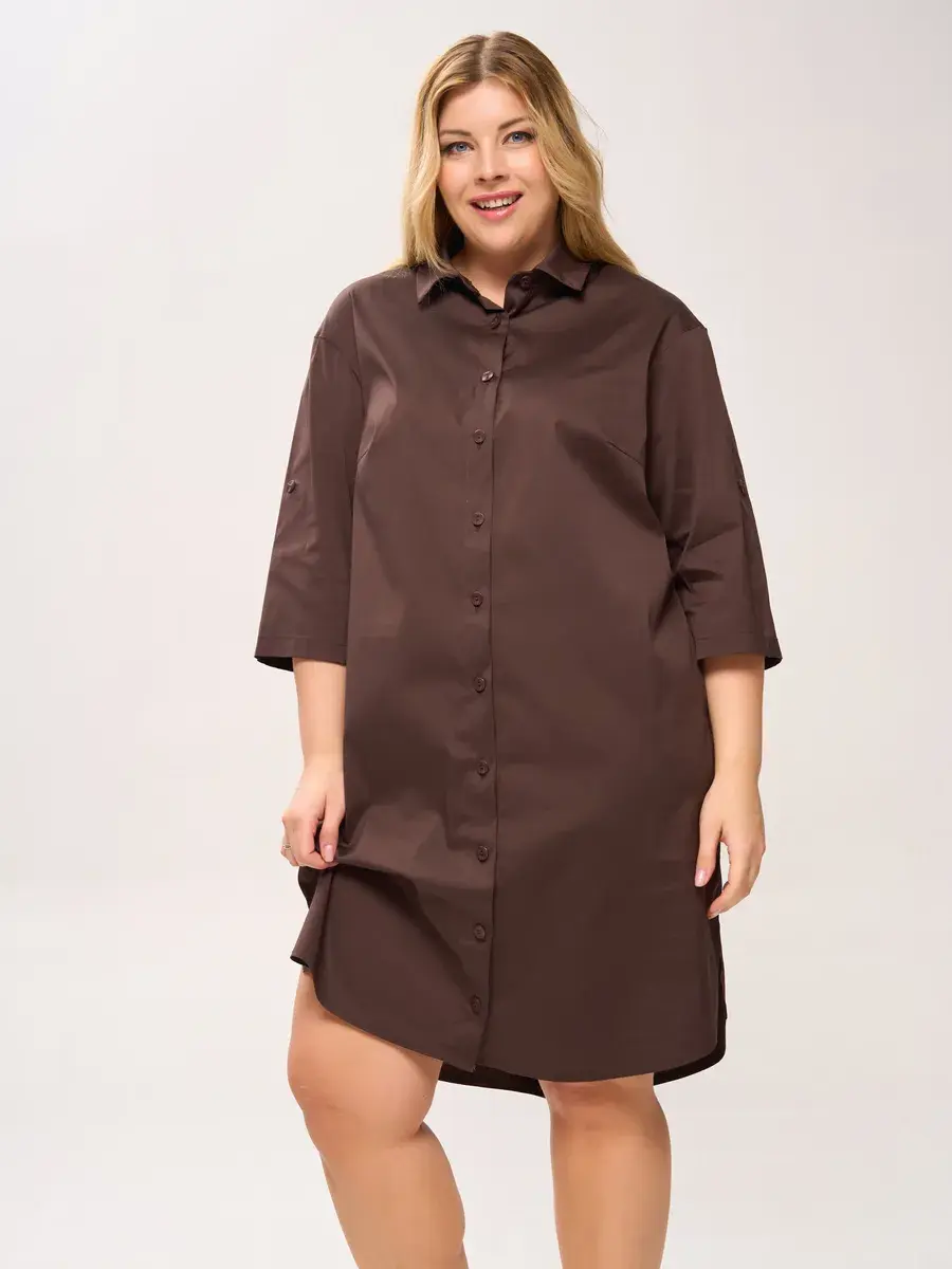 Платье-рубашка OLSI - это стильное и комфортное решение для женщин, ценящих элегантность и практичность. Сшитое из приятного на ощупь материала, состоящего из 85% хлопка, 10% вискозы и 5% эластана, оно подарит вам ощущение комфорта в течение всего дня. Классический воротник и рукава 3/4 придают модели универсальный вид, подходящий как для повседневных образов, так и для вечерних выходов. Длина миди и прямой покрой делают платье-рубашку OLSI идеальным вариантом для любого типа фигуры, а удобные карманы в шве добавляют функциональности. Благодаря пуговичной застежке, вы можете легко регулировать степень прилегания, создавая индивидуальный стиль. Модель выполнена в благородном коричневом цвете, который легко сочетается с различными аксессуарами и обувью.