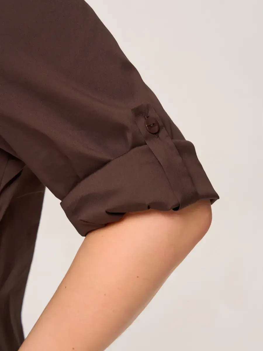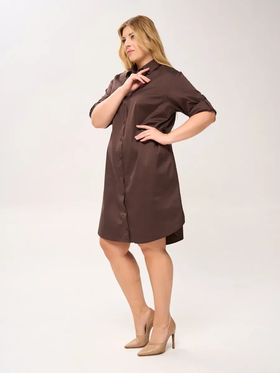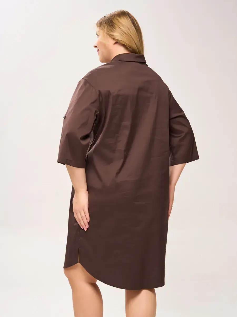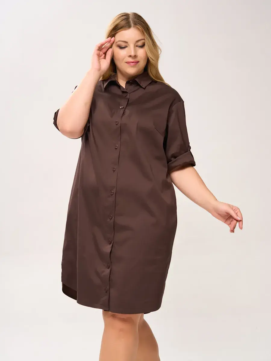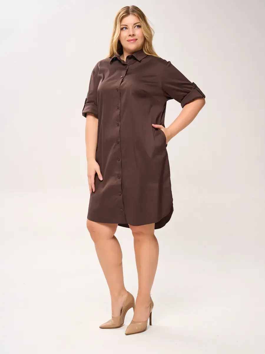Платье-рубашка OLSI - это стильное и комфортное решение для женщин, ценящих элегантность и практичность. Сшитое из приятного на ощупь материала, состоящего из 85% хлопка, 10% вискозы и 5% эластана, оно подарит вам ощущение комфорта в течение всего дня. Классический воротник и рукава 3/4 придают модели универсальный вид, подходящий как для повседневных образов, так и для вечерних выходов. Длина миди и прямой покрой делают платье-рубашку OLSI идеальным вариантом для любого типа фигуры, а удобные карманы в шве добавляют функциональности. Благодаря пуговичной застежке, вы можете легко регулировать степень прилегания, создавая индивидуальный стиль. Модель выполнена в благородном коричневом цвете, который легко сочетается с различными аксессуарами и обувью.