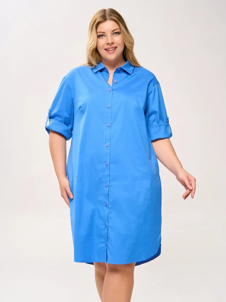 Платье-рубашка OLSI – это стильное и комфортное решение для женщин, ценящих элегантность и свободу движений. Модель выполнена из приятного на ощупь материала, состоящего из 85% хлопка, 10% вискозы и 5% эластана, что обеспечивает мягкость, воздухопроницаемость и комфорт в носке. Классический воротник и рукава 3/4 придают платью универсальный вид, подходящий как для повседневных прогулок, так и для праздничных мероприятий. Длина миди и прямой покрой делают его идеальным вариантом для женщин больших размеров, обеспечивая свободу движений и подчеркивая достоинства фигуры. Удобные карманы в шве – практичный элемент, который позволит вам всегда иметь под рукой необходимые мелочи. Благодаря своему лаконичному дизайну и комфортному крою, это платье станет незаменимым элементом вашего гардероба, как для будней, так и для особых случаев, будь то встреча с друзьями, празднование Нового года или юбилей.