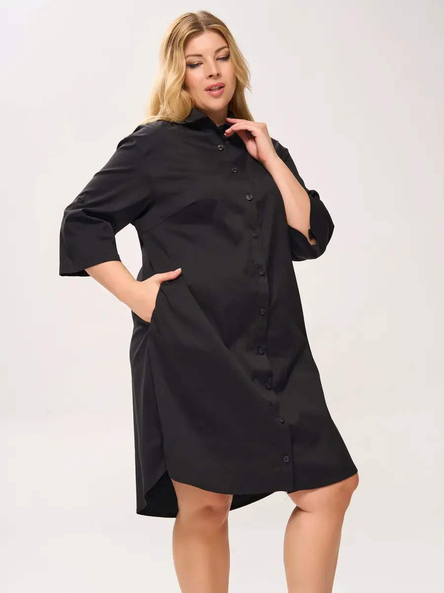 Платье-рубашка OLSI – это стильное и комфортное решение для женщин, ценящих элегантность и свободу движений. Модель выполнена из приятного на ощупь материала, состоящего из 85% хлопка, 10% вискозы и 5% эластана, что обеспечивает мягкость, воздухопроницаемость и комфорт в носке. Классический воротник и рукава 3/4 придают платью универсальный вид, подходящий как для повседневных прогулок, так и для праздничных мероприятий. Длина миди и прямой покрой делают его идеальным вариантом для женщин больших размеров, обеспечивая свободу движений и подчеркивая достоинства фигуры. Удобные карманы в шве – практичный элемент, который позволит вам всегда иметь под рукой необходимые мелочи. Благодаря своему лаконичному дизайну и комфортному крою, это платье станет незаменимым элементом вашего гардероба, как для будней, так и для особых случаев, будь то встреча с друзьями, празднование Нового года или юбилей.