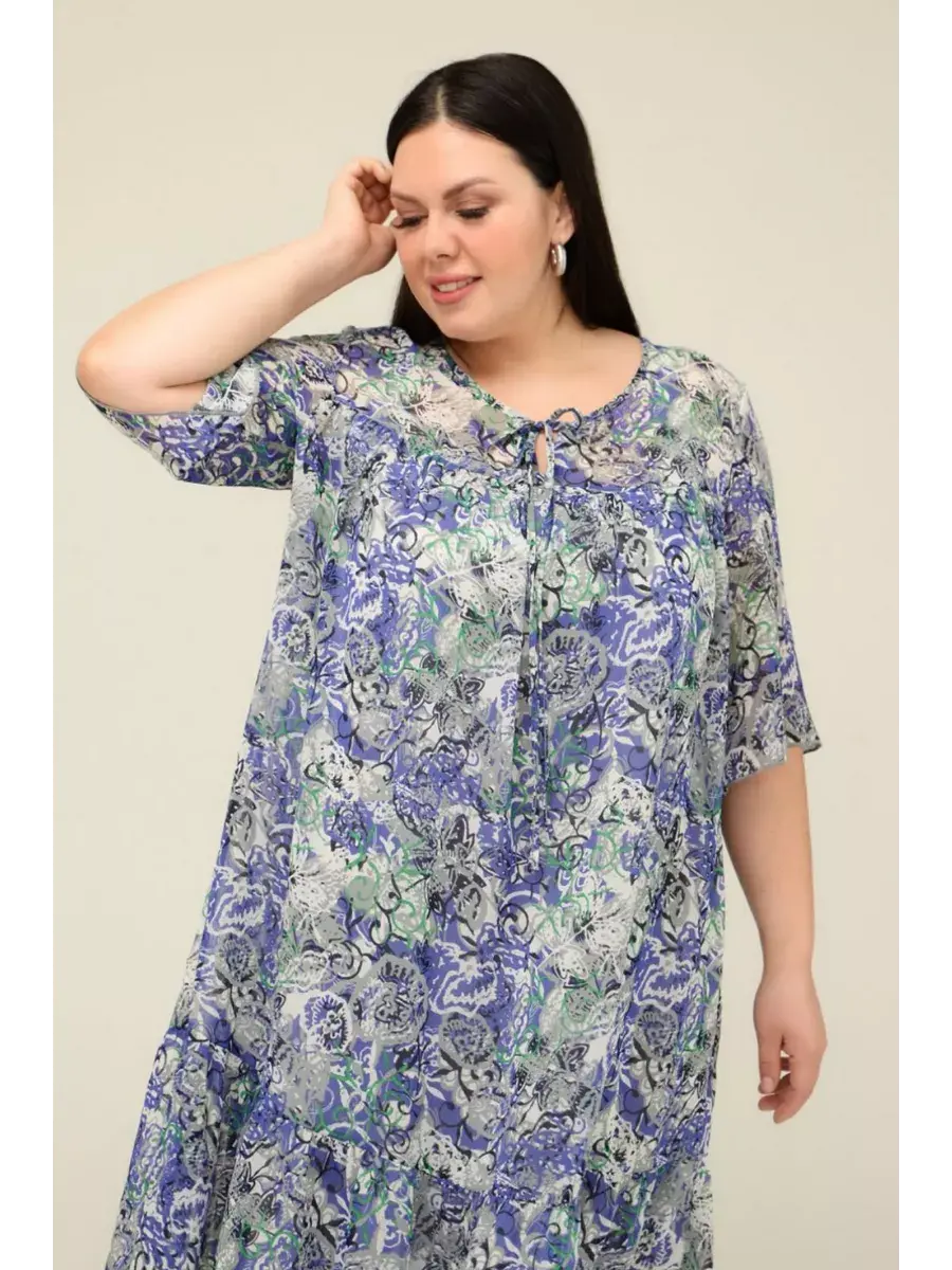 Женское летнее платье больших размеров от бренда OLSI, выполнено из струящегося искусственного шифона свободного кроя, с подкладом из трикотажного материала. Длина рукава прикрывает сгиб локтя. Вырез горловины - капля, с завязками. Хорошо сидит на любой фигуре. Нарядное летнее платье из шифона скрывает недостатки и стройнит. Повседневное женское платье свободного кроя, сочетается с поясом (в комплект не входит) подчеркнет талию и создает женственный силуэт. Элегантное ярусное платье с рукавом 3/4 и округлым вырезом горловины делает образ легким, подойдет полным девушкам. Шифоновое платье в цветочек – прекрасный выбор для стильного образа на торжество в ресторан или корпоратив, для мамы. Имея в своем гардеробе длинную базовую модель воздушного платья можно составить различные стильные весенние образы. Наше летнее платье идеально подойдет на выписку из роддома и беременных женщин. В нем вы будите уместно выглядеть в церкви и храме, идеально на крестины и церковный праздник. Мы будем благодарны, что вы выбираете нас, переходите в каталог, добавляйте наши товары в избранное, а магазин в любимые бренды и узнавайте первыми про тренды, акции и скидки!