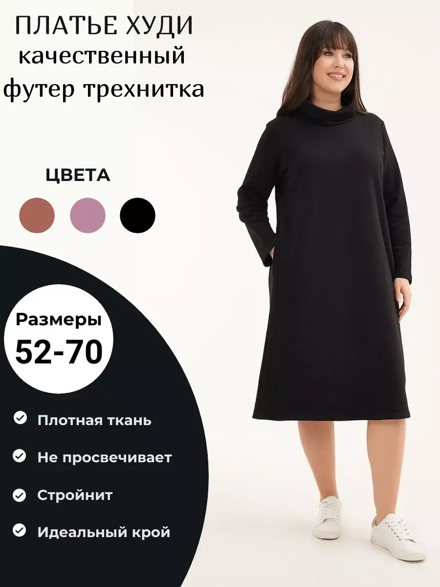 Стильное и практичное женское трикотажное платье толстовка от бренда OLSI выполнено из футера 3х-нитки без утепления. Повседневное женское платье больших размеров выполнено из хлопка , прямого кроя, с длинным рукавом, воротник широкая стойка. По бокам выполнены вставки из кошкорсе - плотный трикотаж лапша. Боковые карманы расположены в боковых швах. Тёплое платье из футера высокого качества идеально подойдёт на прохладную погоду. Повседневное платье толстовка с длинными рукавами свободного кроя. Платье большого размера идеально впишется в зимний гардероб модниц с размерами plus size (плюс сайз ). Платье свободного кроя , за счёт чего скрывает все недостатки фигуры, при этом подчёркивает её достоинства. Стильное женское платье oversize универсальное: его можно носить и в офис, и как повседневное платье. Трикотажное платье оверсайз подойдёт и для стройных девушек, и для беременных или полных женщин, и как платье плюс сайз. Платье однотонное, представлено в нескольких актуальных расцветках. Длина платья миди чуть ниже колена, впишется в любой дресс код и подойдет на любой случай. Спортивное платье подойдёт для девушек и женщин, которые предпочитают спортивный стиль спортшик.