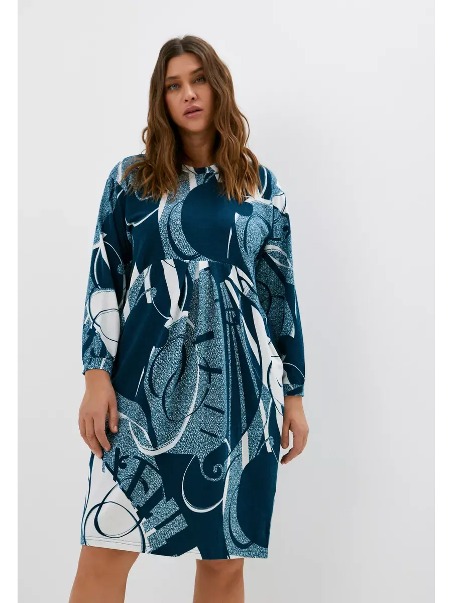 Женское платье больших размеров с карманами, выполнено из мягкого приятного на ощупь трикотажного полотна.