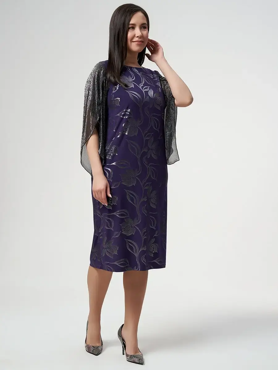 Платье женское прямого кроя больших размеров из трикотажного полотна по типу масло, свободный рукав с люрексом. Длина изделия по спинке от 110см в р.48 до 115,5см в р.70, длина рукава 47см.