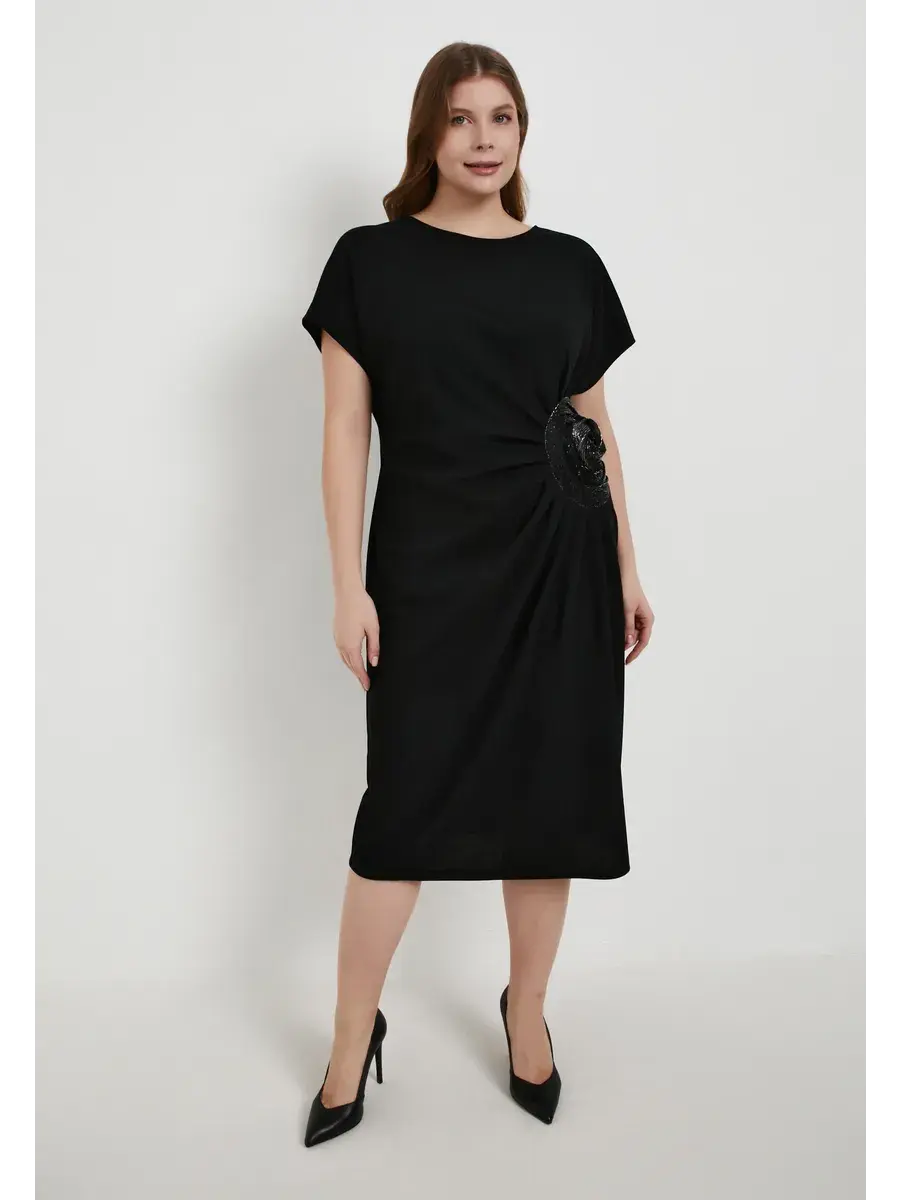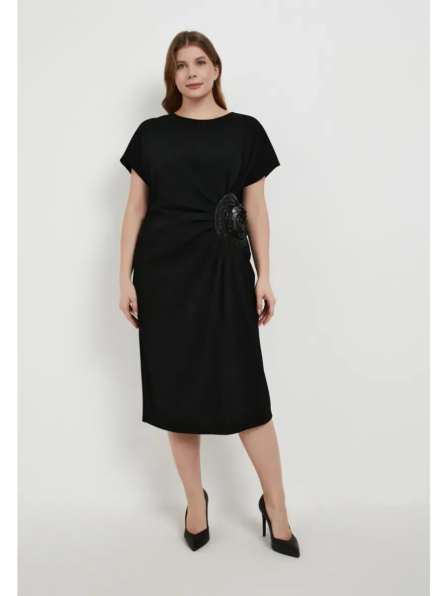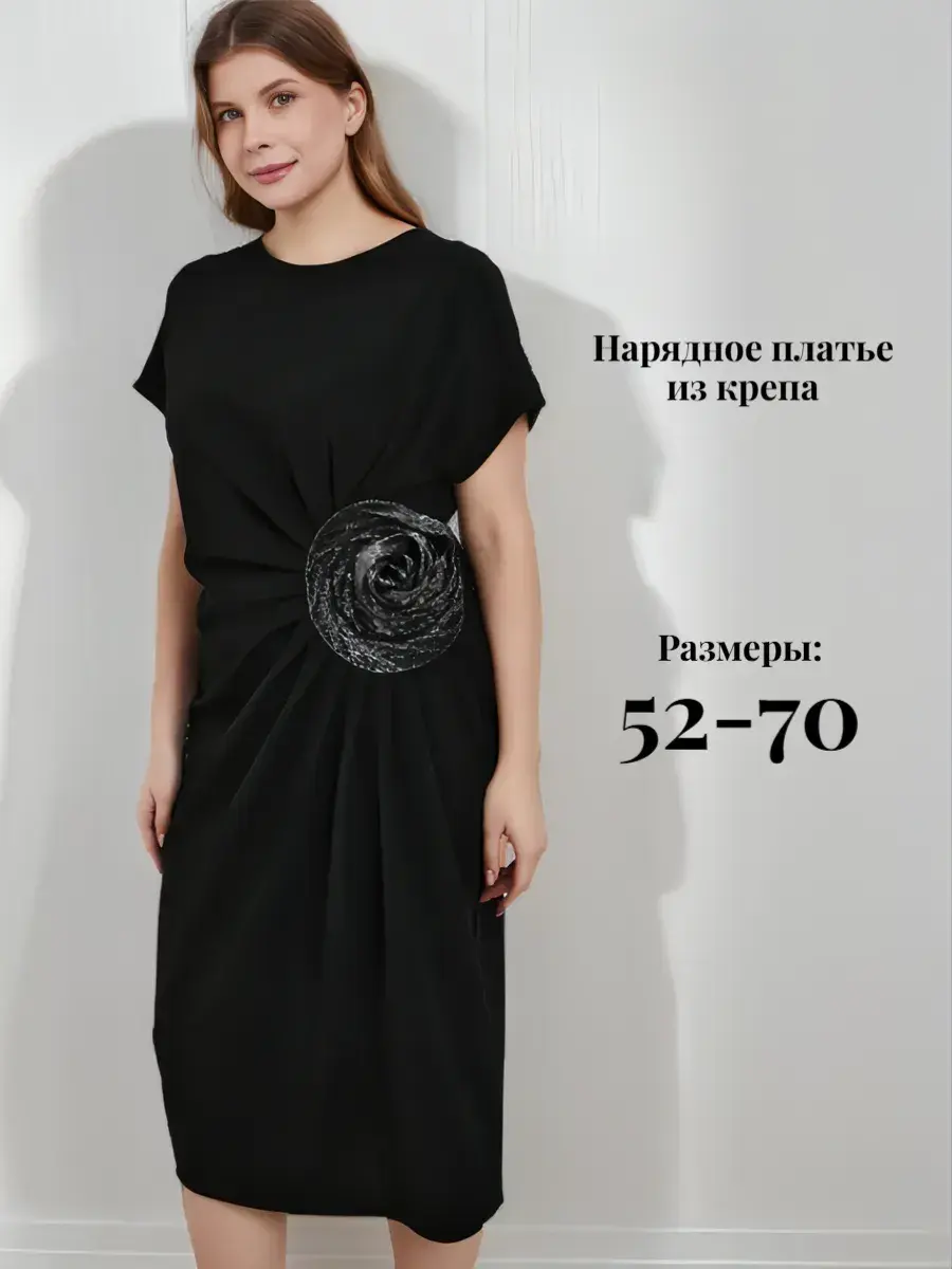 Платье-футляр OLSI - это идеальный выбор для тех, кто ищет нарядное платье для особых случаев. Эта модель выполнена из гладкой полиэстеровой ткани, которая красиво струится и подчеркивает фигуру. Округлый вырез горловины и короткие цельнокроеные рукава придают платью элегантный и женственный вид. Благодаря приталенному покрою и длине миди, платье создает утонченный силуэт, а аппликация добавляет праздничный блеск. Модель доступна в двух цветах: глубокий синий космос и классический черный. Платье OLSI станет прекрасным выбором для вечерних мероприятий, торжественных встреч и праздничных событий. Его универсальный дизайн и доступность в больших размерах делают его идеальным вариантом для женщин, которые ценят комфорт и стиль.