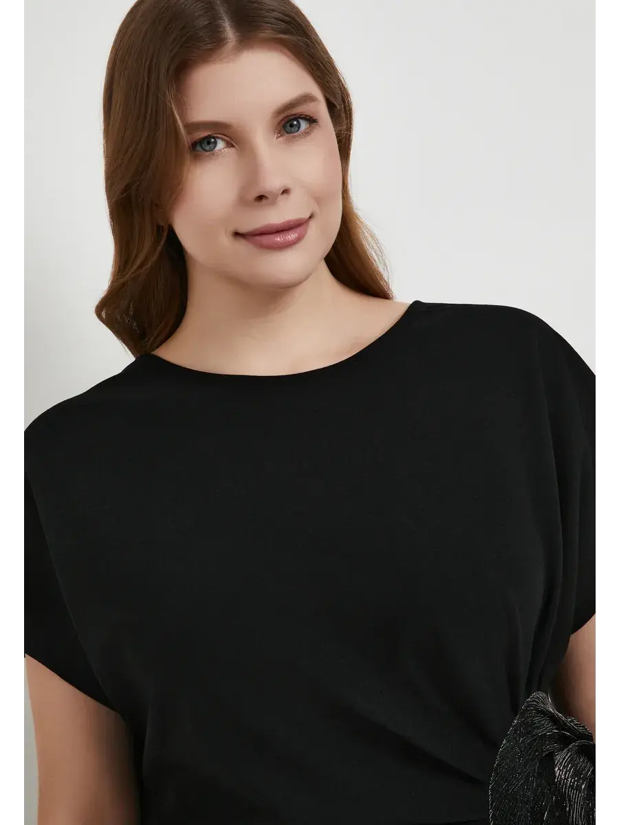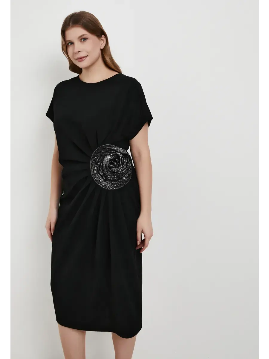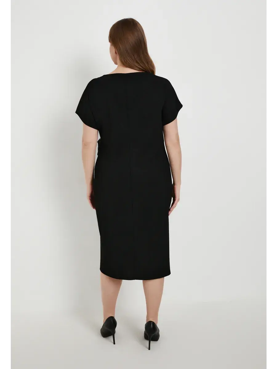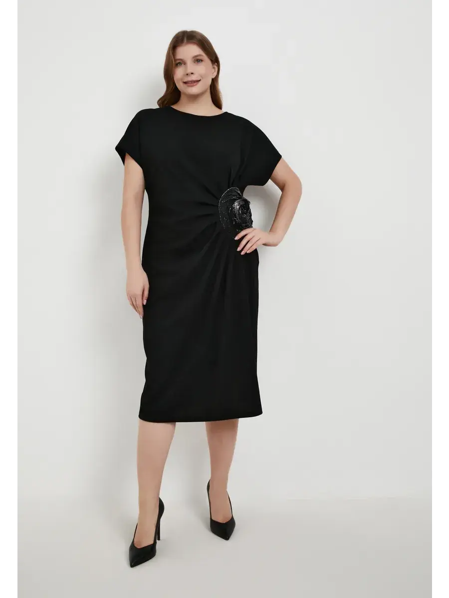 Платье-футляр OLSI - это идеальный выбор для тех, кто ищет нарядное платье для особых случаев. Эта модель выполнена из гладкой полиэстеровой ткани, которая красиво струится и подчеркивает фигуру. Округлый вырез горловины и короткие цельнокроеные рукава придают платью элегантный и женственный вид. Благодаря приталенному покрою и длине миди, платье создает утонченный силуэт, а аппликация добавляет праздничный блеск. Модель доступна в двух цветах: глубокий синий космос и классический черный. Платье OLSI станет прекрасным выбором для вечерних мероприятий, торжественных встреч и праздничных событий. Его универсальный дизайн и доступность в больших размерах делают его идеальным вариантом для женщин, которые ценят комфорт и стиль.