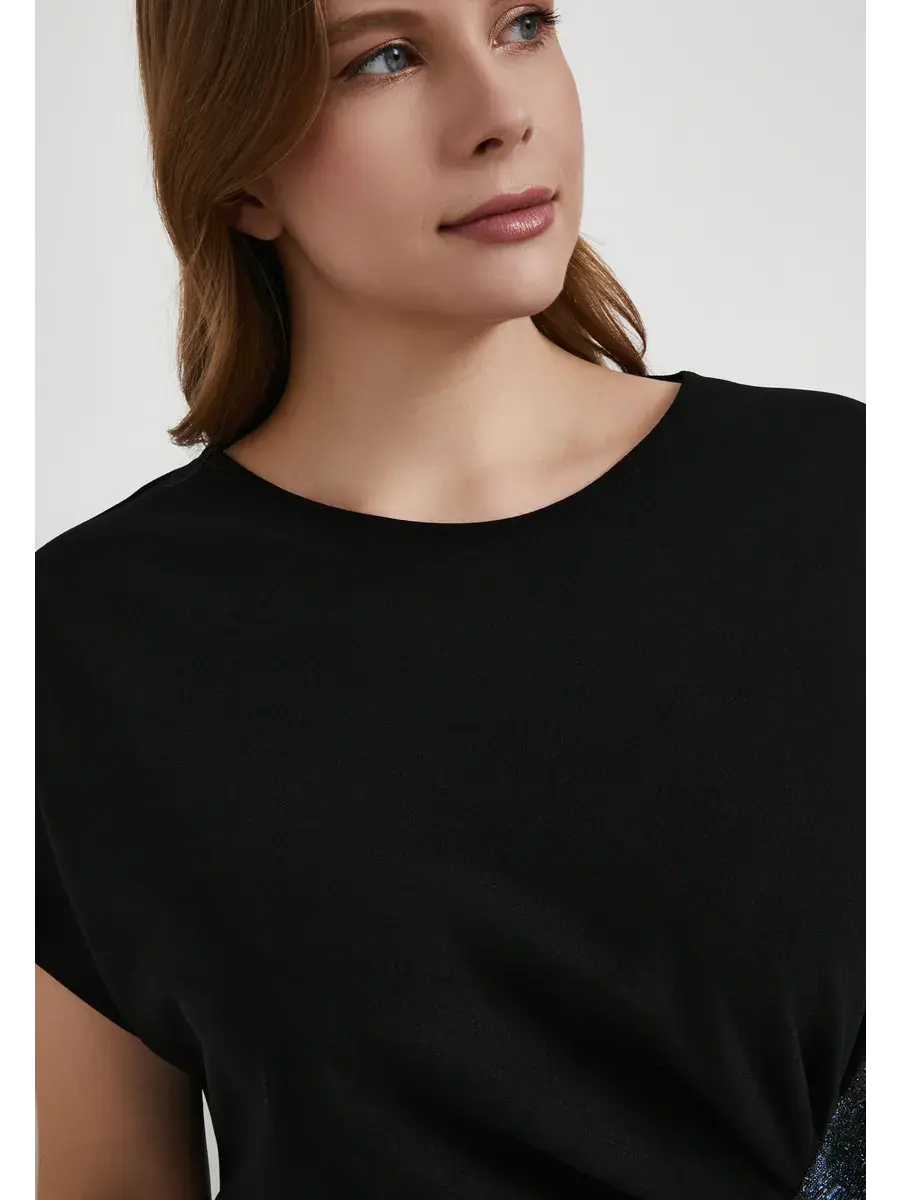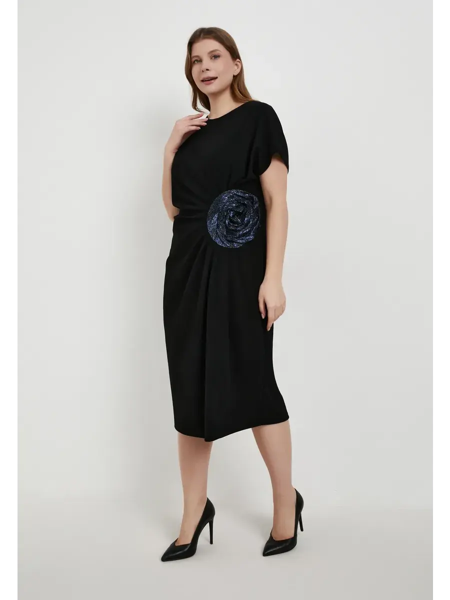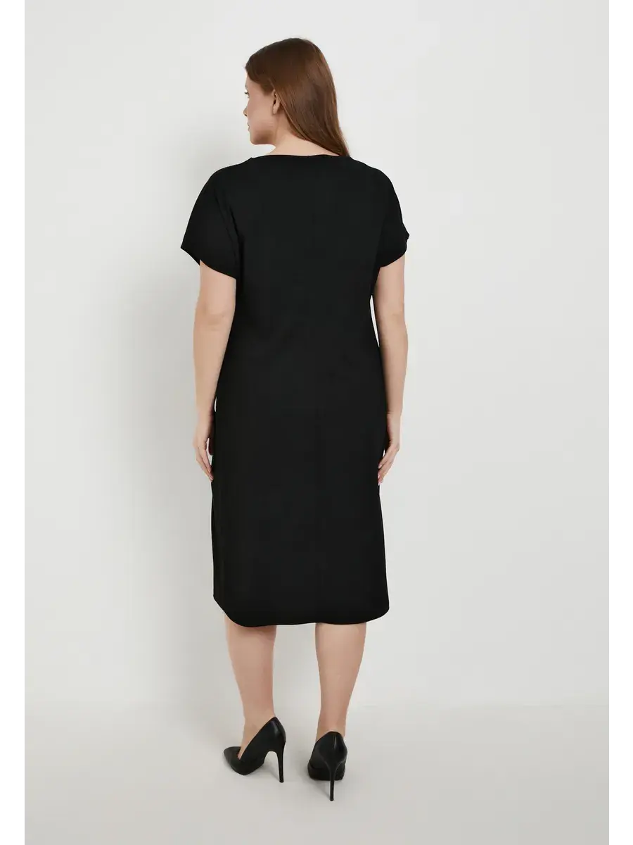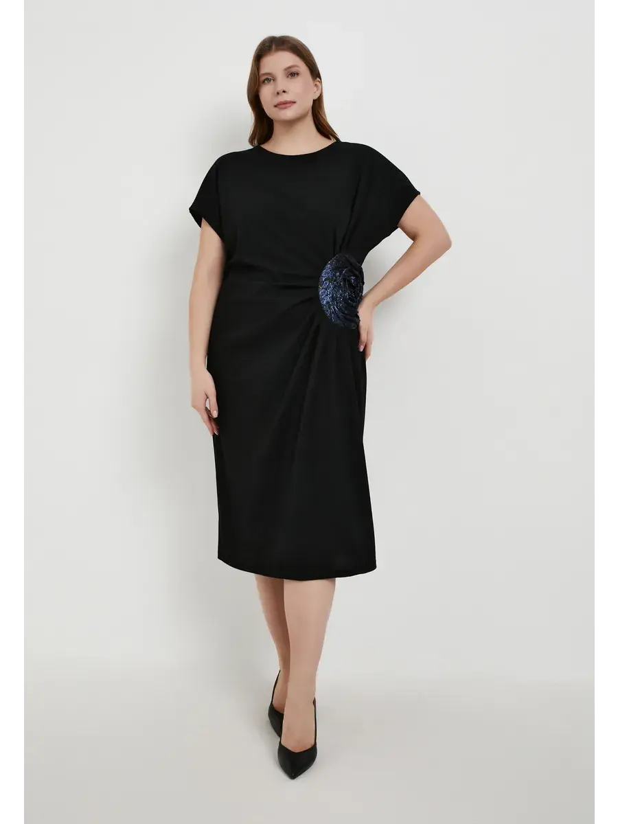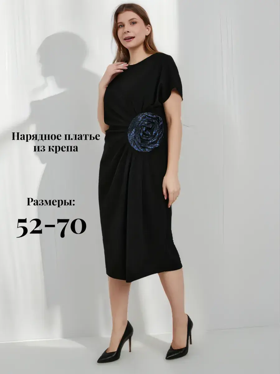 Платье-футляр OLSI - это идеальный выбор для тех, кто ищет нарядное платье для особых случаев. Эта модель выполнена из гладкой полиэстеровой ткани, которая красиво струится и подчеркивает фигуру. Округлый вырез горловины и короткие цельнокроеные рукава придают платью элегантный и женственный вид. Благодаря приталенному покрою и длине миди, платье создает утонченный силуэт, а аппликация добавляет праздничный блеск. Модель доступна в двух цветах: глубокий синий космос и классический черный. Платье OLSI станет прекрасным выбором для вечерних мероприятий, торжественных встреч и праздничных событий. Его универсальный дизайн и доступность в больших размерах делают его идеальным вариантом для женщин, которые ценят комфорт и стиль.