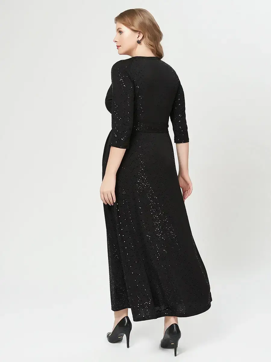 Нарядное вечернее платье длиной макси, из тонкого трикотажа масло с принтом-глиттер, имитирующим пайетки. Вырез- V-образное фигурное каре, провокационный лиф с запахом, рукава реглан 3 /4, боковые врезные карманы. Модель приталенного силуэта, расклешенная книзу, с поясом, завязывающимся на талии. Модель придает образу чувственность и элегантность. Идеально подойдет для торжественных мероприятий и праздников. Платье нарядное в пол. Платье на Новый Год, платье на свадьбу, юбилей, Вечерние платье на день рождение. Платье женское Платье с пайетками Платье с пайетками Платье вечернее блестящее женское Платье с пайетками женское Платье на новый год женское вечернее. Платье с пайетками больших размеров. Платье блестящее вечернее больших размеров. Платье вечернее макси больших размеров.