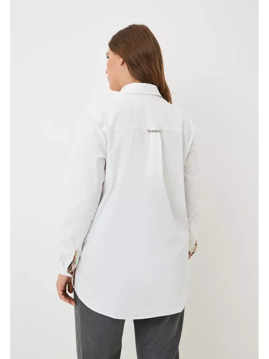 Стильная блузка-рубашка из хлопка качественного плотного хлопка, с длинными рукавами на манжете, воротником-спрэдом и застежкой на планке. Свободный крой и спинка на кокетке со складкой бабочкой позволяют легко и свободно двигаться, скрывают несовершенства линий. Модель придает образу раскованность и оригинальность.
