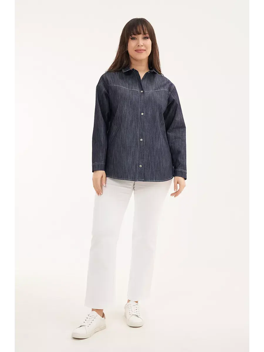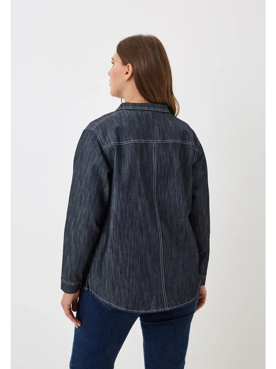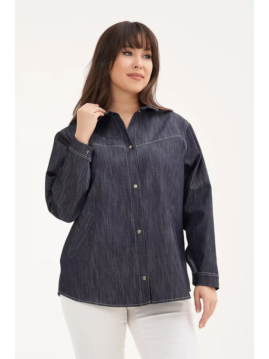 Женская джинсовая блузка рубашка больших размеров от бренда OLSI прямого кроя с длинным рукавом, застёгивается на кнопки, отложной воротник. Выполнена из плотной джинсы с эластаном. Джинсовую ветровку можно носить поверх другой одежды или как отдельный предмет гардероба.