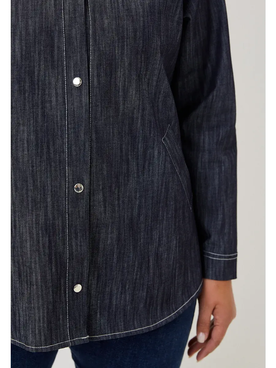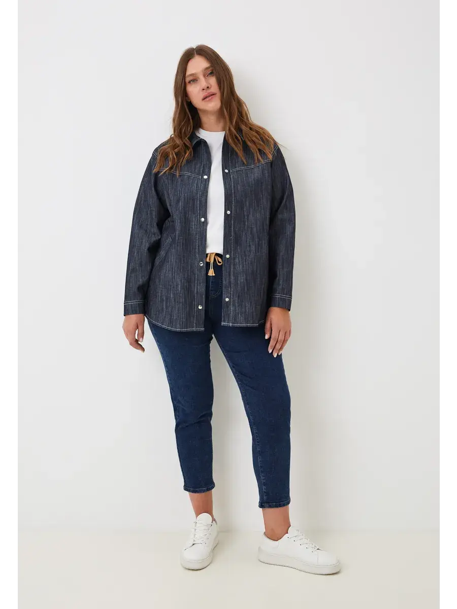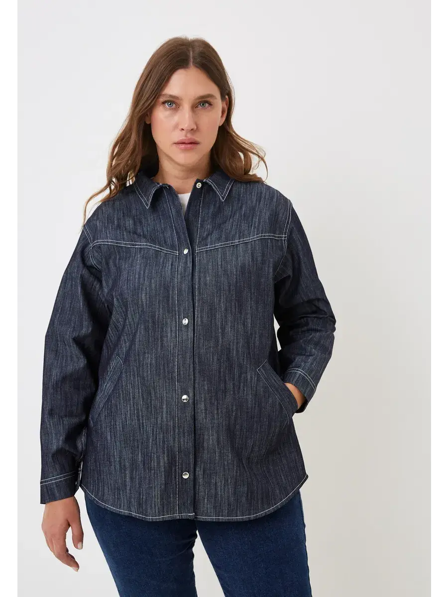 Женская джинсовая блузка рубашка больших размеров от бренда OLSI прямого кроя с длинным рукавом, застёгивается на кнопки, отложной воротник. Выполнена из плотной джинсы с эластаном. Джинсовую ветровку можно носить поверх другой одежды или как отдельный предмет гардероба.