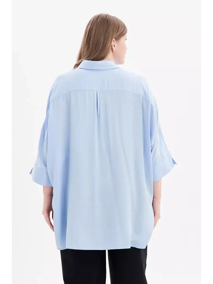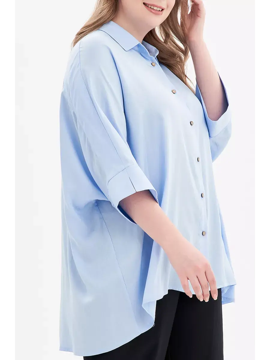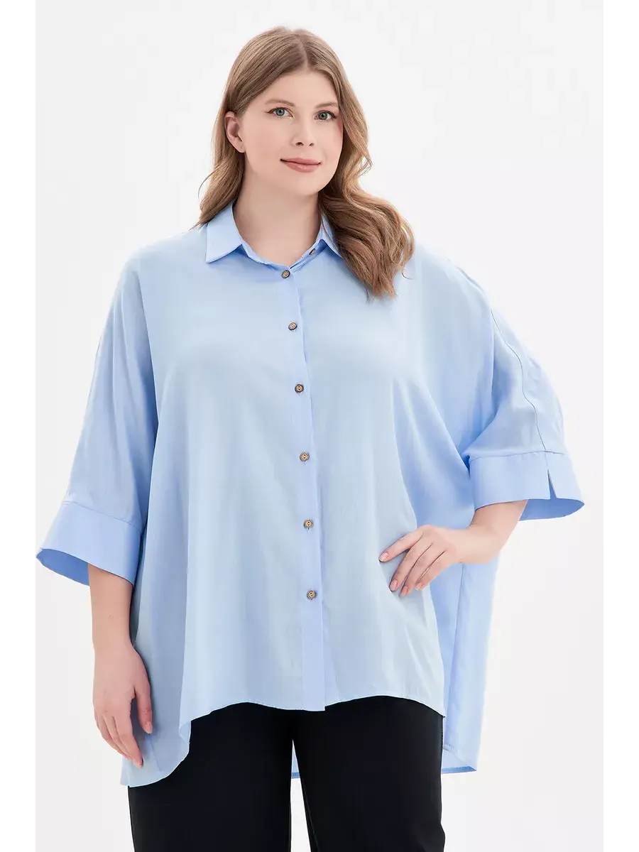 Стильная блузка-рубашка из текстильного полотна приятного на ощупь, с рукавами 3/4 на манжете с разрезом, воротником и застежкой на планке. Свободный крой и спинка на кокетке со складкой бабочкой позволяют легко и свободно двигаться, скрывают несовершенства линий. Модель придает образу раскованность и оригинальность. Длина по спинке/ширина по груди/ширина низ соответственно:р.48-52 80см/78,0см/78,0смр.54-58 81,5см/84,4см/84,4смр.60-64 83см/90,7см/90,7смр.66-70 84,5см/97,0см/97,0см