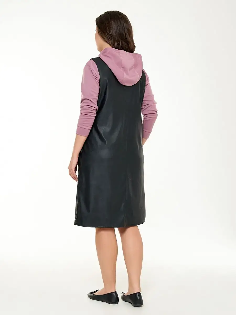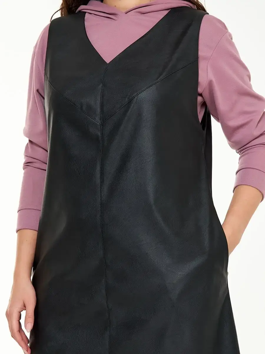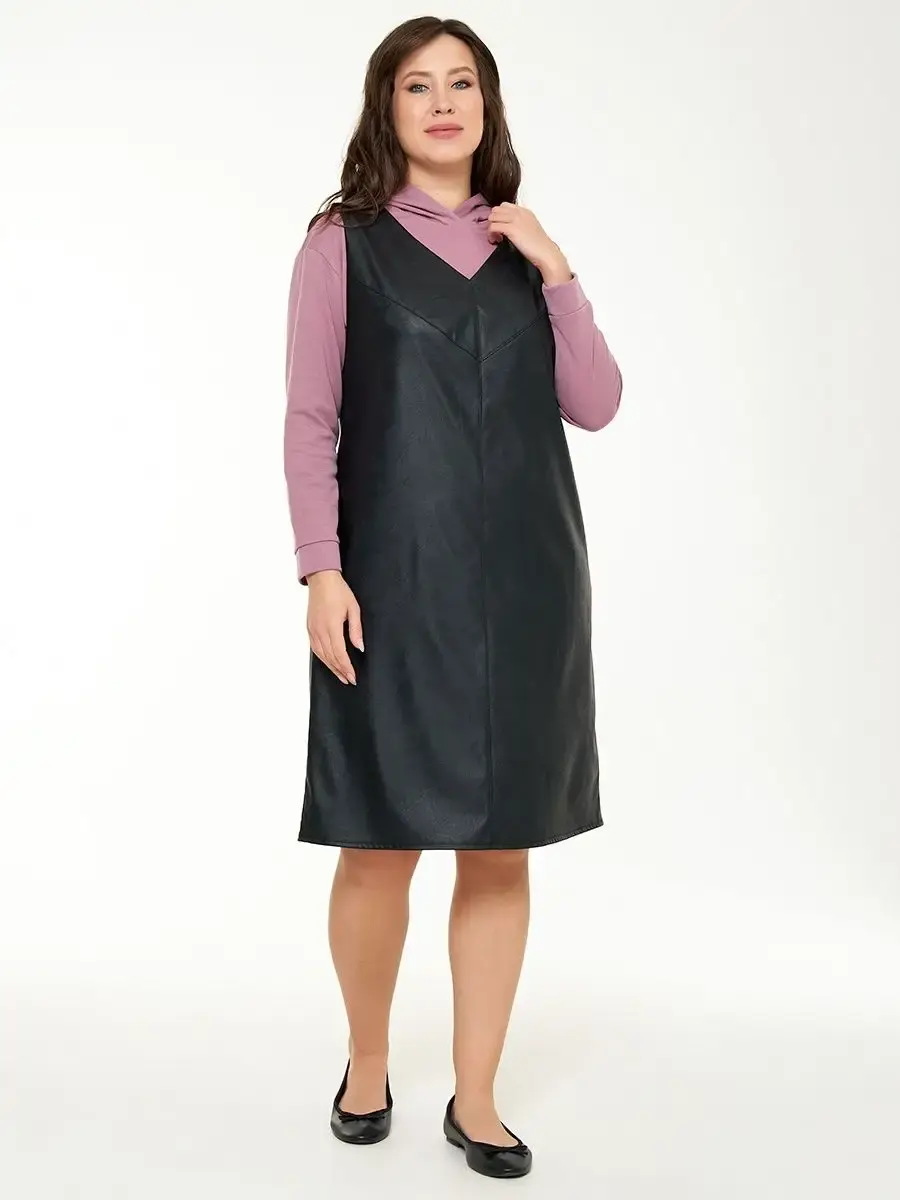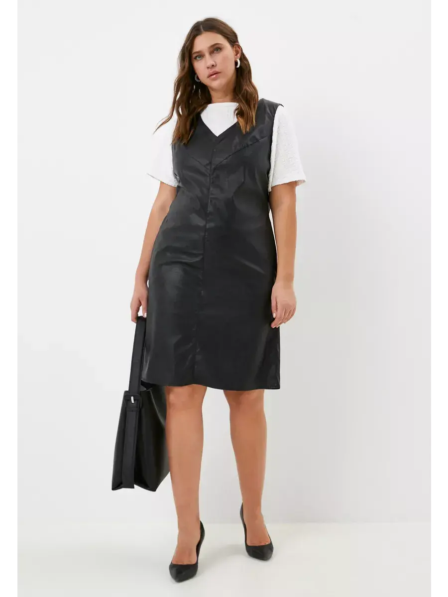 Стильный повседневный сарафан больших размеров выполнен из мягкой приятной на ощупь экокожи, с карманами в шве. Спереди V-образная горловина, сзади горловина-лодочка. Длина изделия по спинке:р.52-102,5см;р.54-103см;р.56-103,5см;р.58-104см;р.60-104,5см;р.62-105см;р.64-105,5см;р.66-106см;р.68-106,5см;р.70-107см.