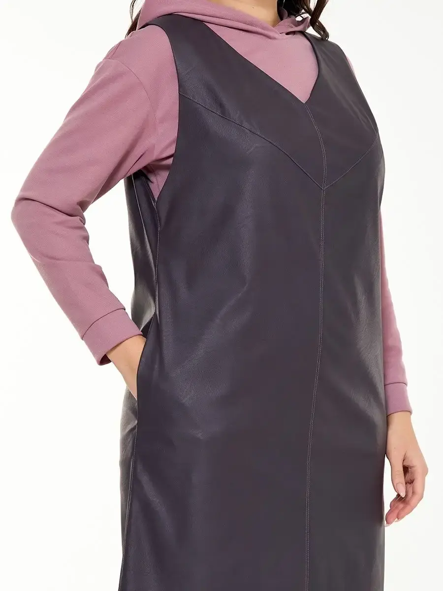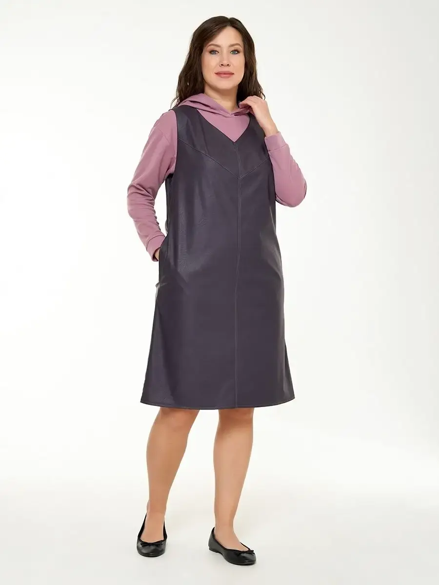 Стильный повседневный сарафан больших размеров выполнен из мягкой приятной на ощупь экокожи, с карманами в шве. Спереди V-образная горловина, сзади горловина-лодочка. Длина изделия по спинке:р.52-102,5см;р.54-103см;р.56-103,5см;р.58-104см;р.60-104,5см;р.62-105см;р.64-105,5см;р.66-106см;р.68-106,5см;р.70-107см.