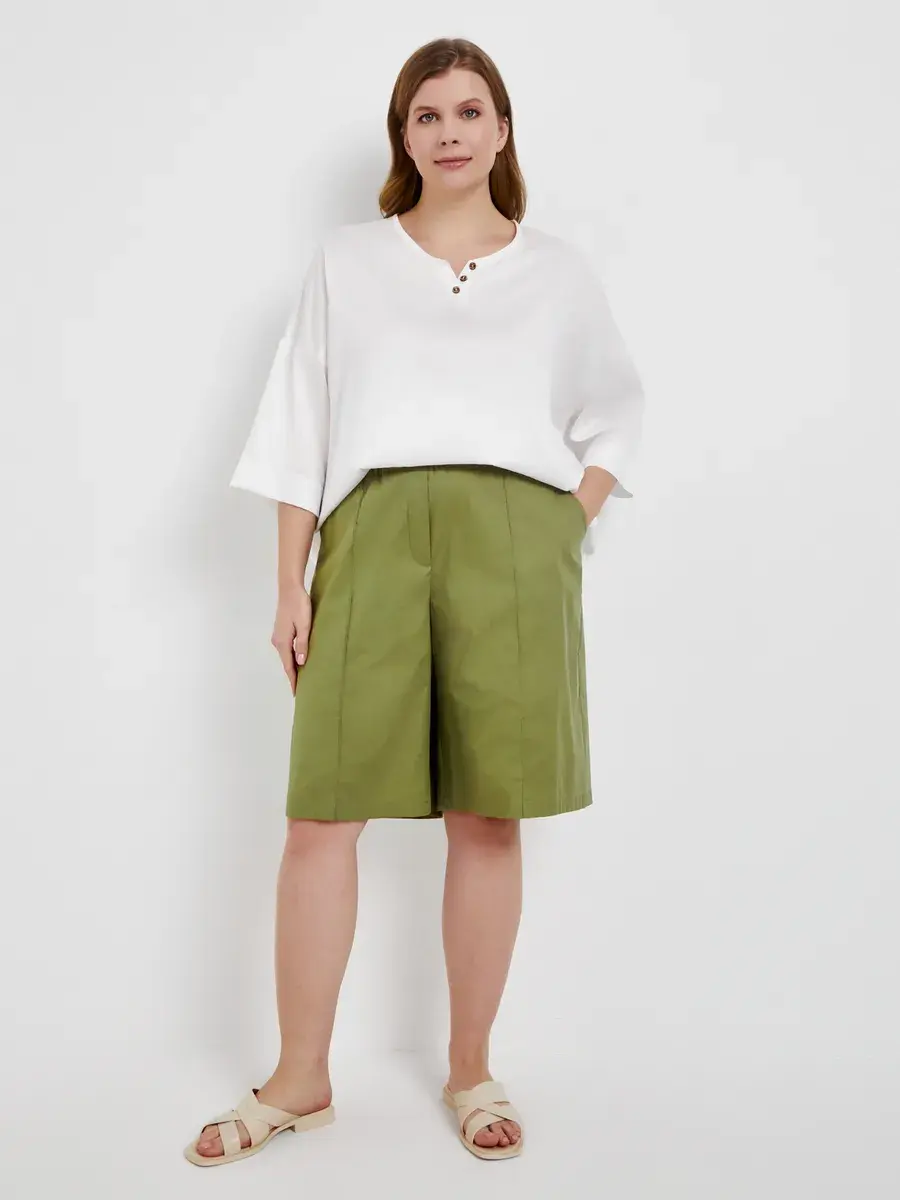 Классический дизайн шорт больших размеров делает их подходящими как для повседневной жизни, так и для офиса или работы. Подойдут для беременных и полных женщин. Они также станут отличным вариантом для создания модного образа на отдыхе, море. Эти бермуды больших размеров подчеркнут достоинства вашей фигуры и обеспечат максимальное удобство в движении.