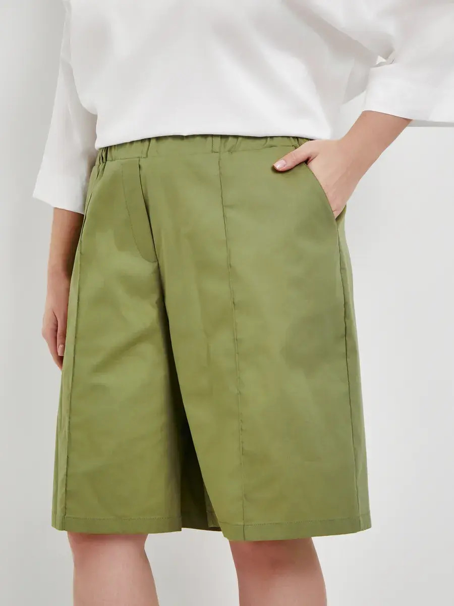Шорты-бермуды от OLSI— незаменимая вещь в летнем гардеробе. Они легкие и удобные, что делает их идеальными для повседневной носки. Хлопковая ткань обеспечивает воздухопроницаемость, позволяя чувствовать свежесть на протяжении всего дня. Шорты растягиваются и возвращаются в свою форму.