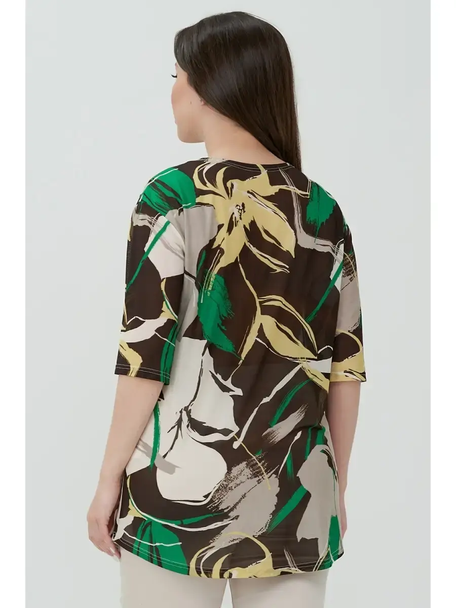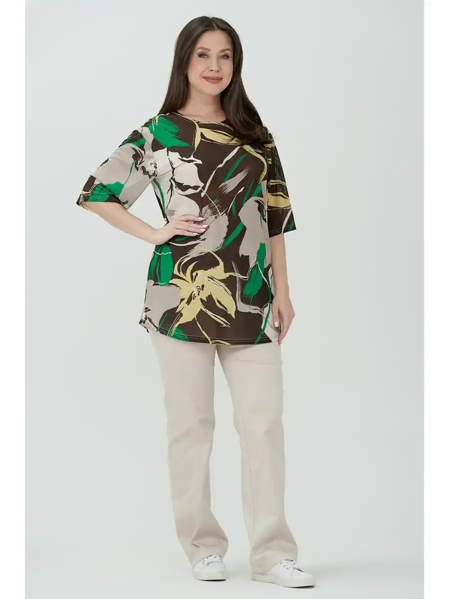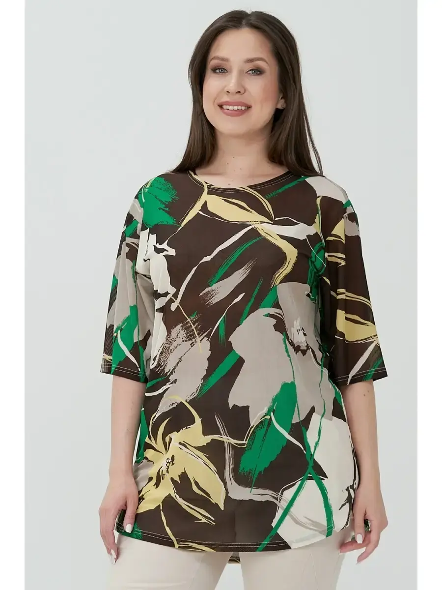 Удлиненная женская футболка свободного кроя выполнена из полотна по типу "сетка" с эластаном. Базовая вещь современного гардероба, легко гармонирует с джинсами, брючками, шортами, лосинами. Длина изделия по спинке в р.52,54,56,58 -78см.