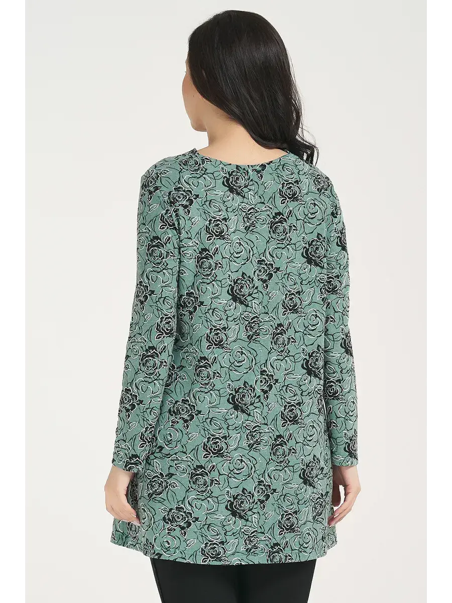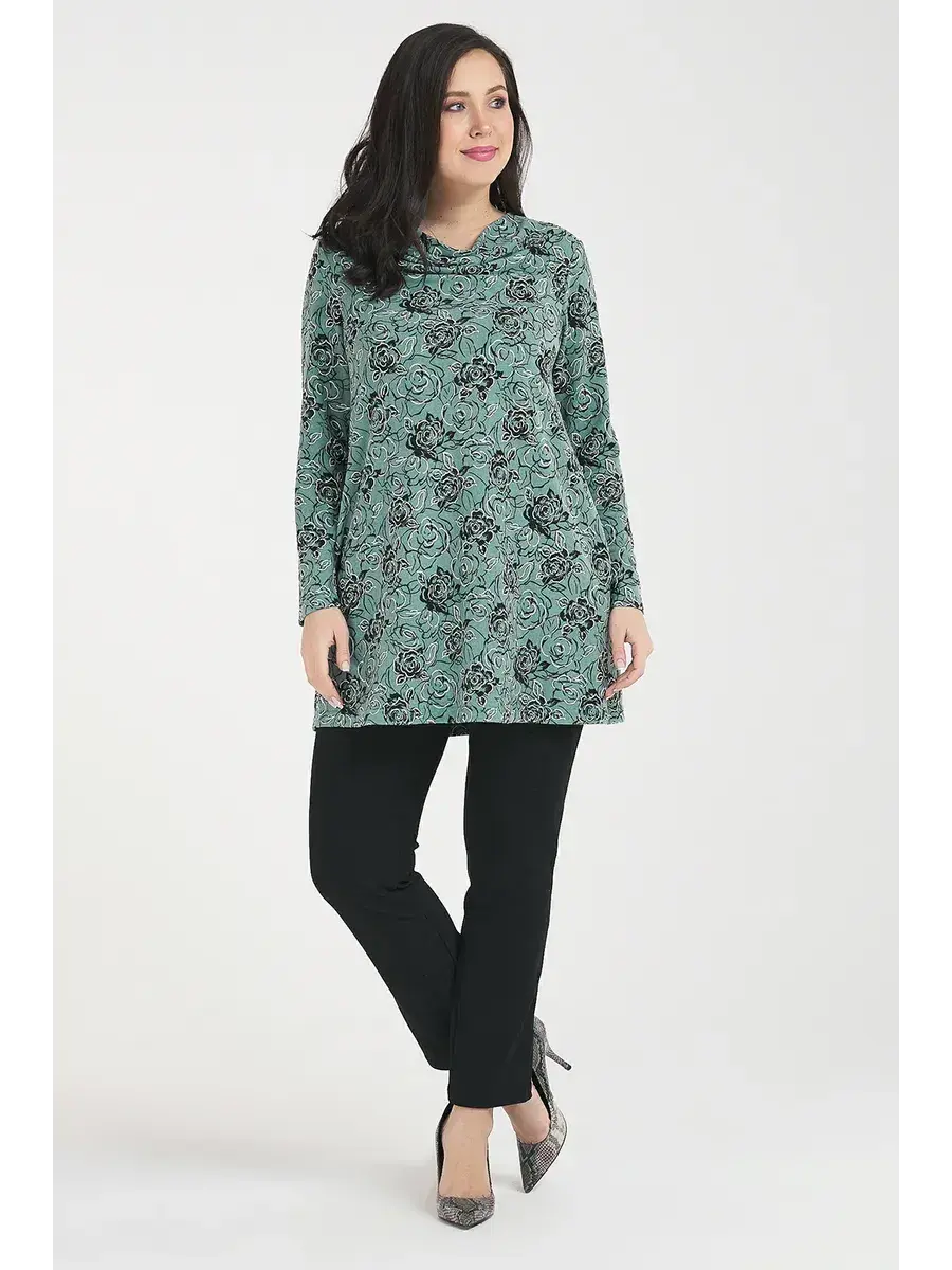 Женская нарядная блузка, прямого силуэта, выполненная из мелко узорчатой ткани в полоску. Перед цельным с вытачкой из бокового шва и с разрезом на горловине, обработанный планкой. Низ изделия фигурный с боковыми разрезами.