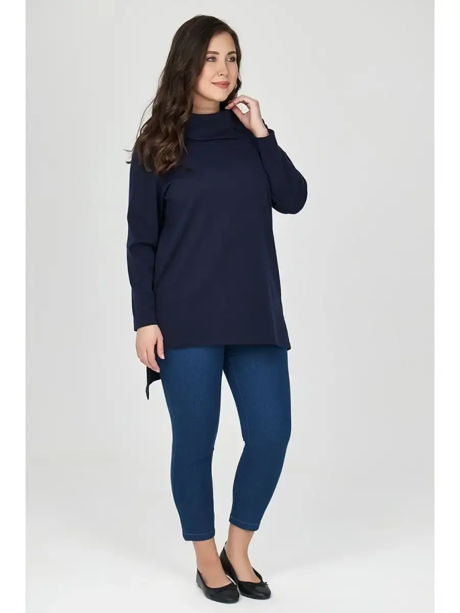 Стильная туника с удлиненной спинкой, высокой горловиной, выполненной в виде воротника с боковой застежкой - незаменимый базовый предмет женского гардероба. Длинный прямой рукав. Креативный крой зрительно вытягивает фигуру, визуально удлиняет ноги спереди и прячет нежелательные объемы сзади. Длина по спинке:р.50-93смр.52-93,5смр.54-94смр.56-94,5смр.58-95смр.60-95,5смр.62-96смр.64-96,5смДлина рукава 60см.