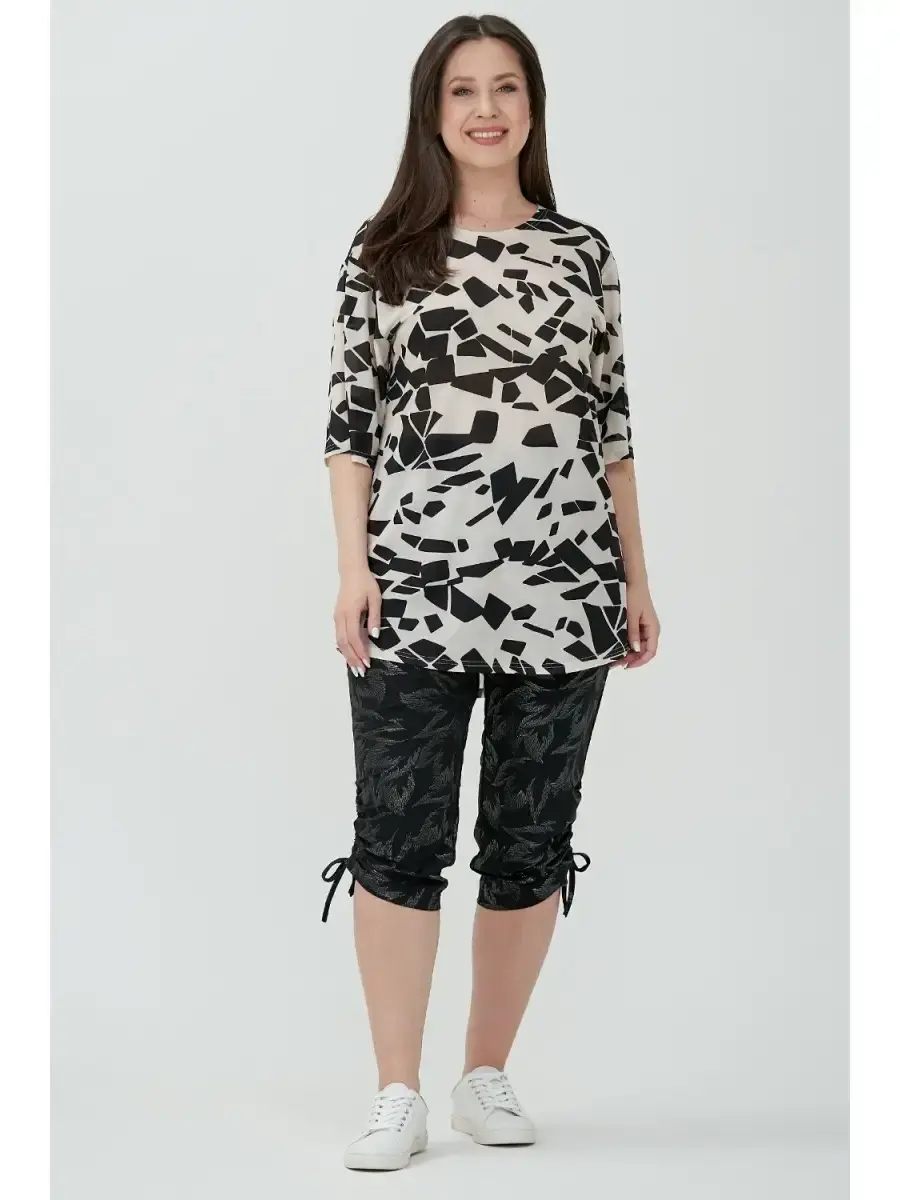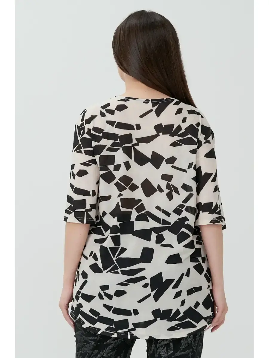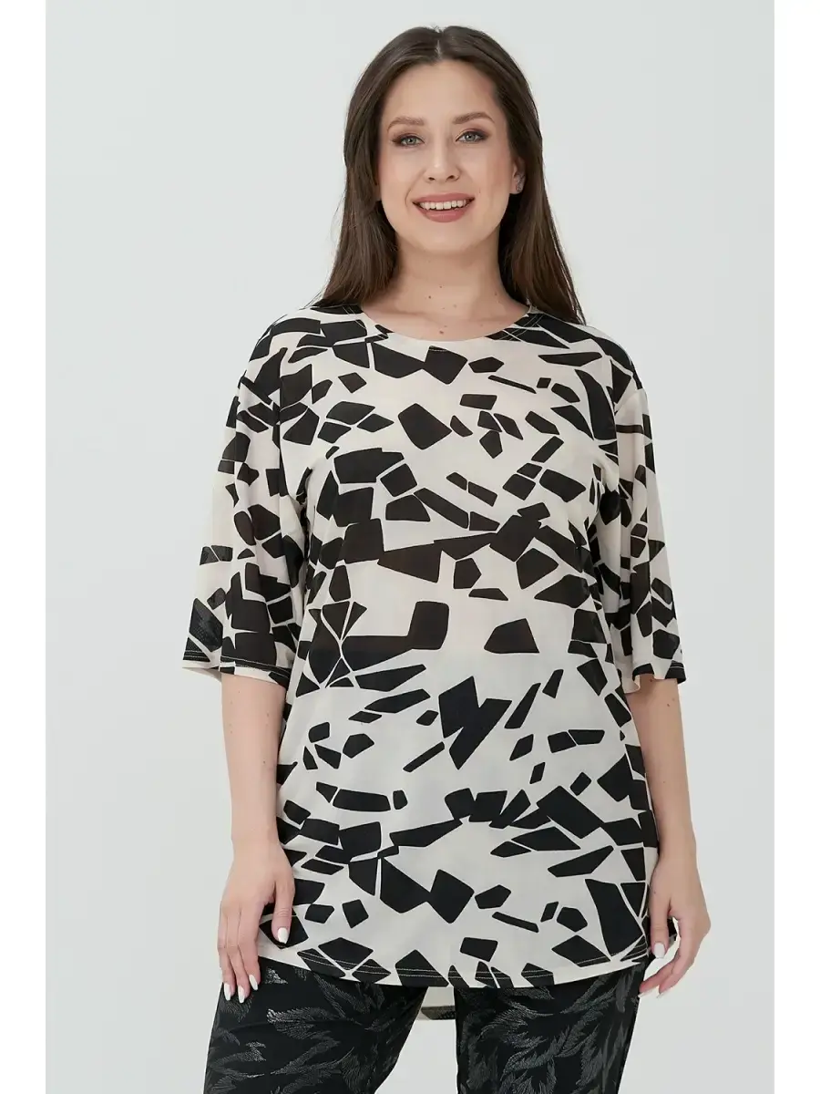 Удлиненная женская футболка свободного кроя выполнена из полотна по типу "сетка" с эластаном. Базовая вещь современного гардероба, легко гармонирует с джинсами, брючками, шортами, лосинами. Длина изделия по спинке в р.52,54,56,58 -78см.