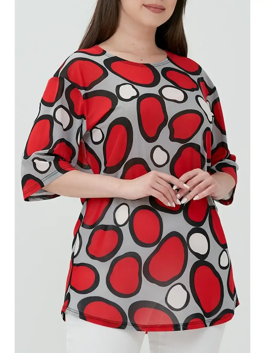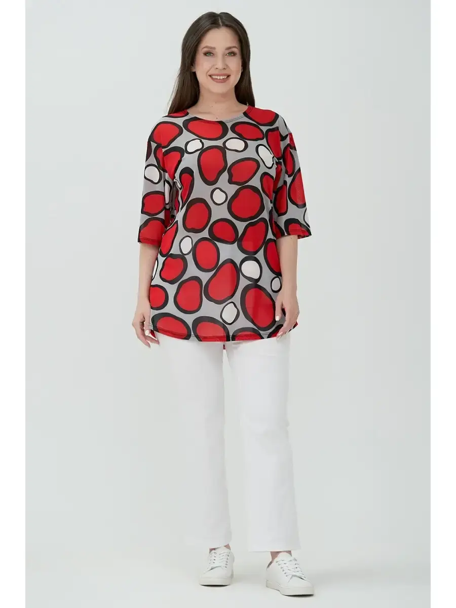 Удлиненная женская футболка свободного кроя выполнена из полотна по типу "сетка" с эластаном. Базовая вещь современного гардероба, легко гармонирует с джинсами, брючками, шортами, лосинами. Длина изделия по спинке в р.52,54,56,58 -78см.