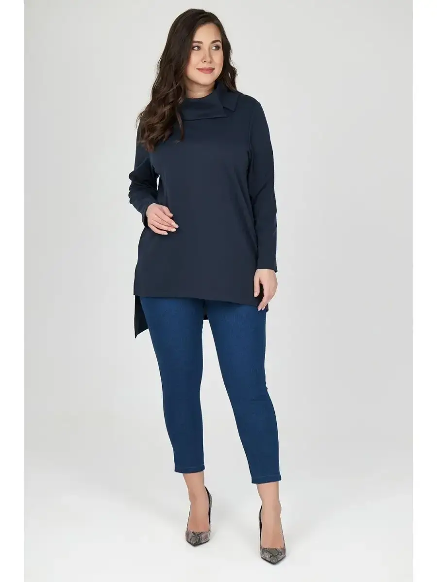 Стильная туника с удлиненной спинкой, высокой горловиной, выполненной в виде воротника с боковой застежкой - незаменимый базовый предмет женского гардероба. Длинный прямой рукав. Креативный крой зрительно вытягивает фигуру, визуально удлиняет ноги спереди и прячет нежелательные объемы сзади. Длина по спинке:р.50-93смр.52-93,5смр.54-94смр.56-94,5смр.58-95смр.60-95,5смр.62-96смр.64-96,5смДлина рукава 60см.